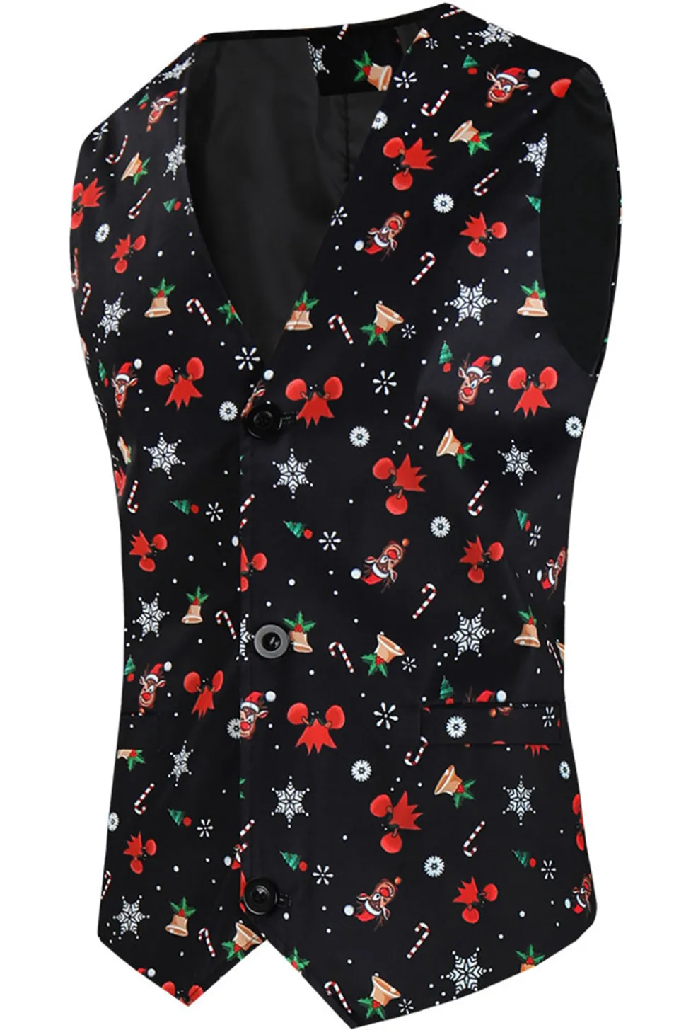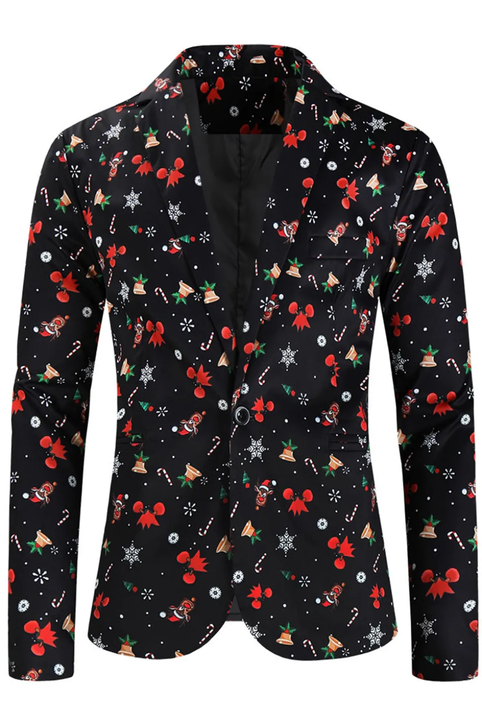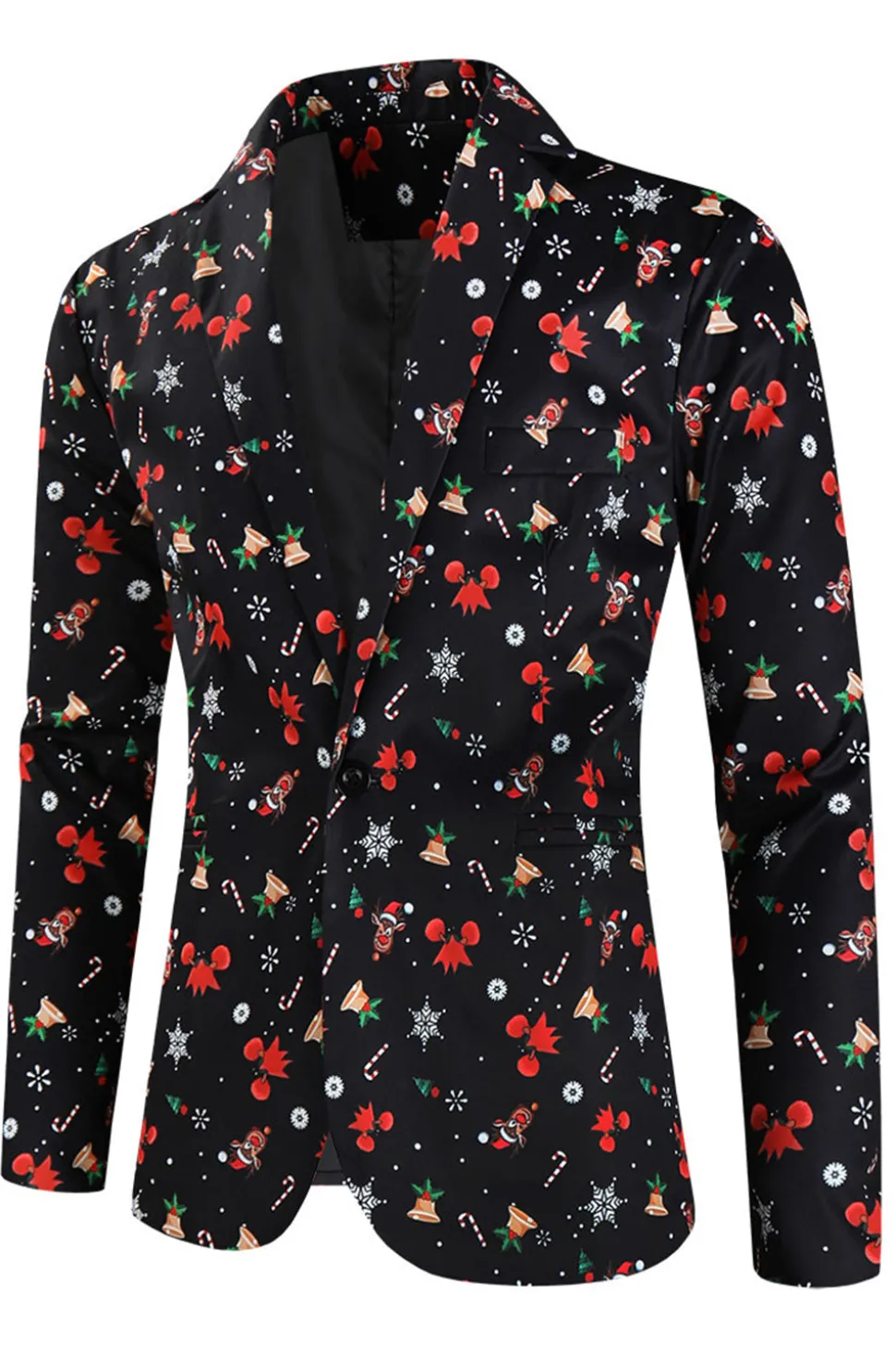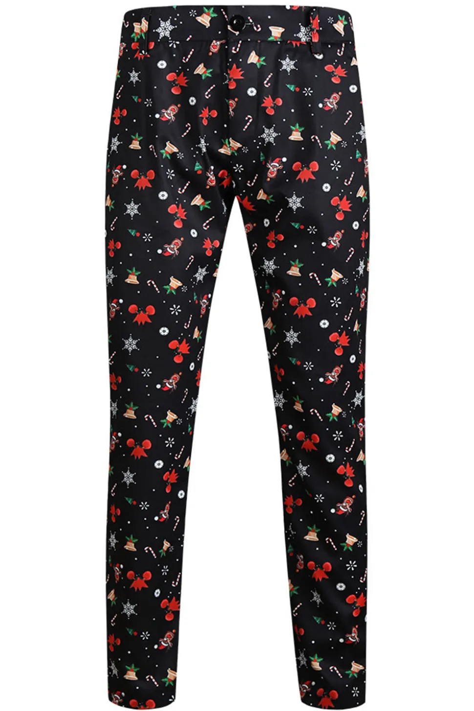3 Pieces Black One Button Bell Cane Print Men’s Christmas Suit