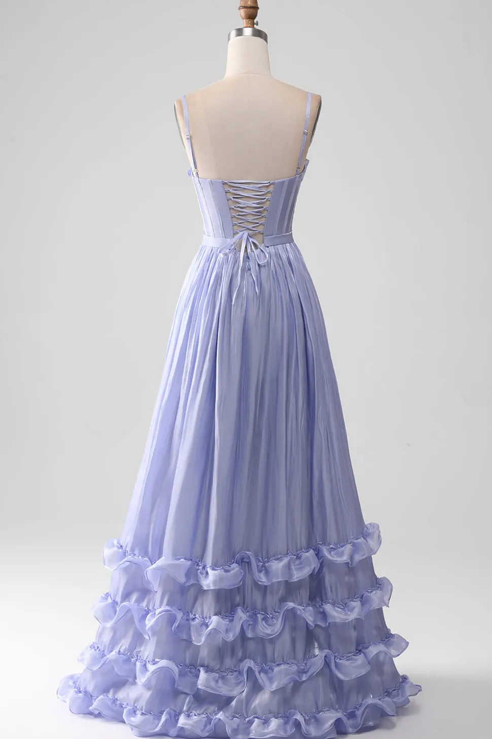 A Line Off the Shoulder Royal Blue Prom Dress with Split Front