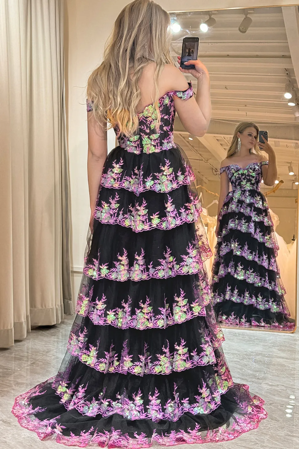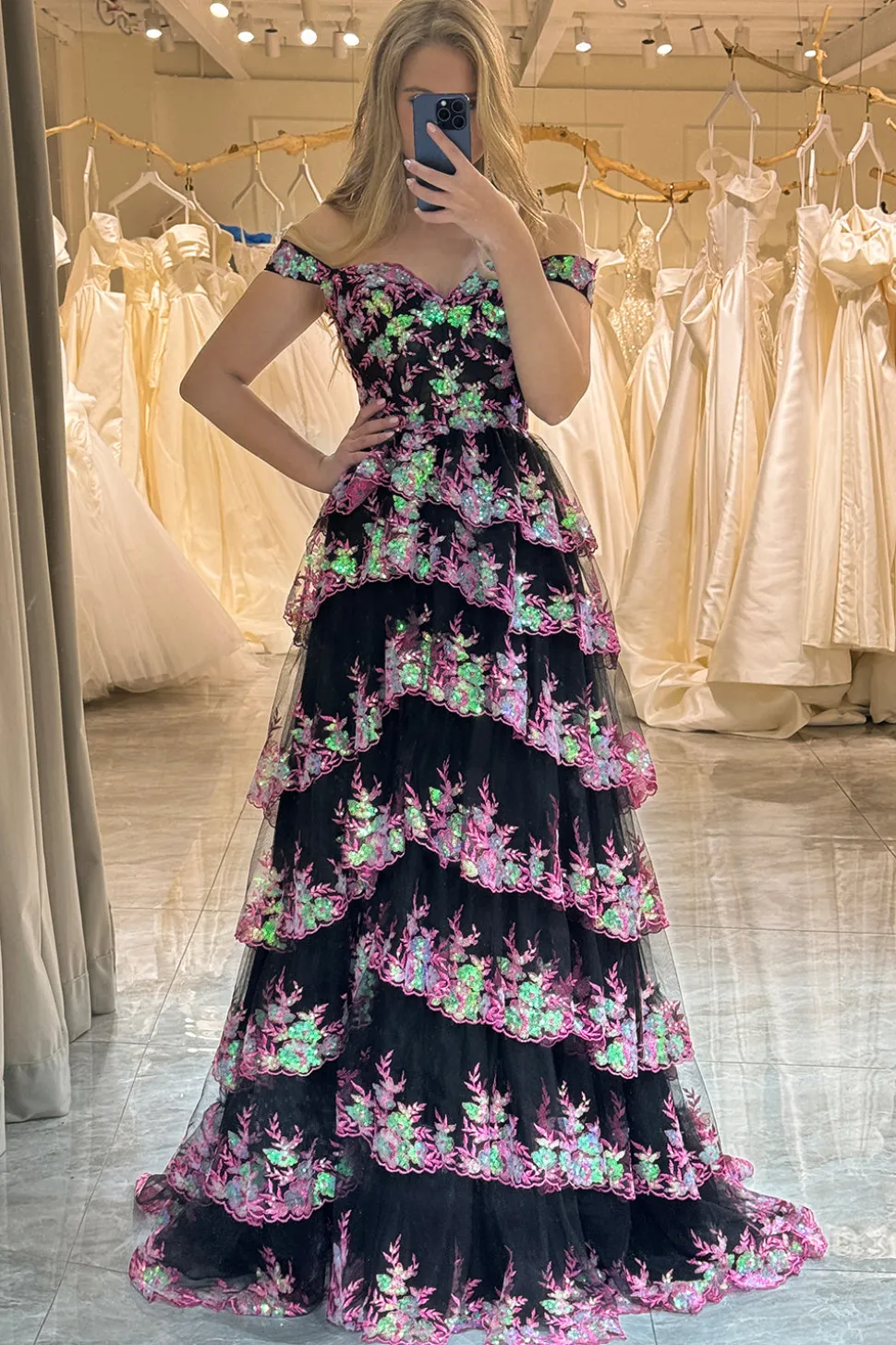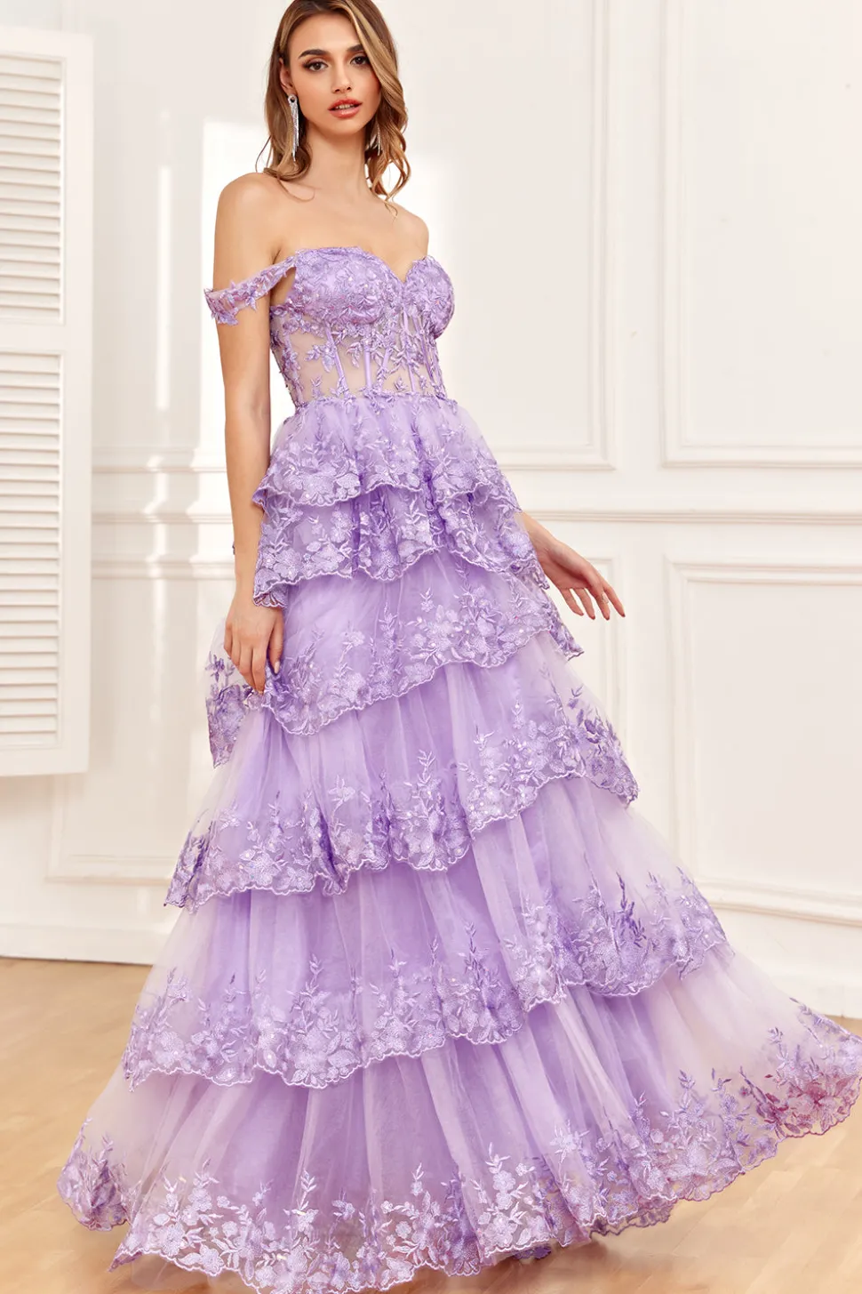 A-line  Off the Shoulder Silver Corset Prom Dress with Split