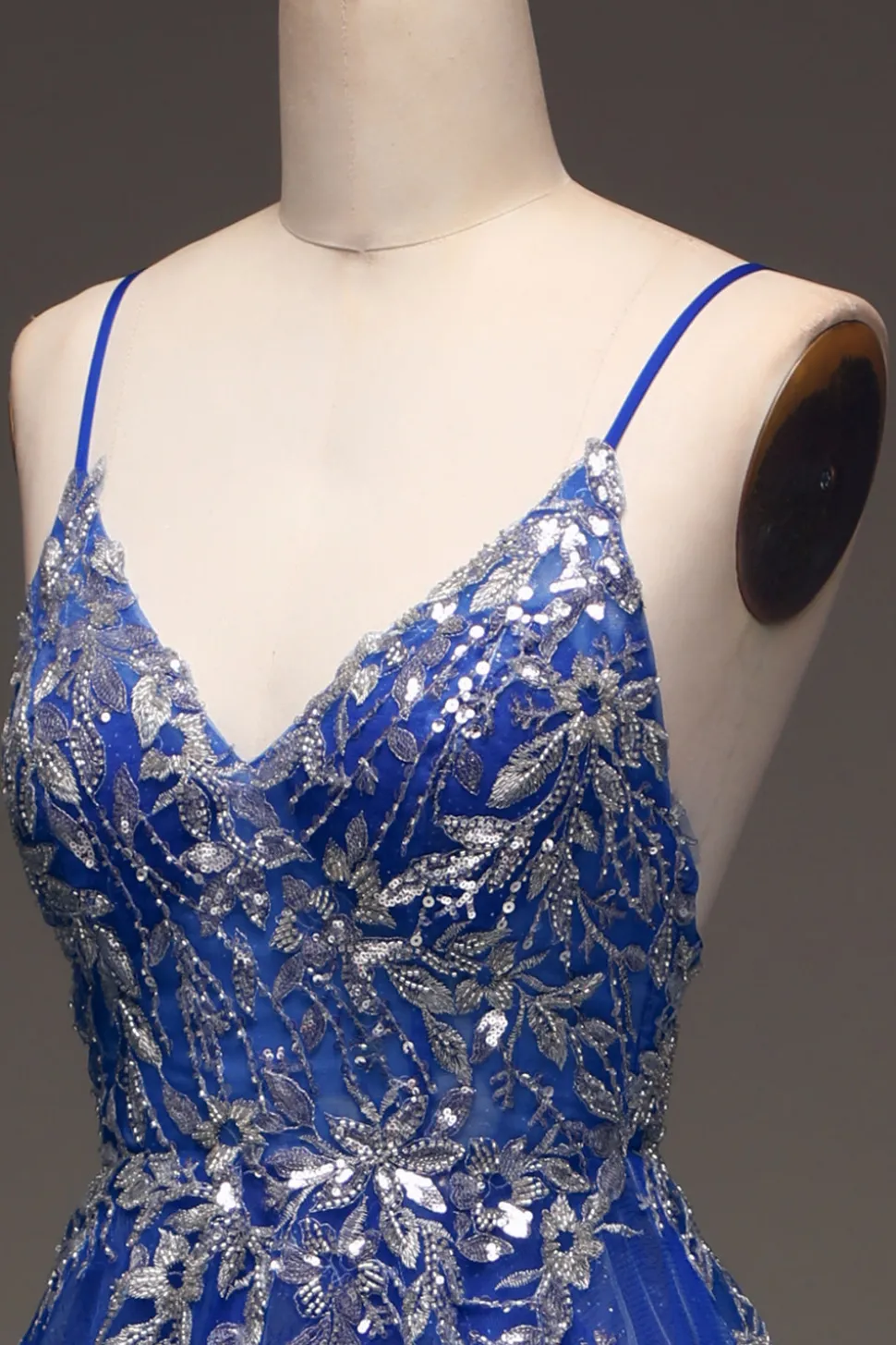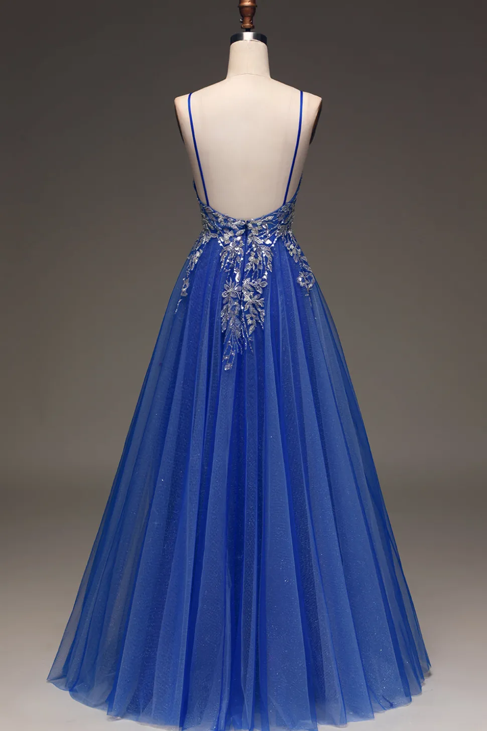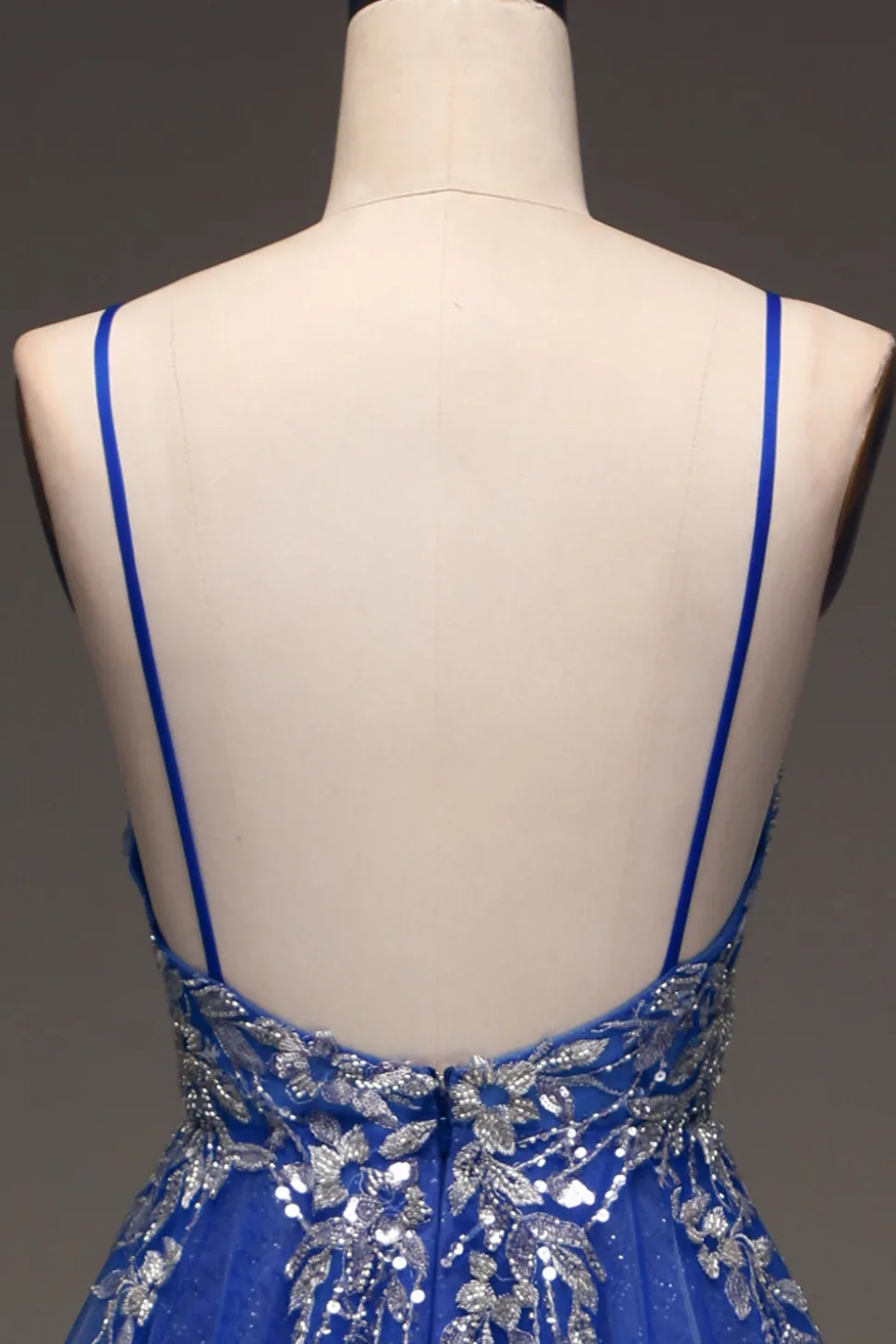 A Line Off the Shoulder Royal Blue Prom Dress with Split Front