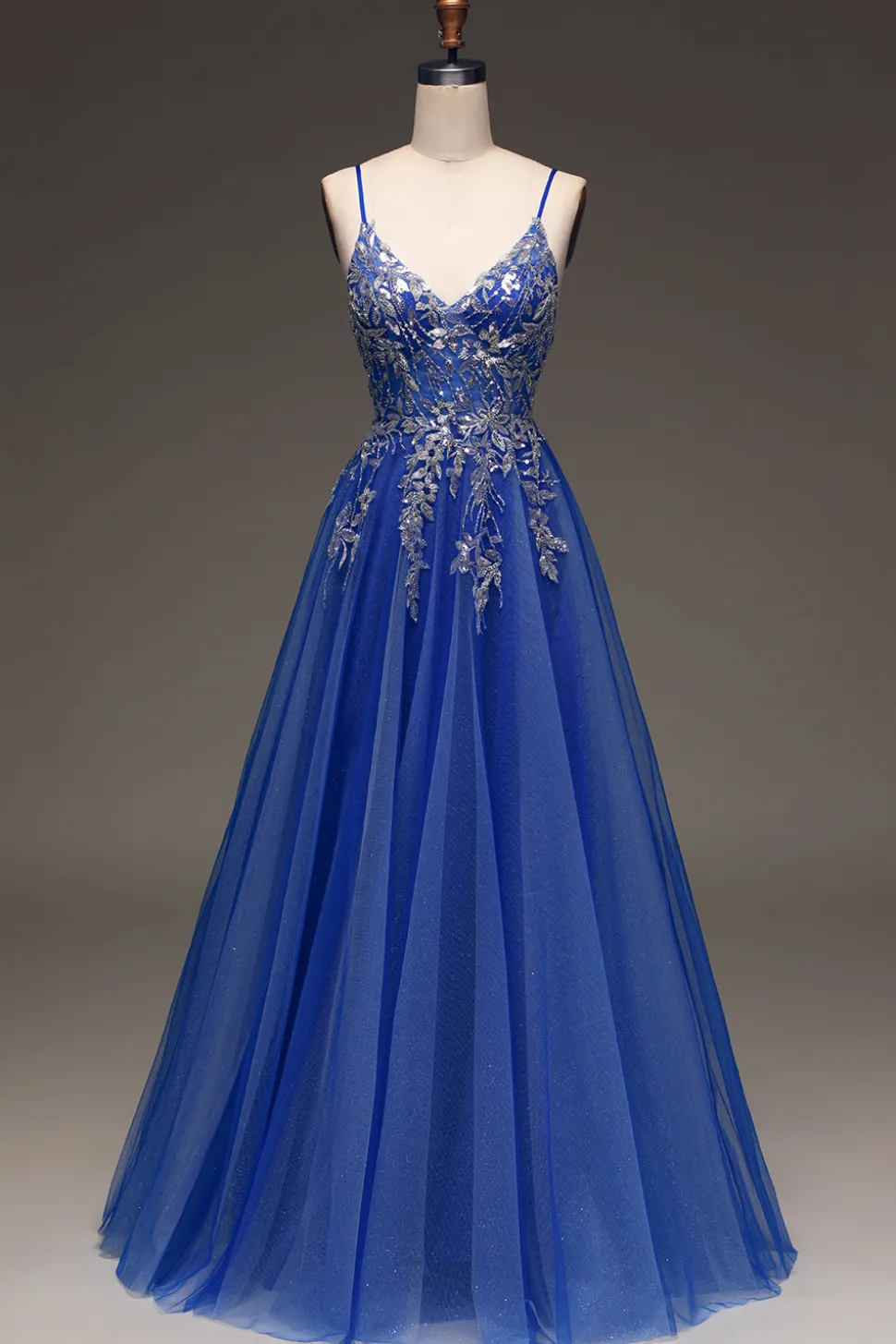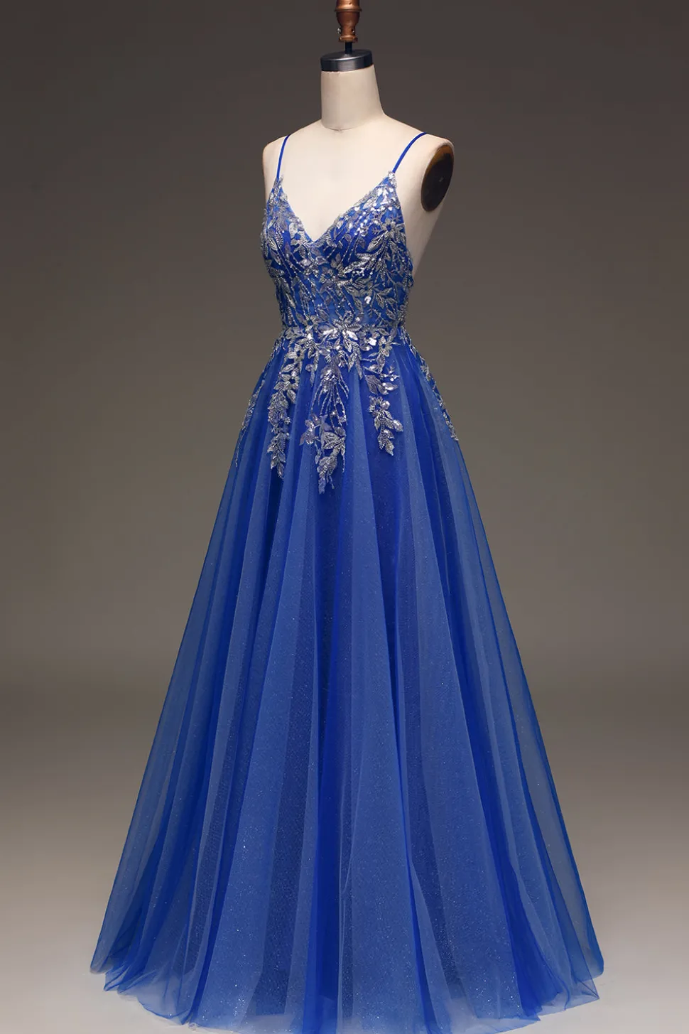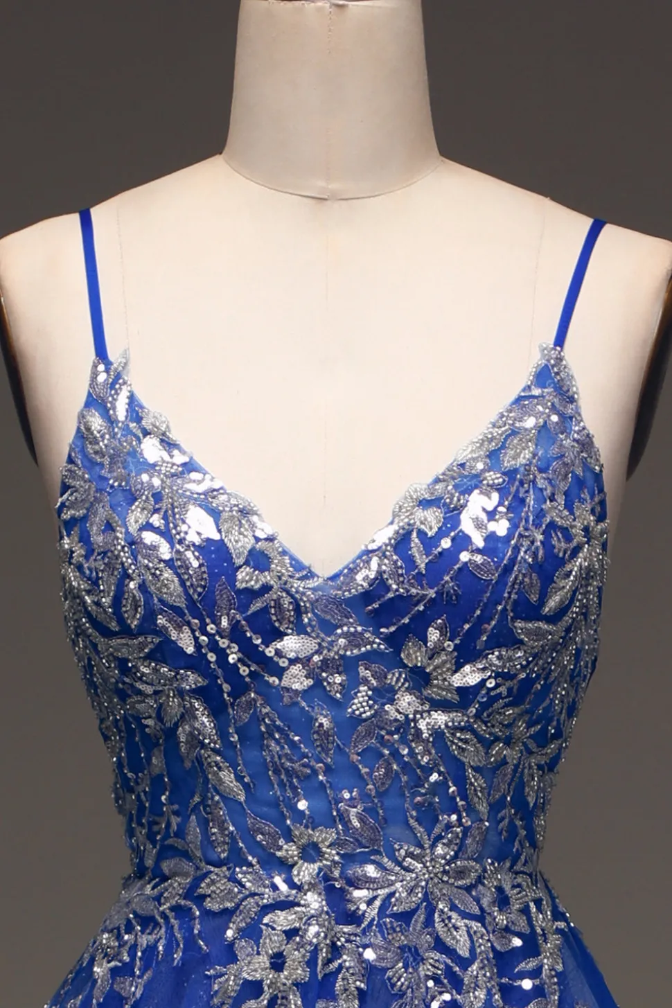 A Line Off the Shoulder Royal Blue Prom Dress with Split Front