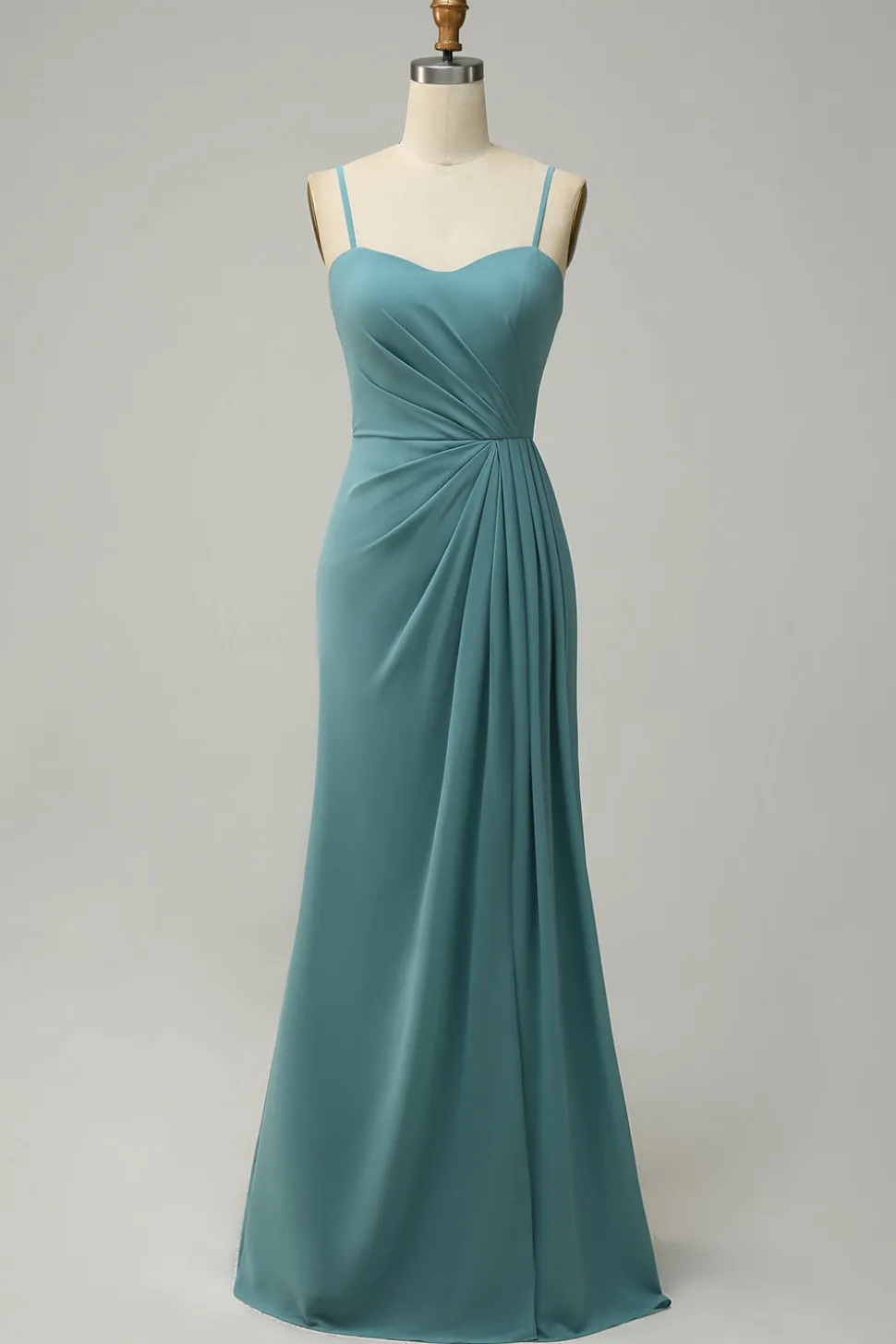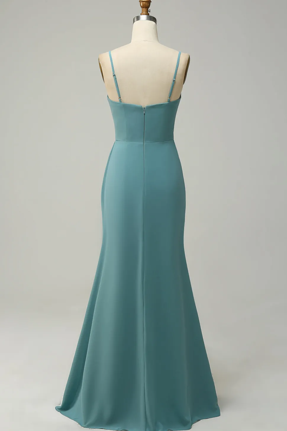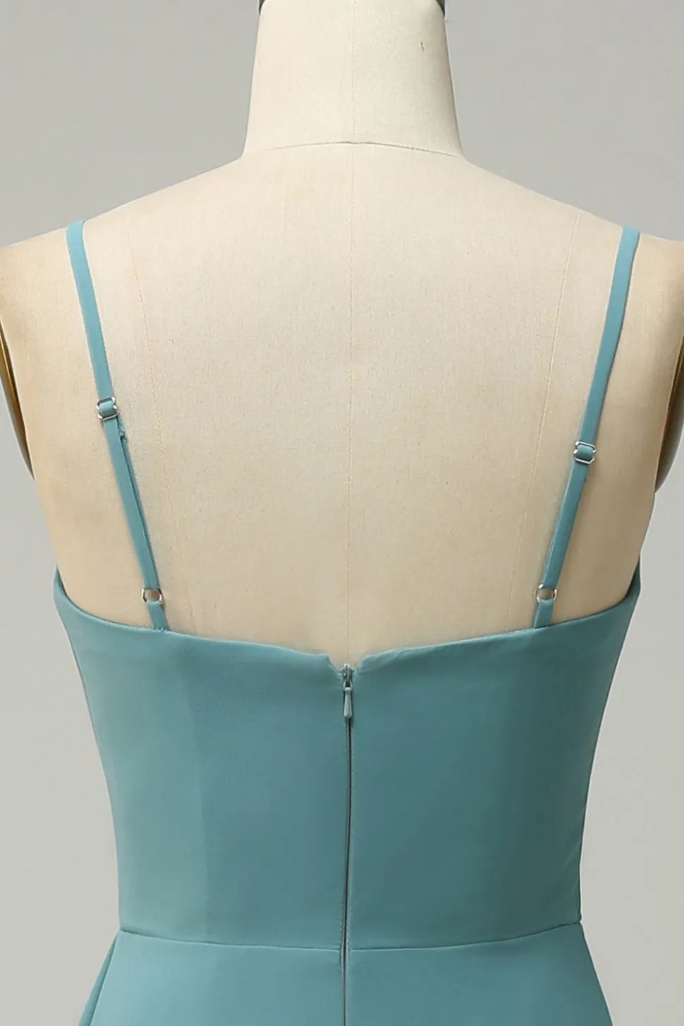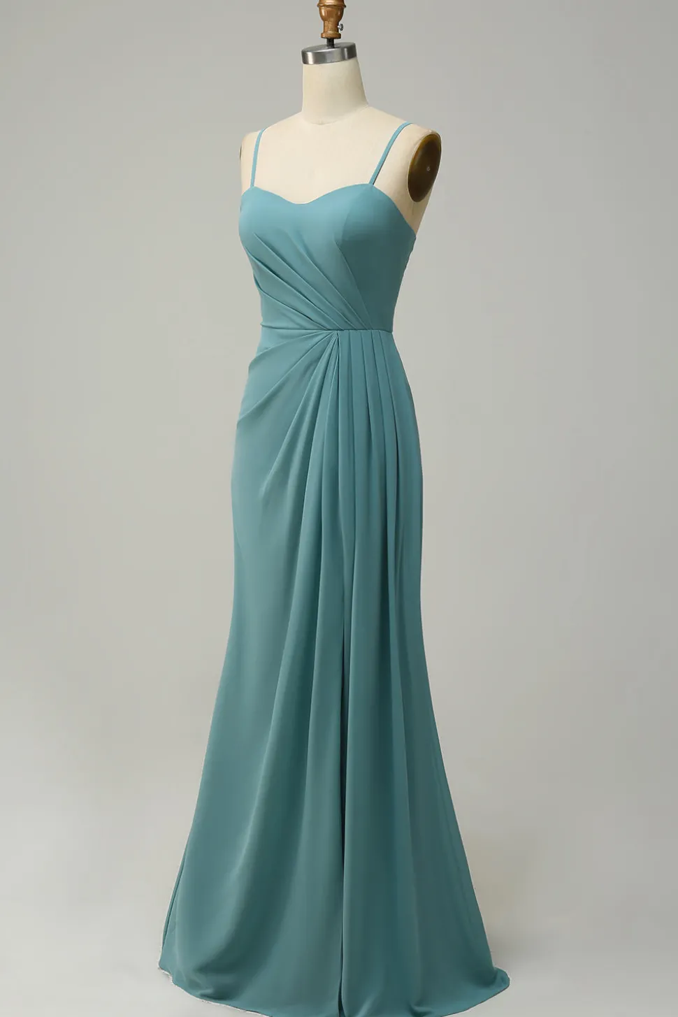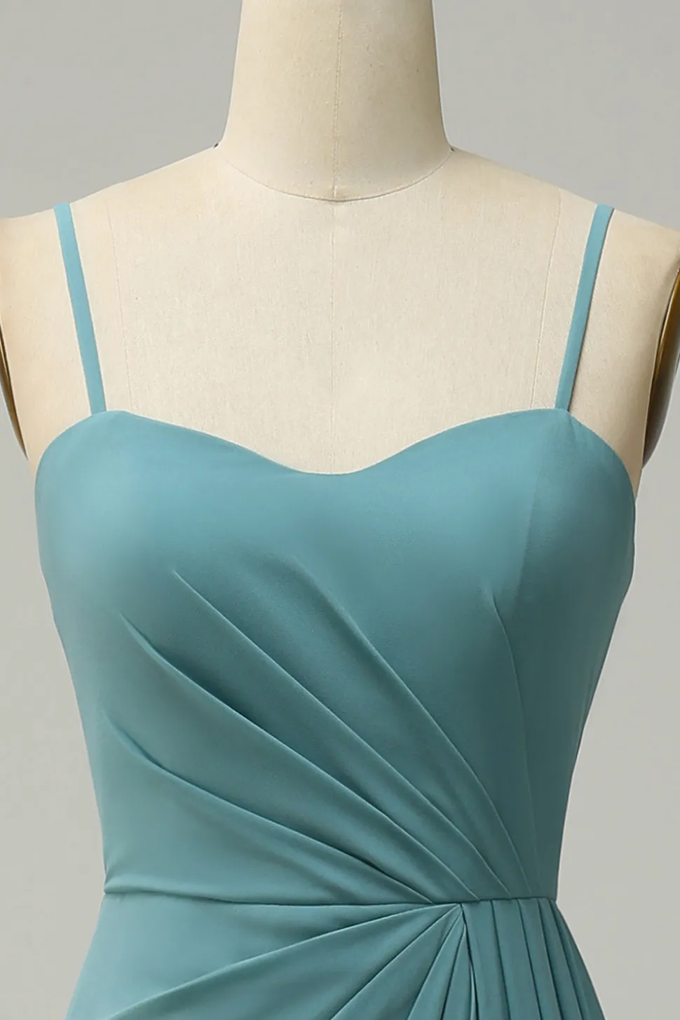 A Line Spaghetti Straps Blush Long Bridesmaid Dress with Split Front