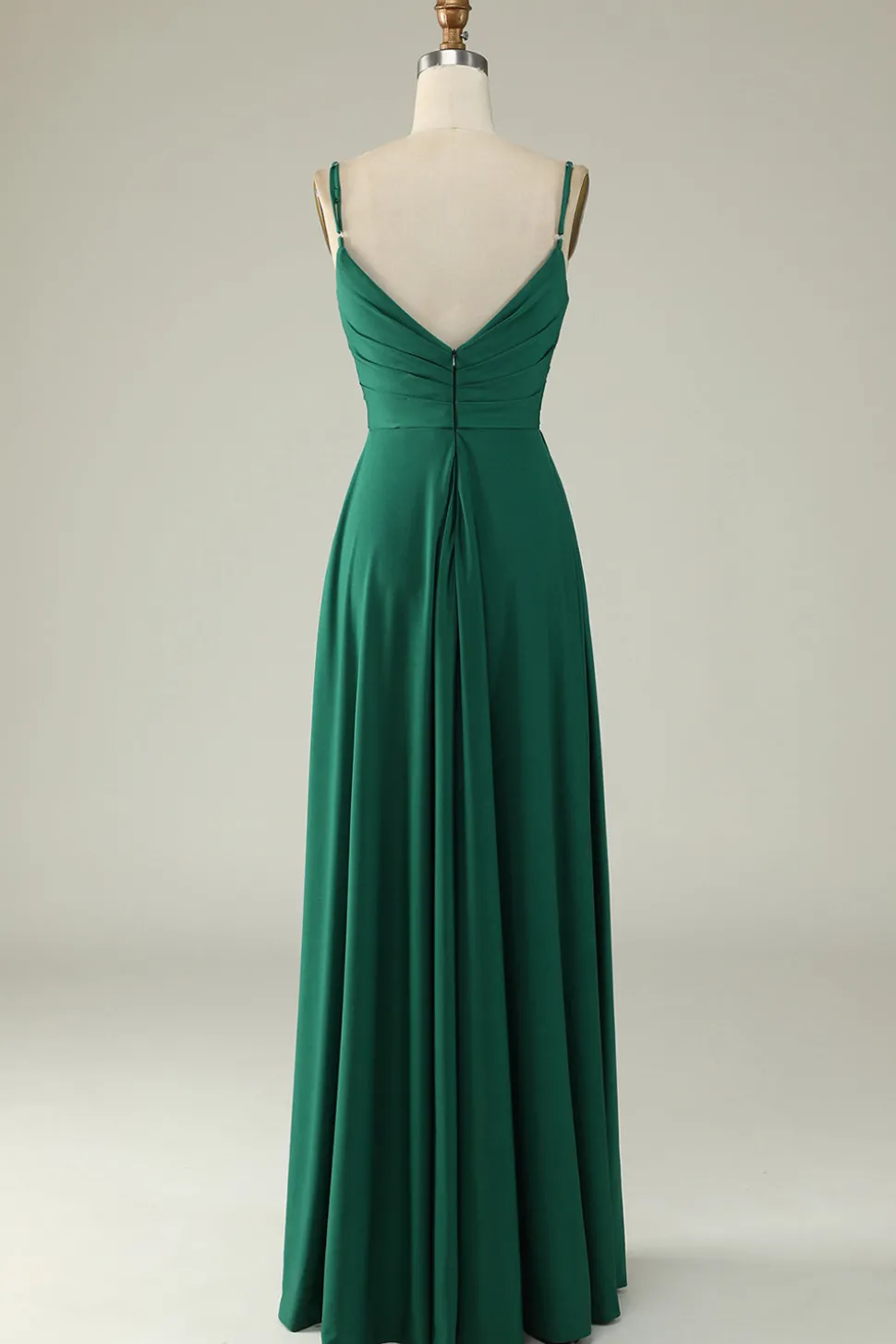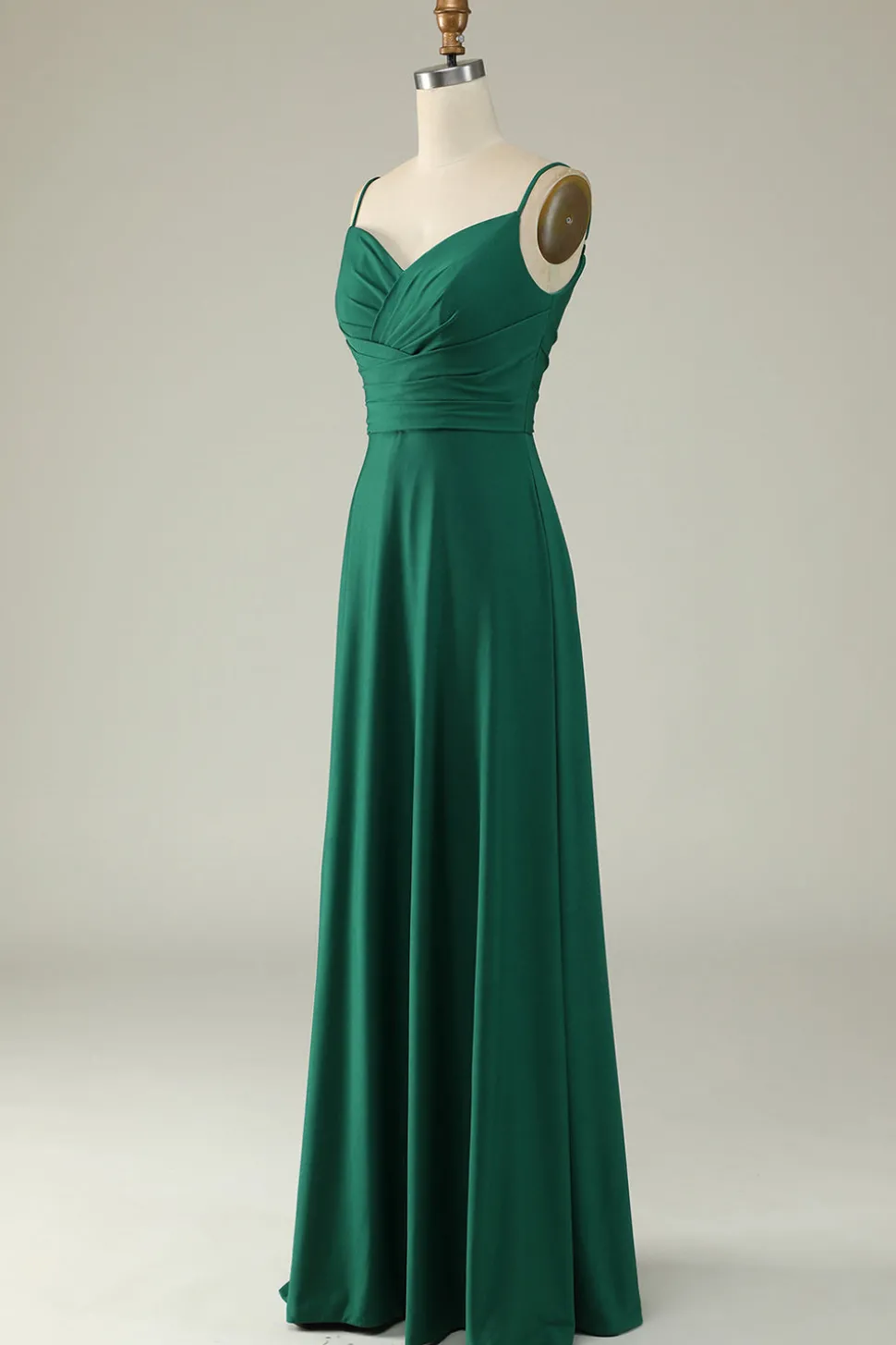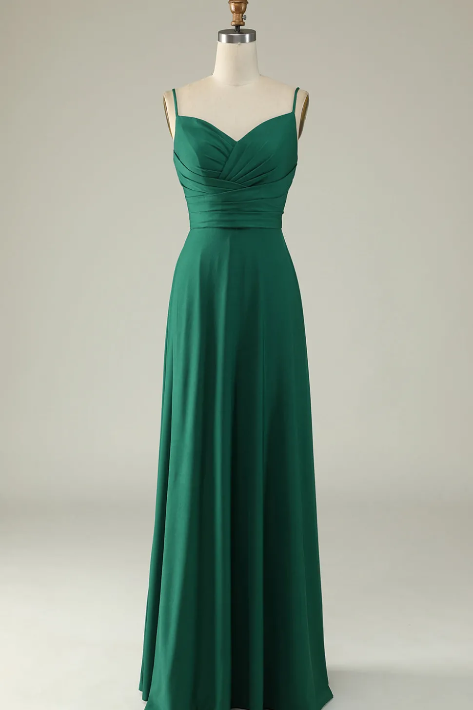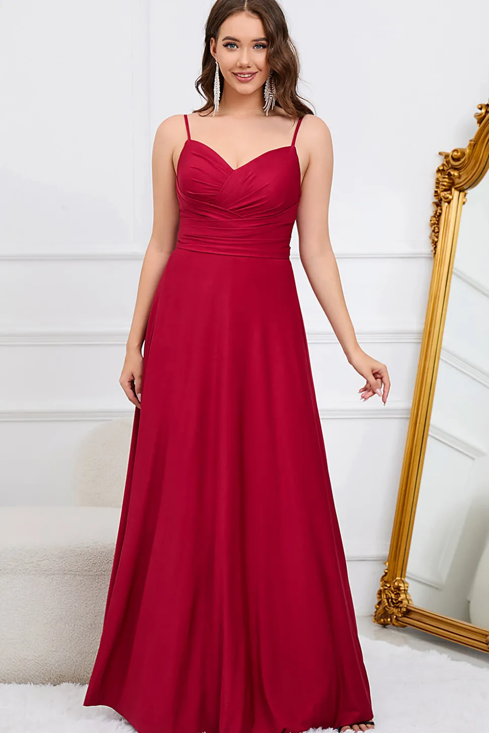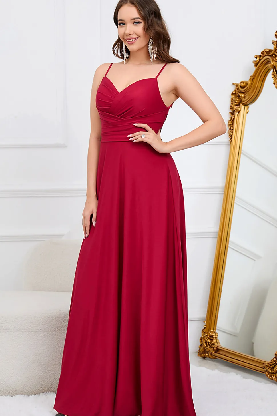 A Line Spaghetti Straps Burgundy Long Bridesmaid Dress