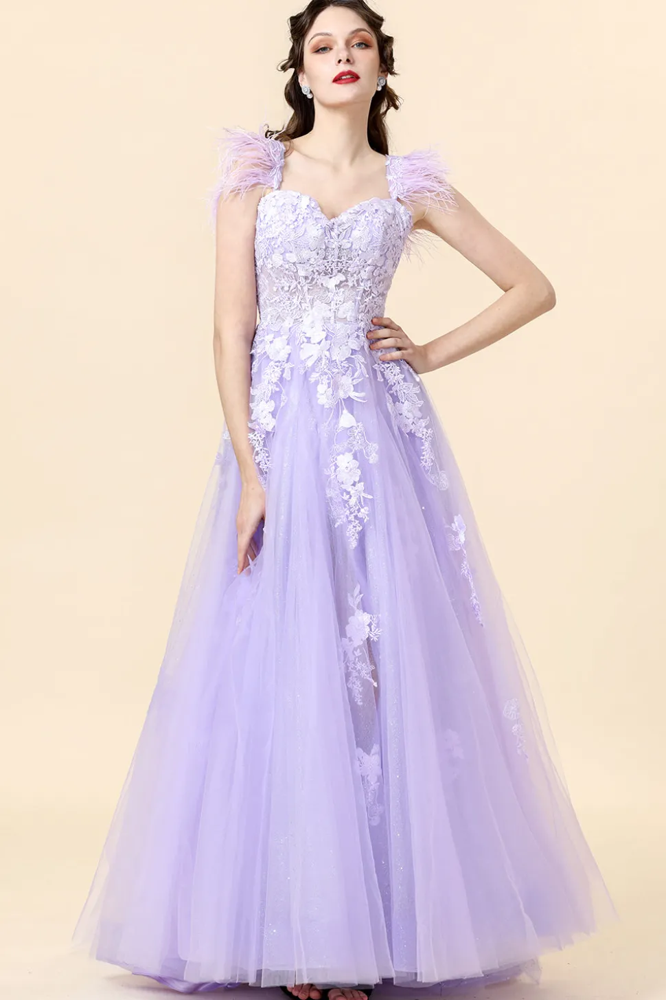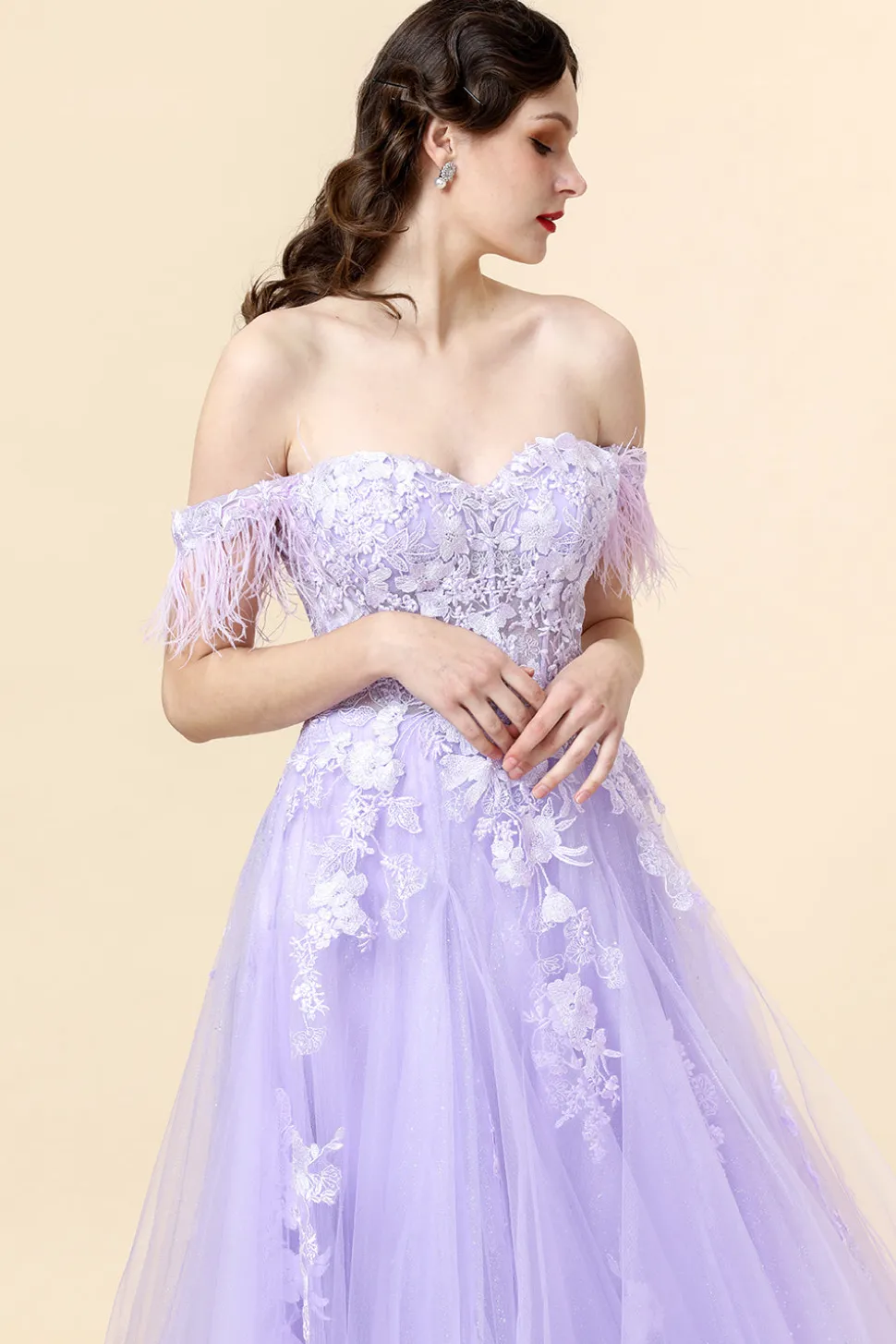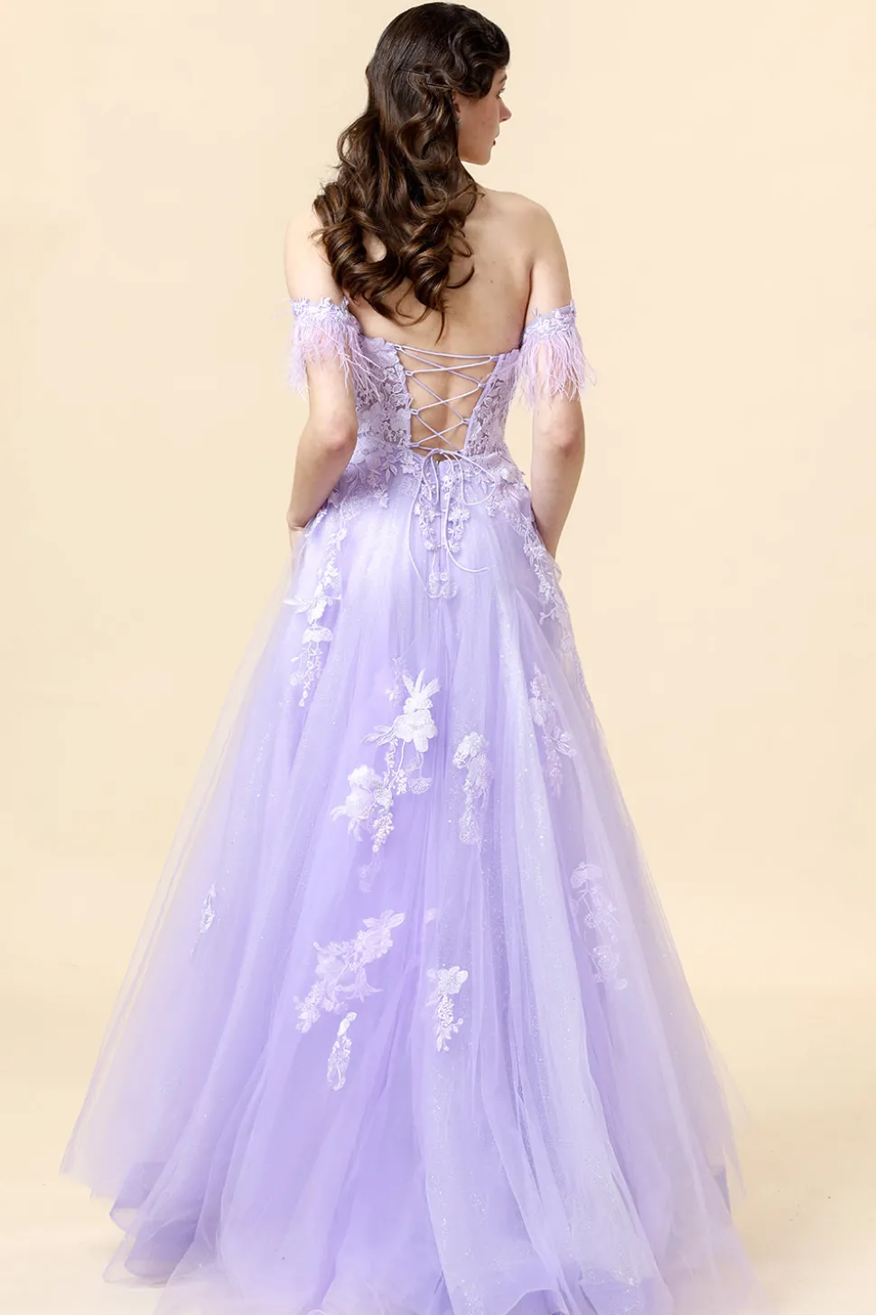 A Line Off the Shoulder Royal Blue Prom Dress with Split Front