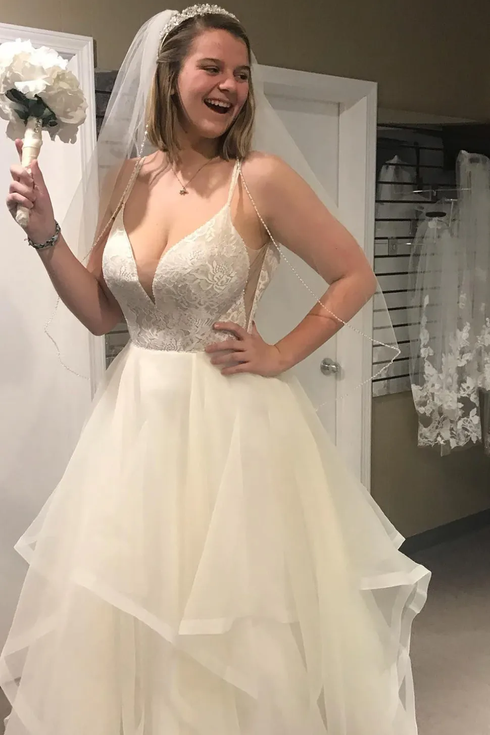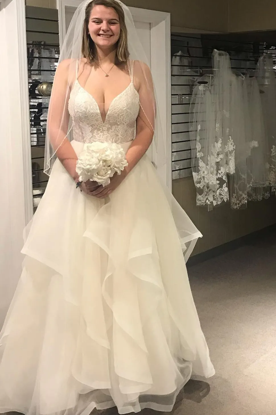 Be the first to review “Asymmetrical Tulle Spaghetti Straps White Long Wedding Dress” Cancel reply