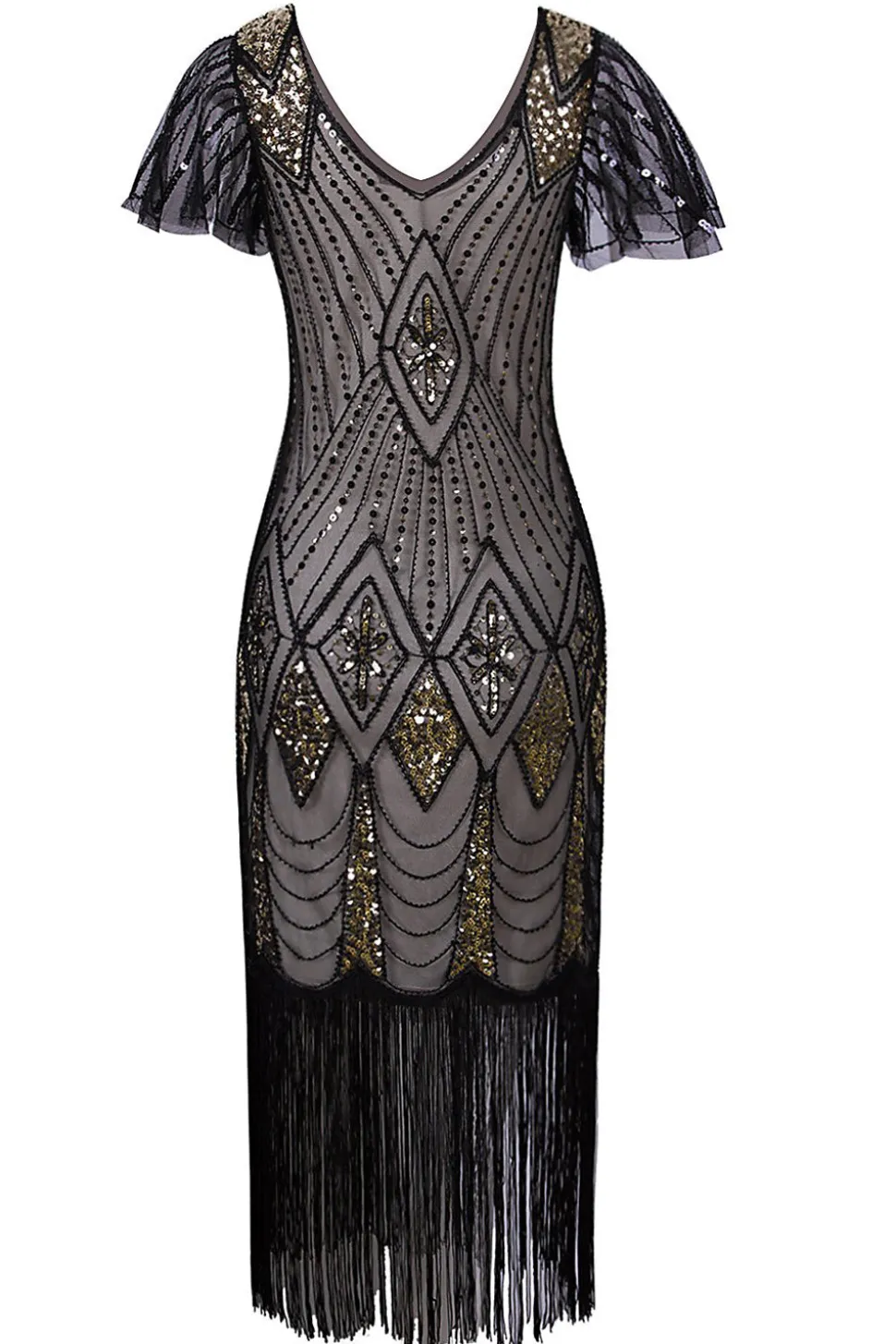 Occasion: The unique and exquisite sequins embroidery embellished this 1920s flapper dress, which is perfect for Great Gatsby Parties, Weddings, Proms or any other Special Occasions! Flapper your way into style this season with this gorgeous fringed, jaw dropping 20s style dress. This art deco inspired dress will have heads turning at any parties.