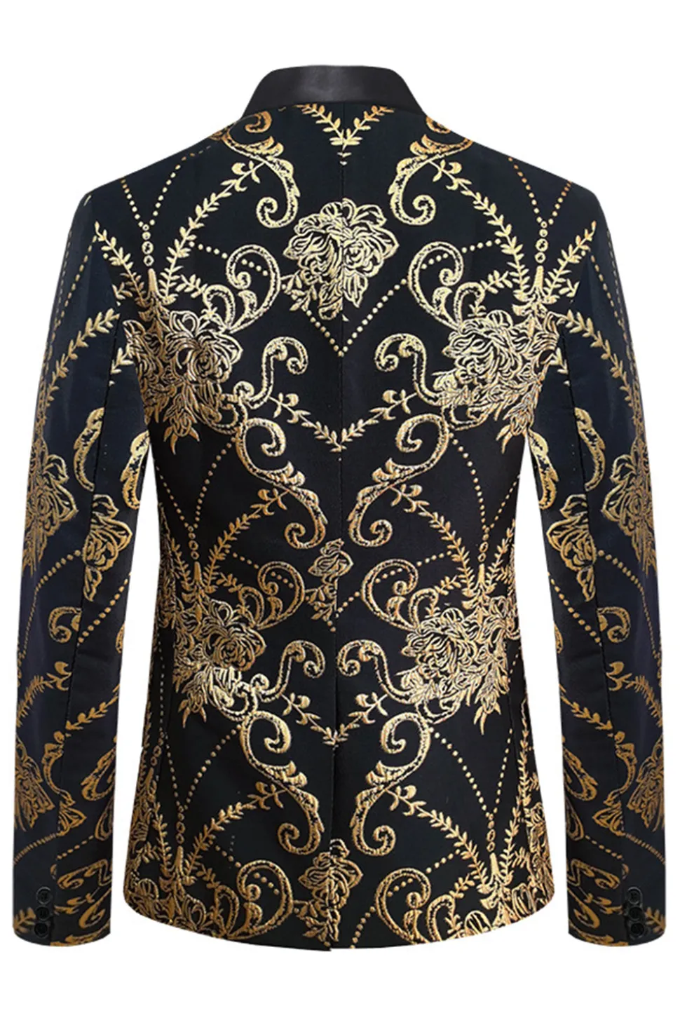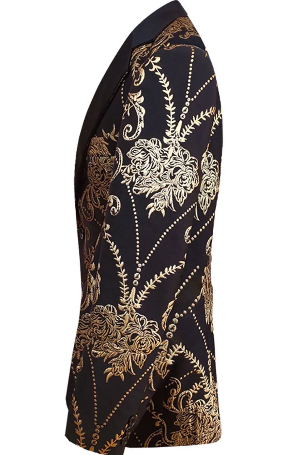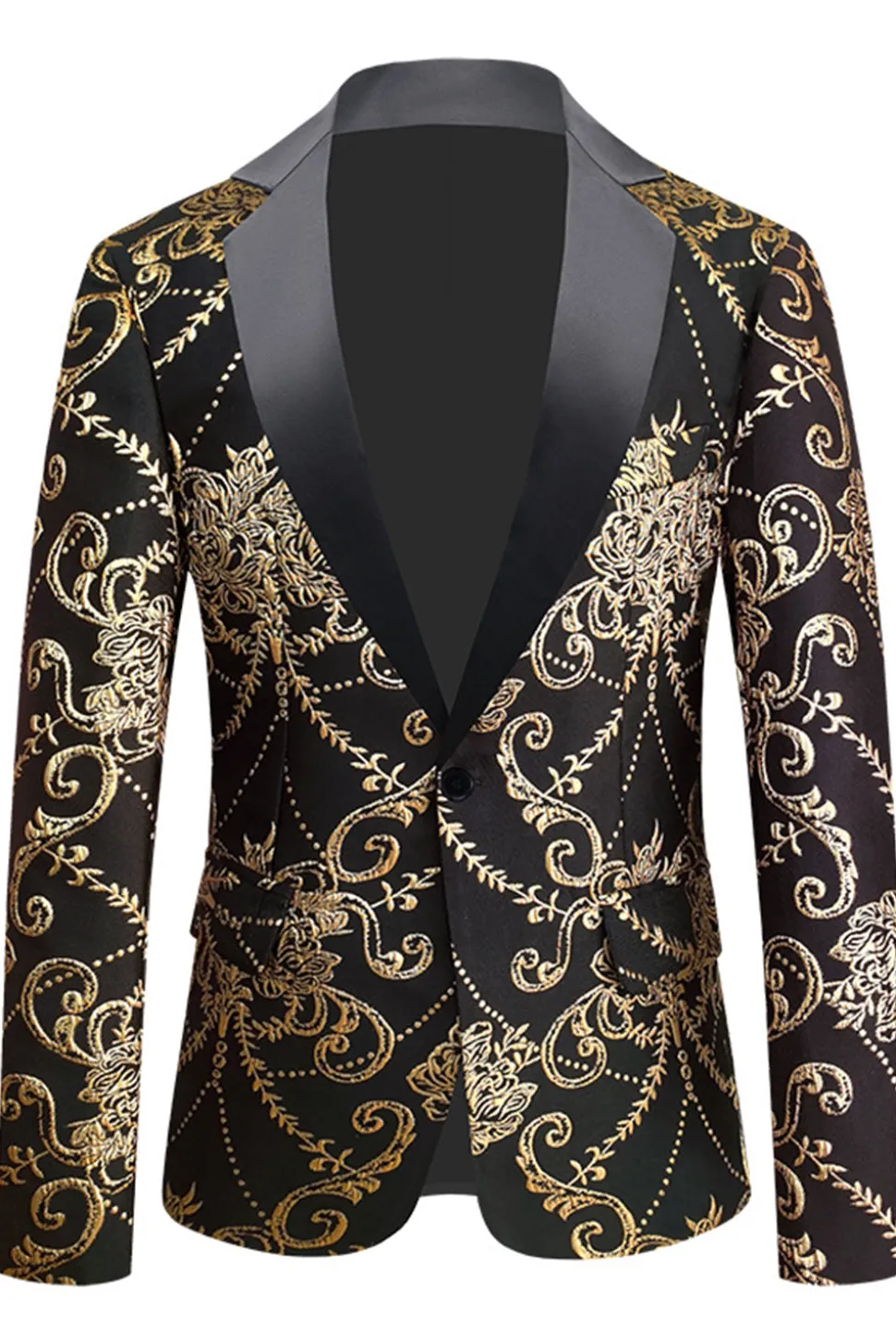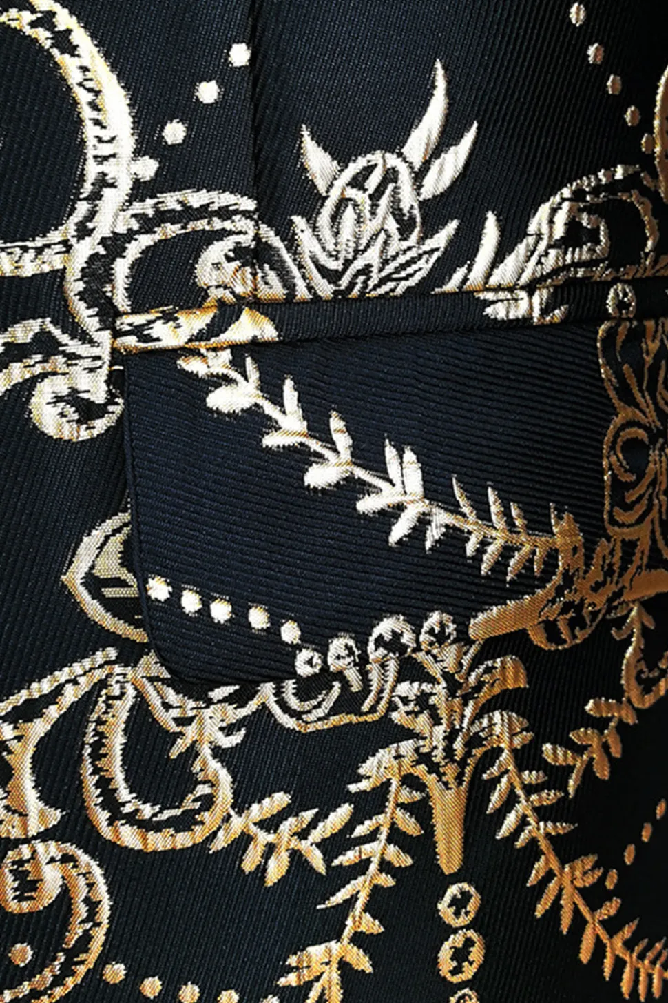 Black Golden Notched Lapel Jacquard Men’s Blazer