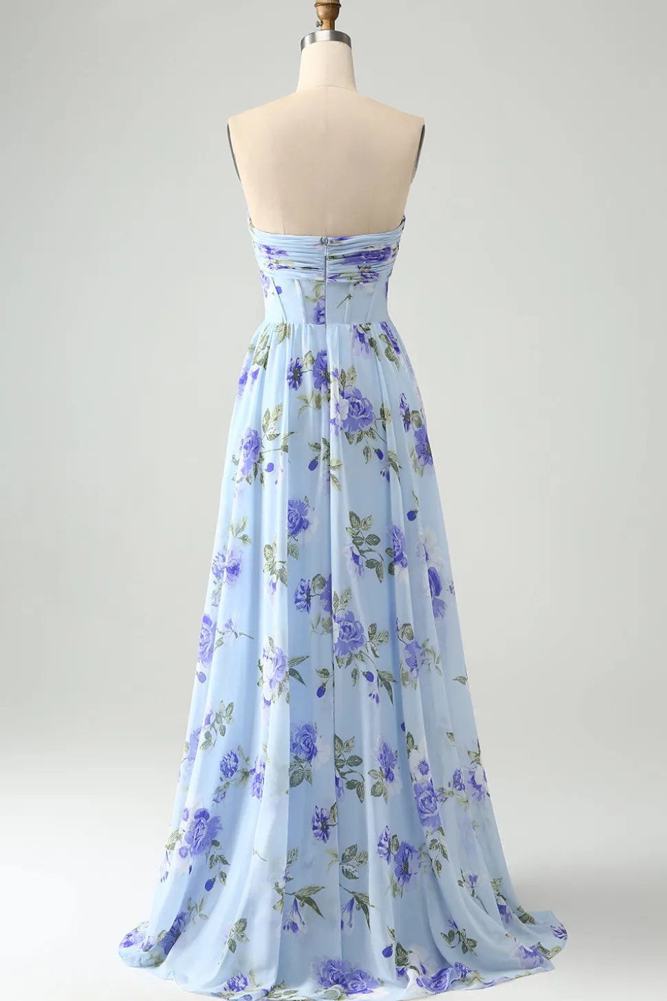 A Line Off the Shoulder Royal Blue Prom Dress with Split Front