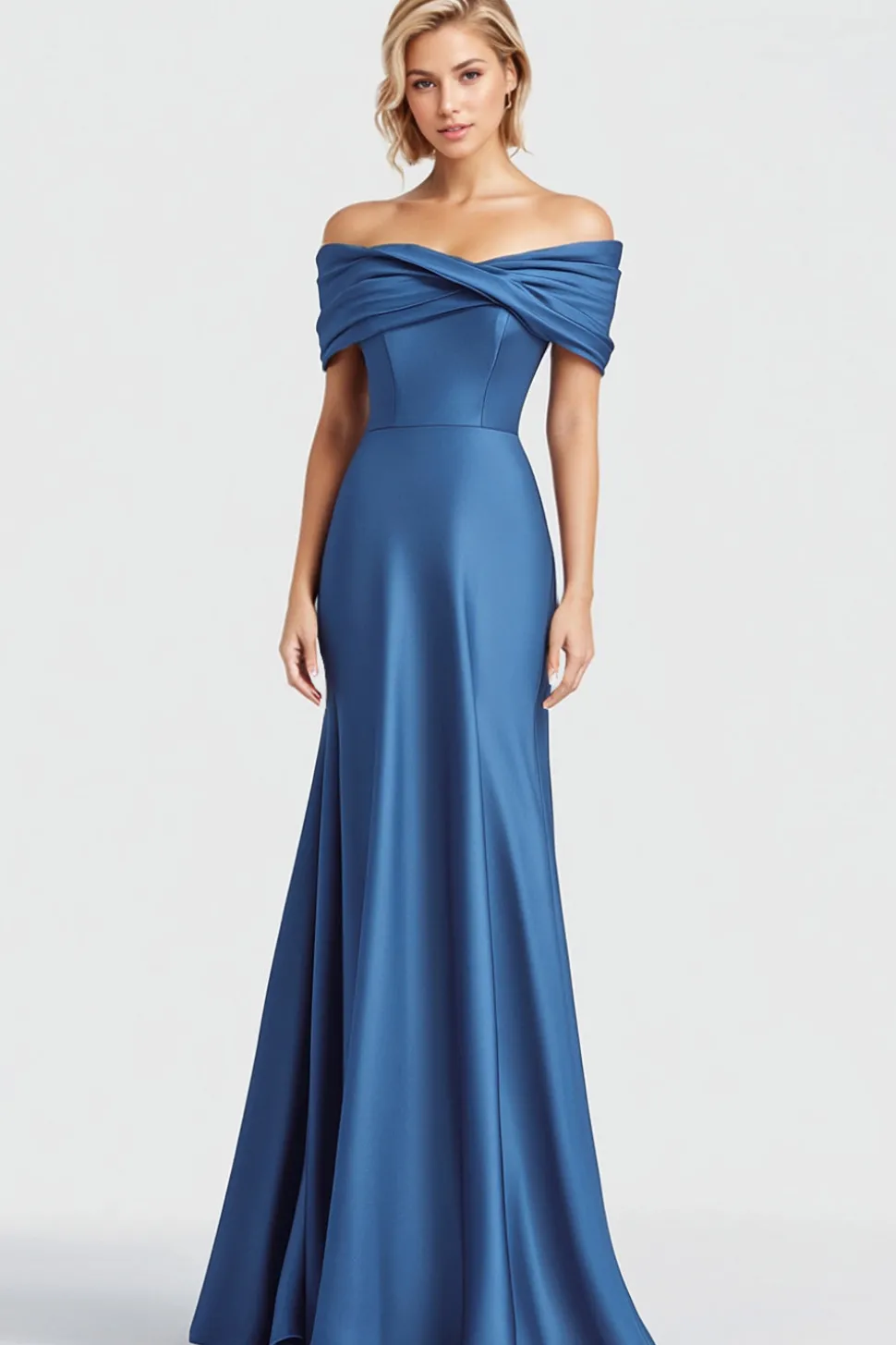 A Line Off the Shoulder Royal Blue Prom Dress with Split Front