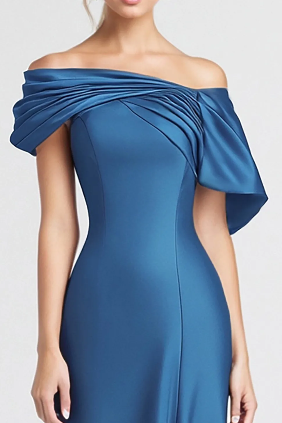 A Line Off the Shoulder Royal Blue Prom Dress with Split Front