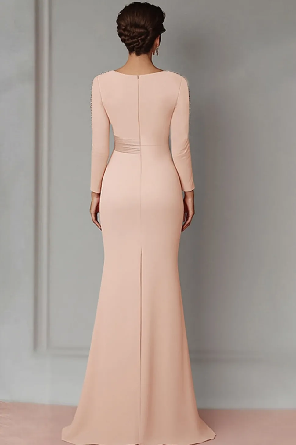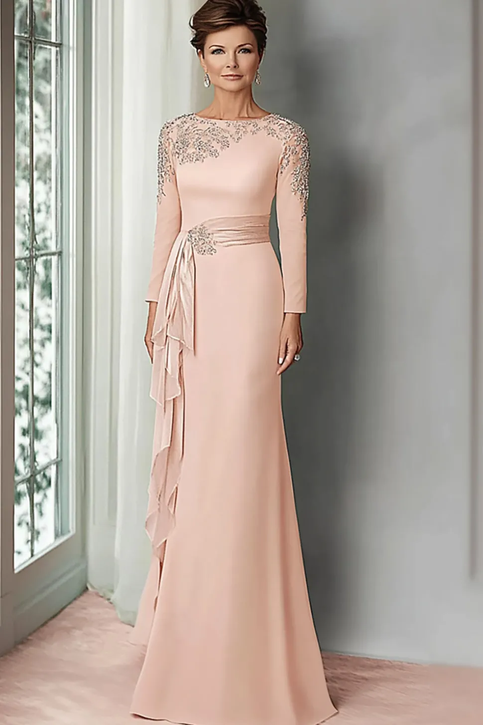 Blush Lace Sheath Mother Of The Bride Dress with Long Sleeves