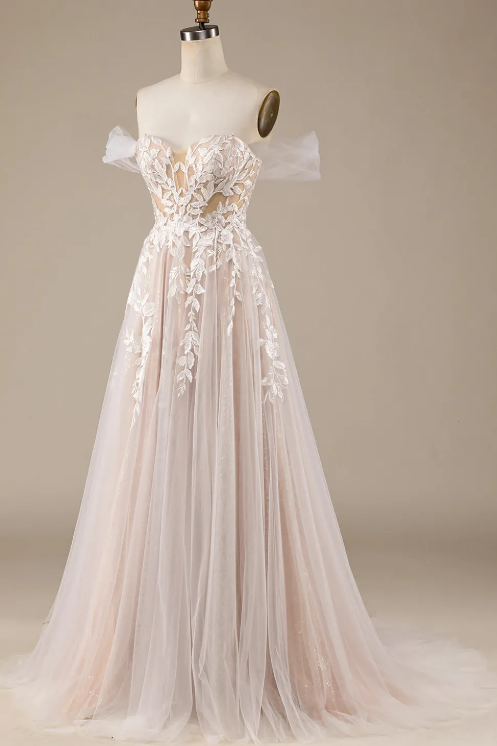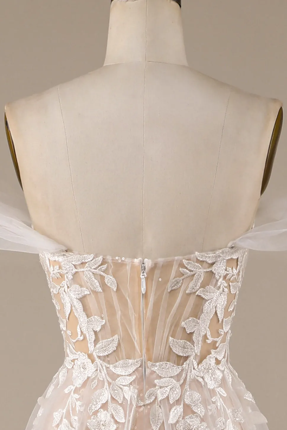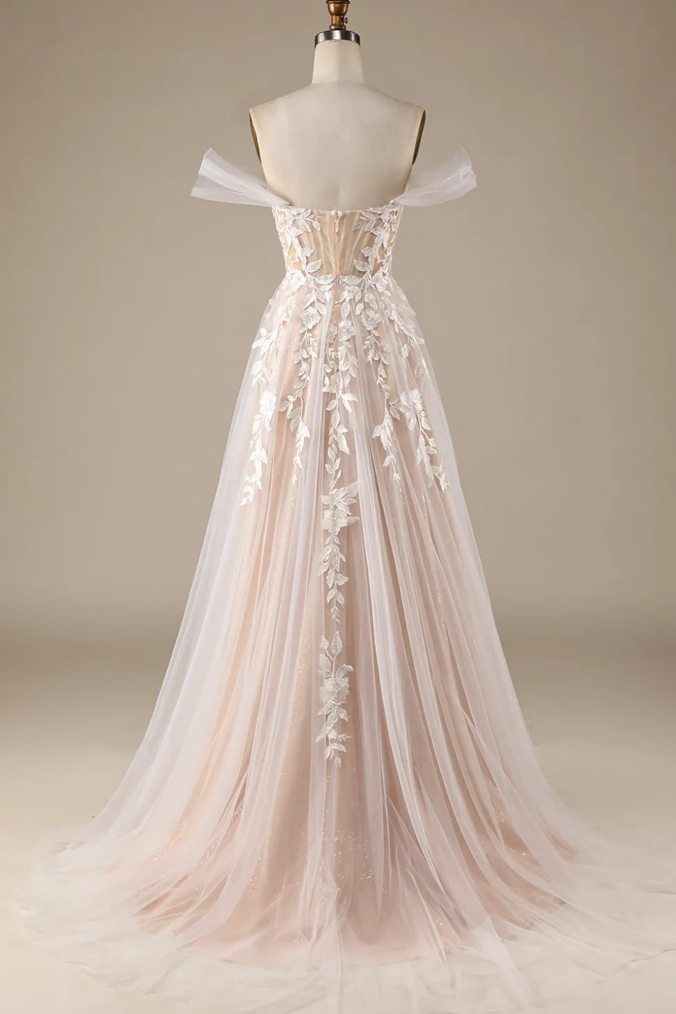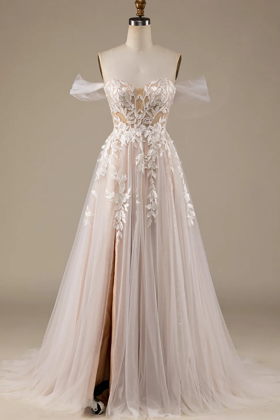A Line Off the Shoulder Royal Blue Prom Dress with Split Front