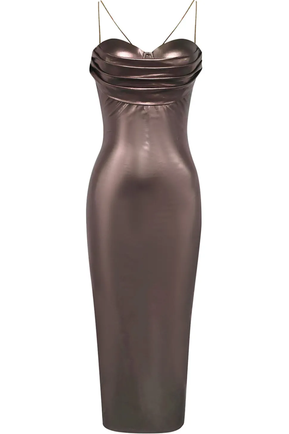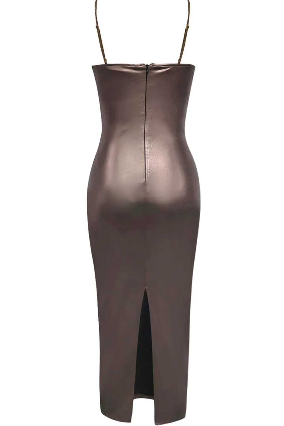 Dark Brown Mermaid Spaghetti Straps Long Formal Dress with Slit