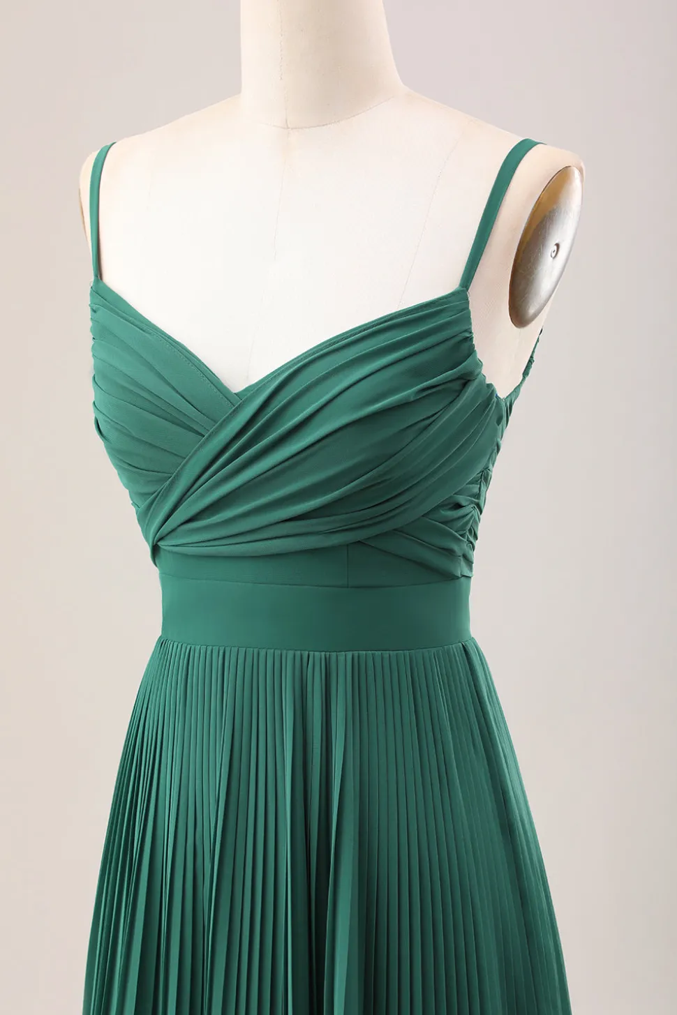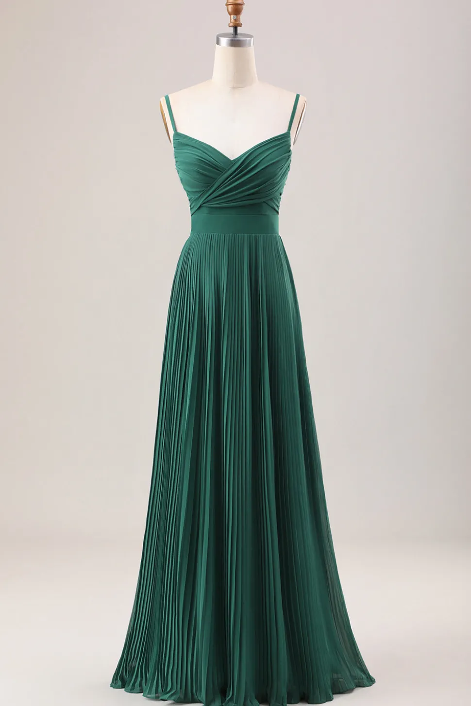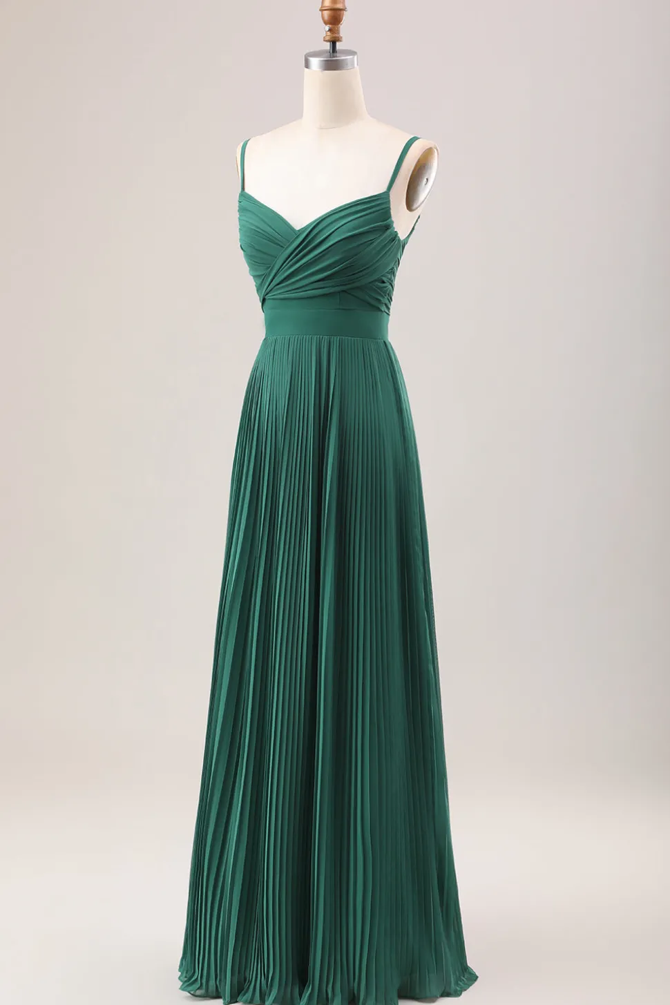Dark Green A Line Spaghetti Straps Long Chiffon Bridesmaid Dress