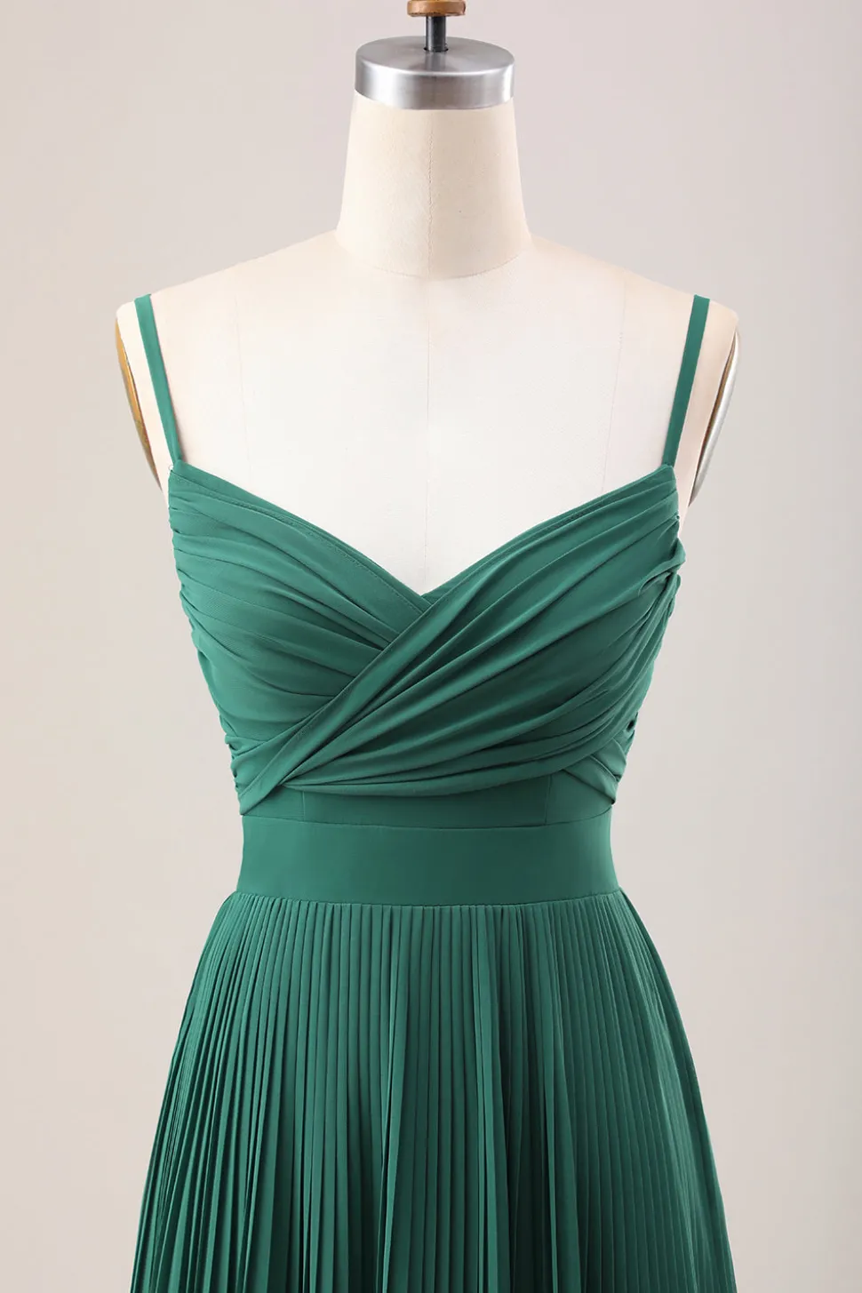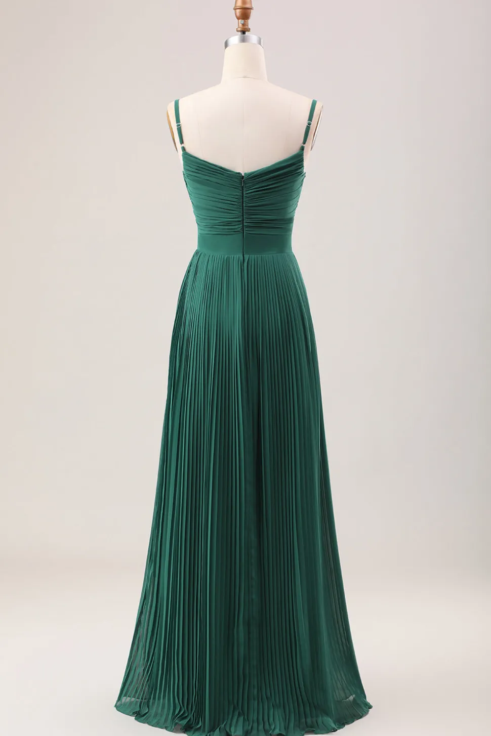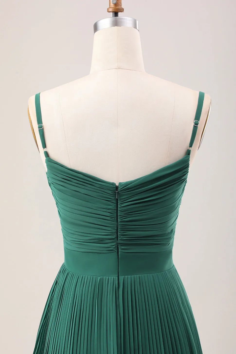 Dark Green A Line Spaghetti Straps Long Chiffon Bridesmaid Dress