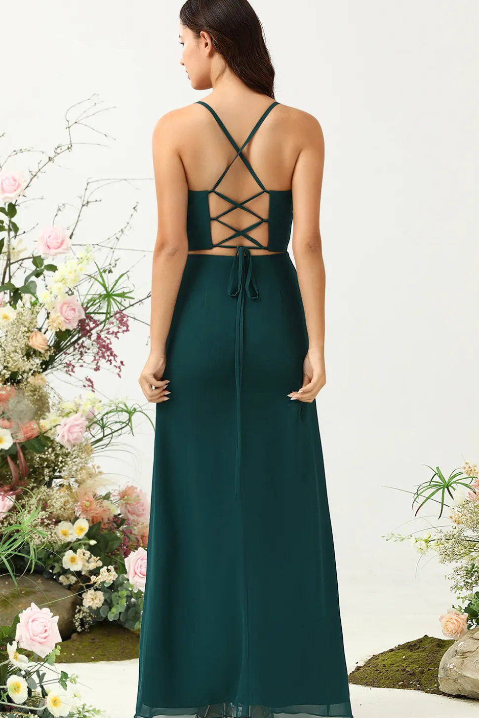 Dark Green Spaghetti Straps Wedding Guest Dress with Slit
