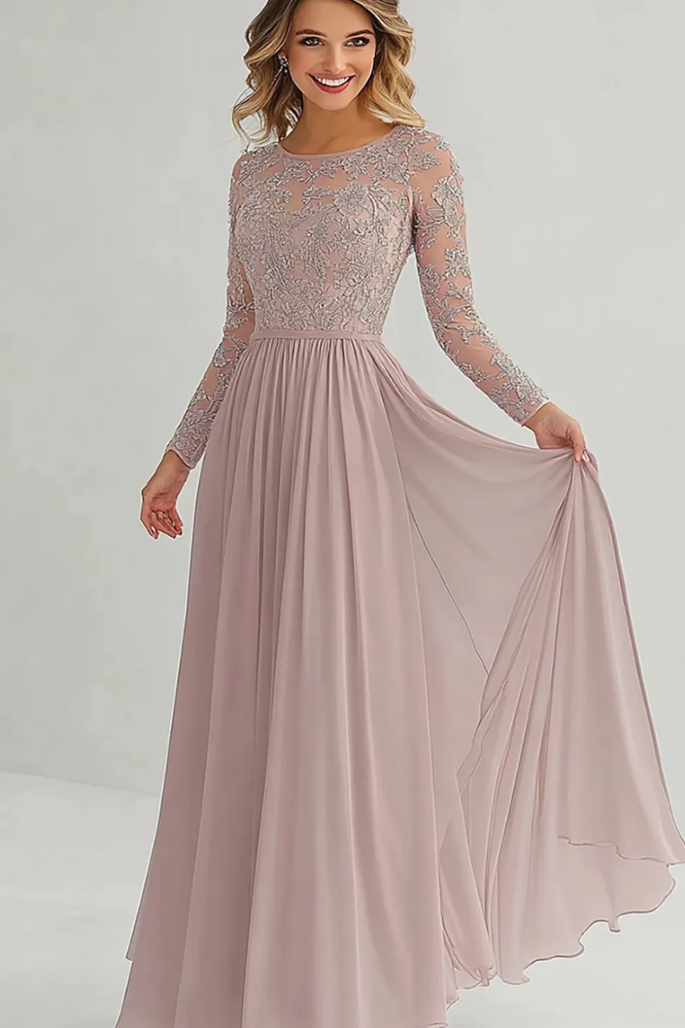 Elegant A Line Long Sleeve Mother of Bride Dress with Lace