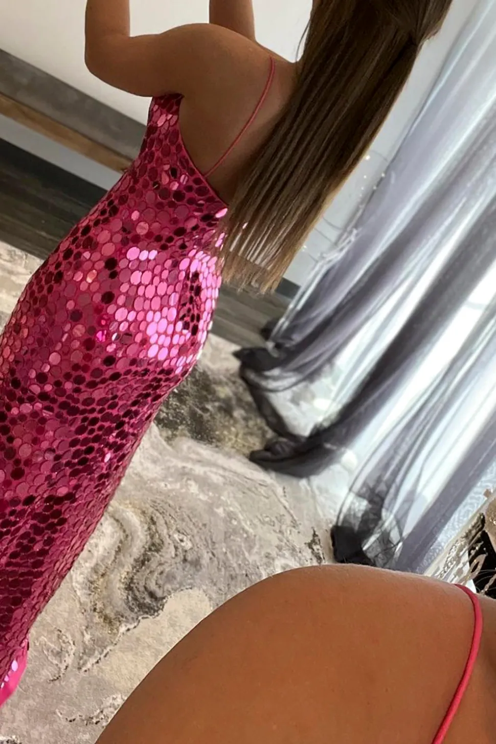 Fabric: Sequins. The fabric is comfortable for skin.