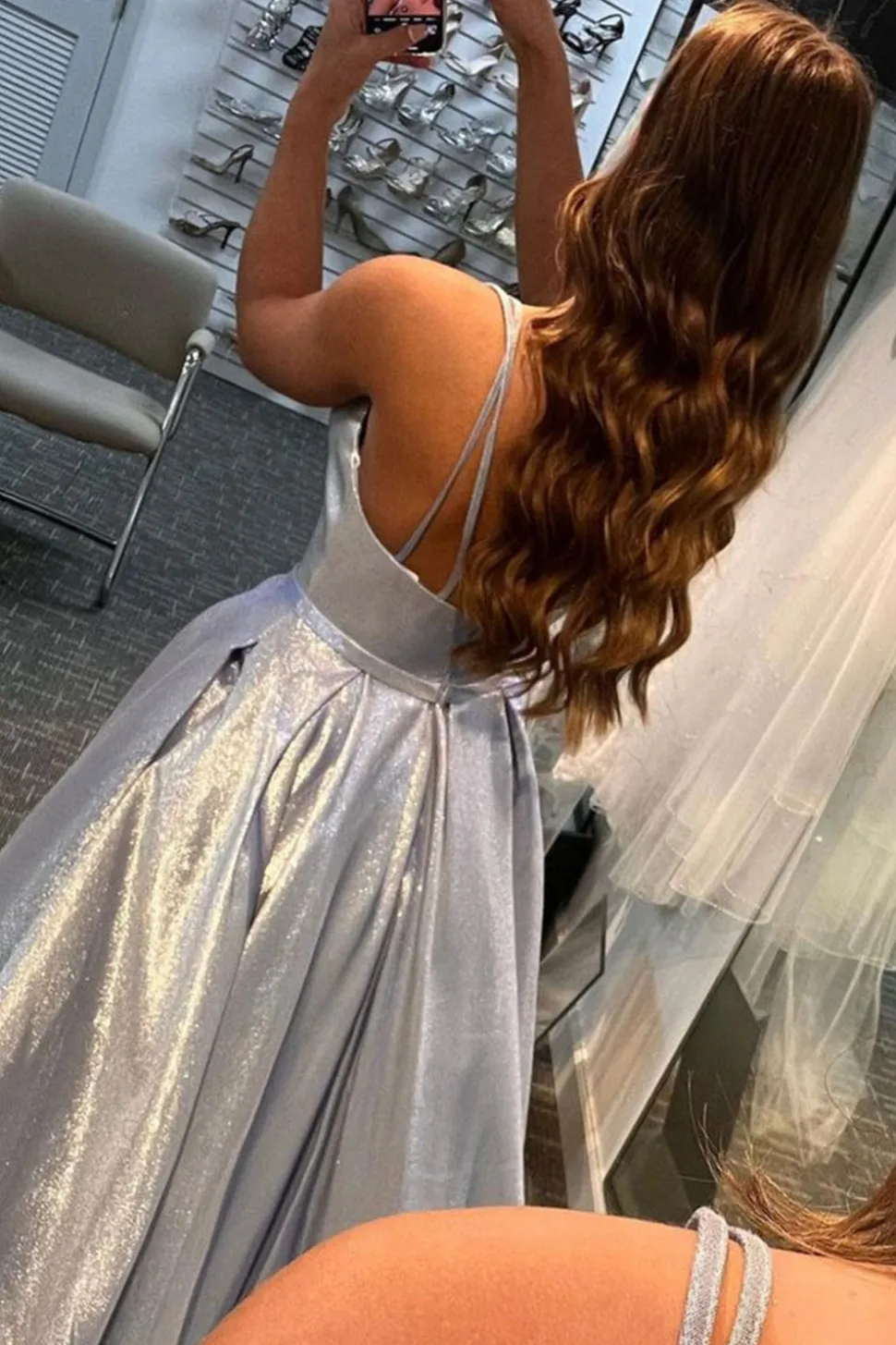 A Line Off the Shoulder Royal Blue Prom Dress with Split Front