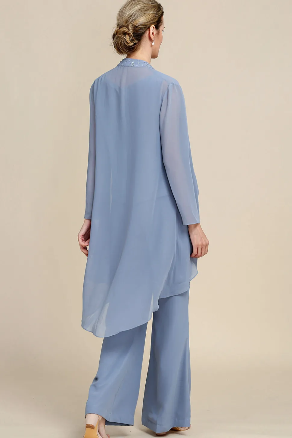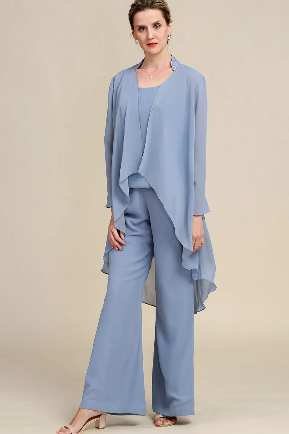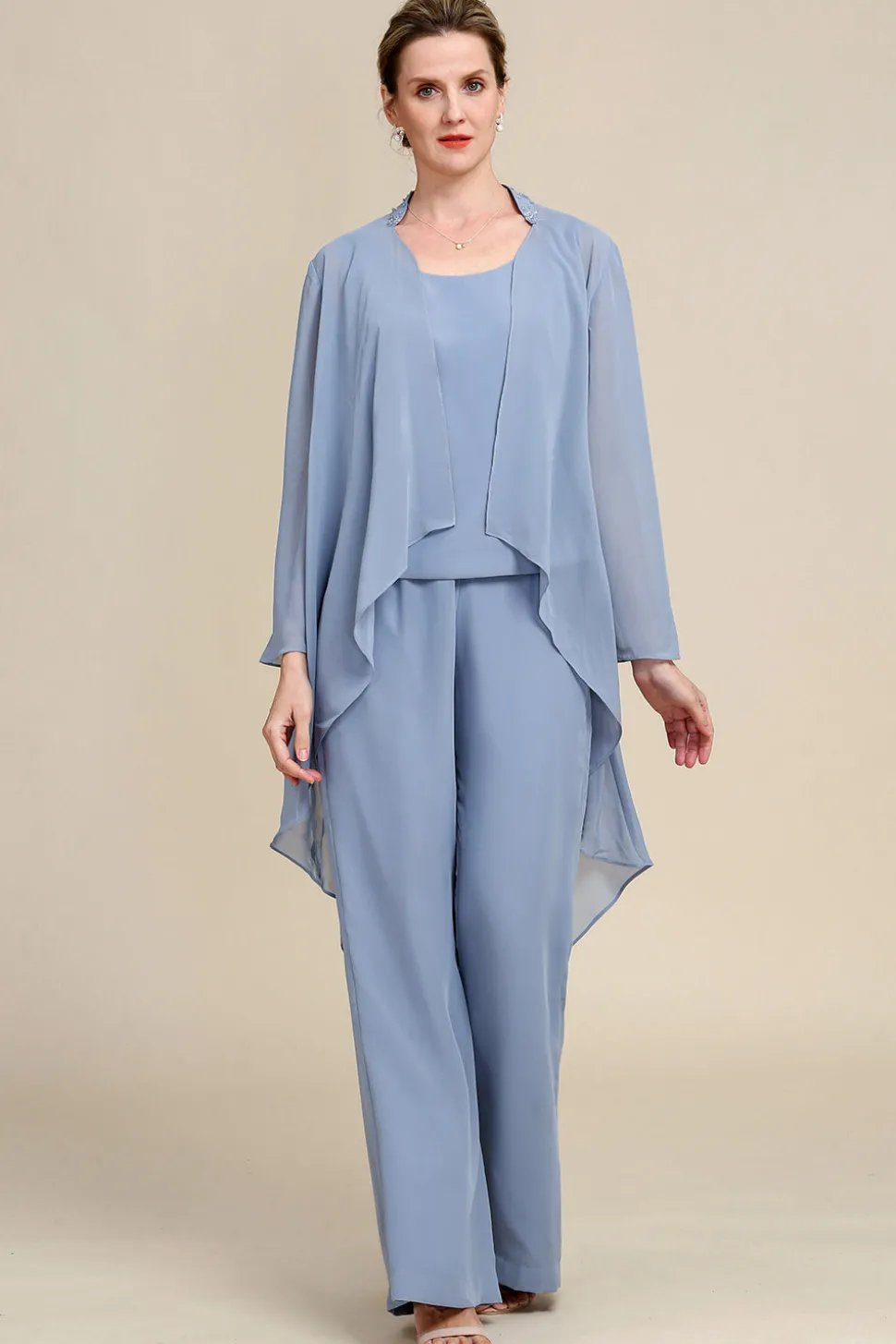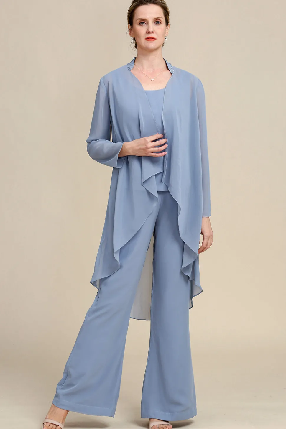 Fabric: Chiffon. The fabric is comfortable for skin.