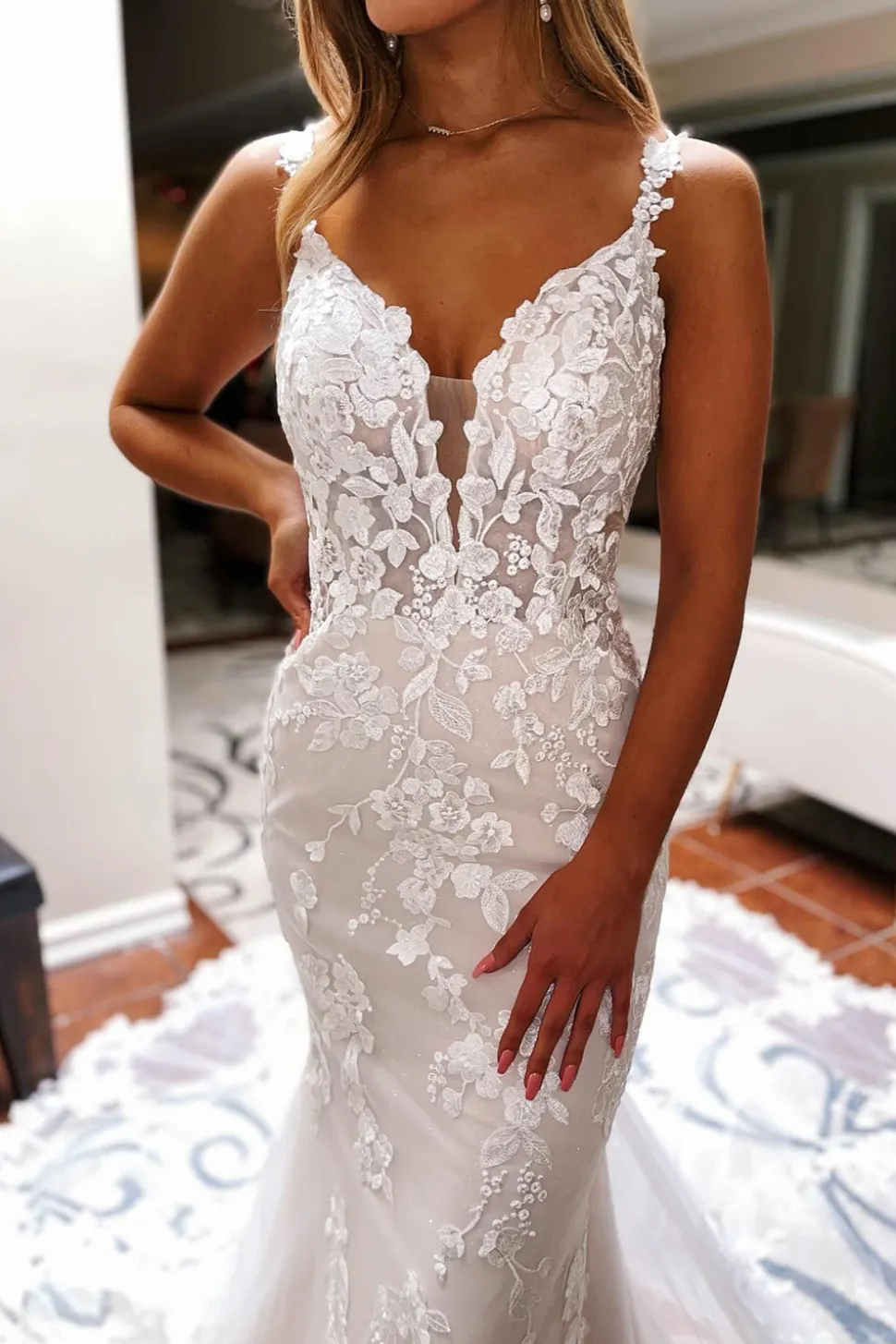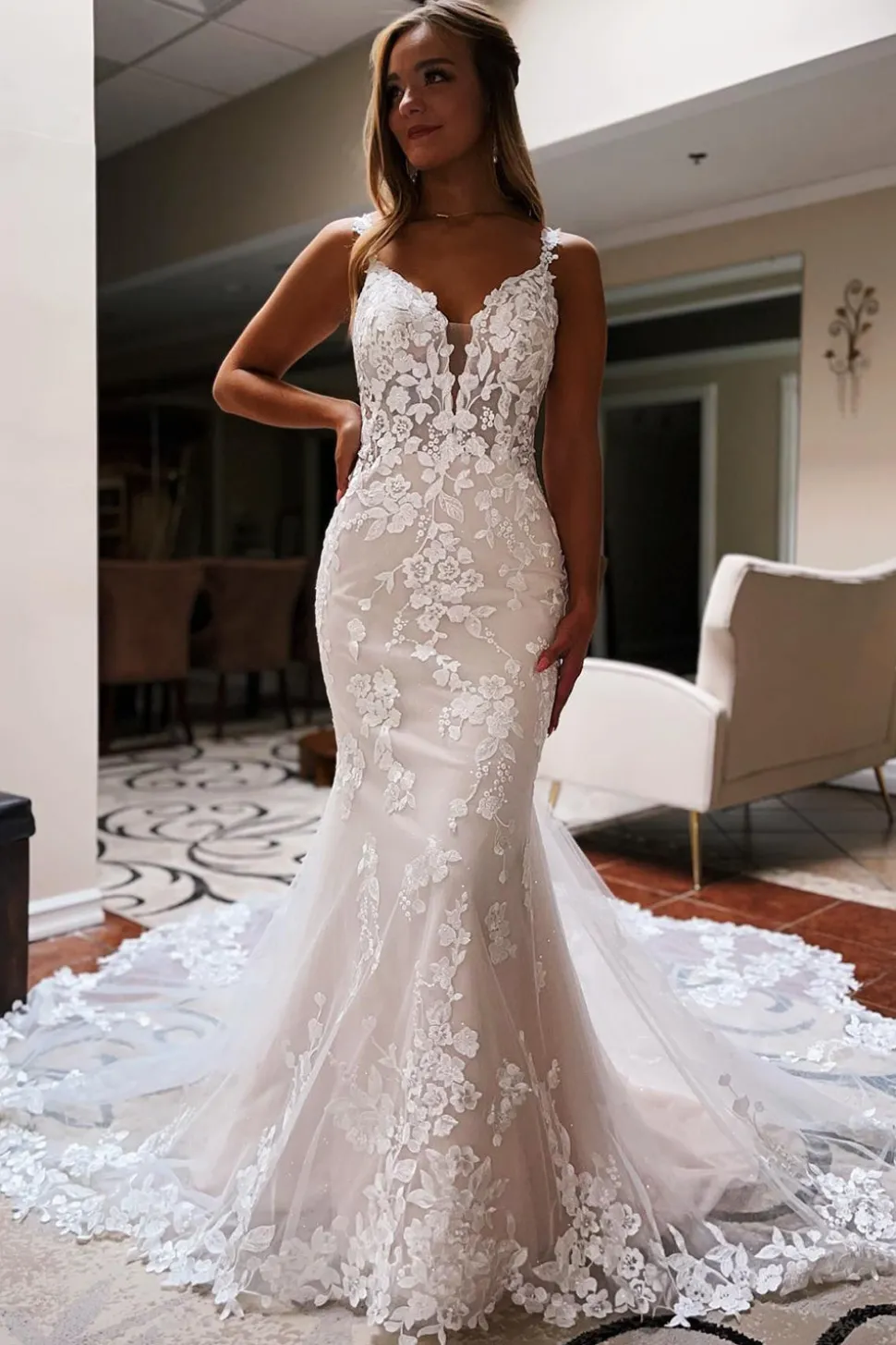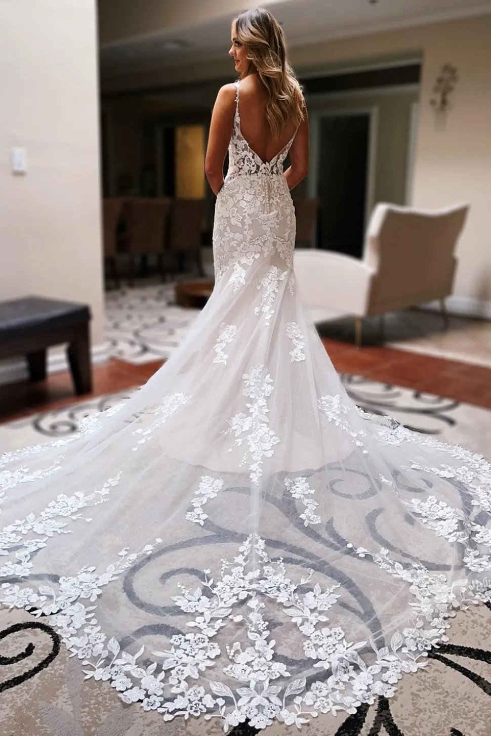 Ivory Backless Lace Mermaid Long Wedding Dress