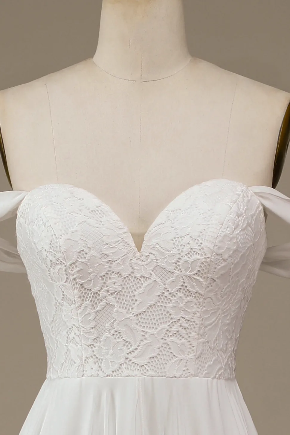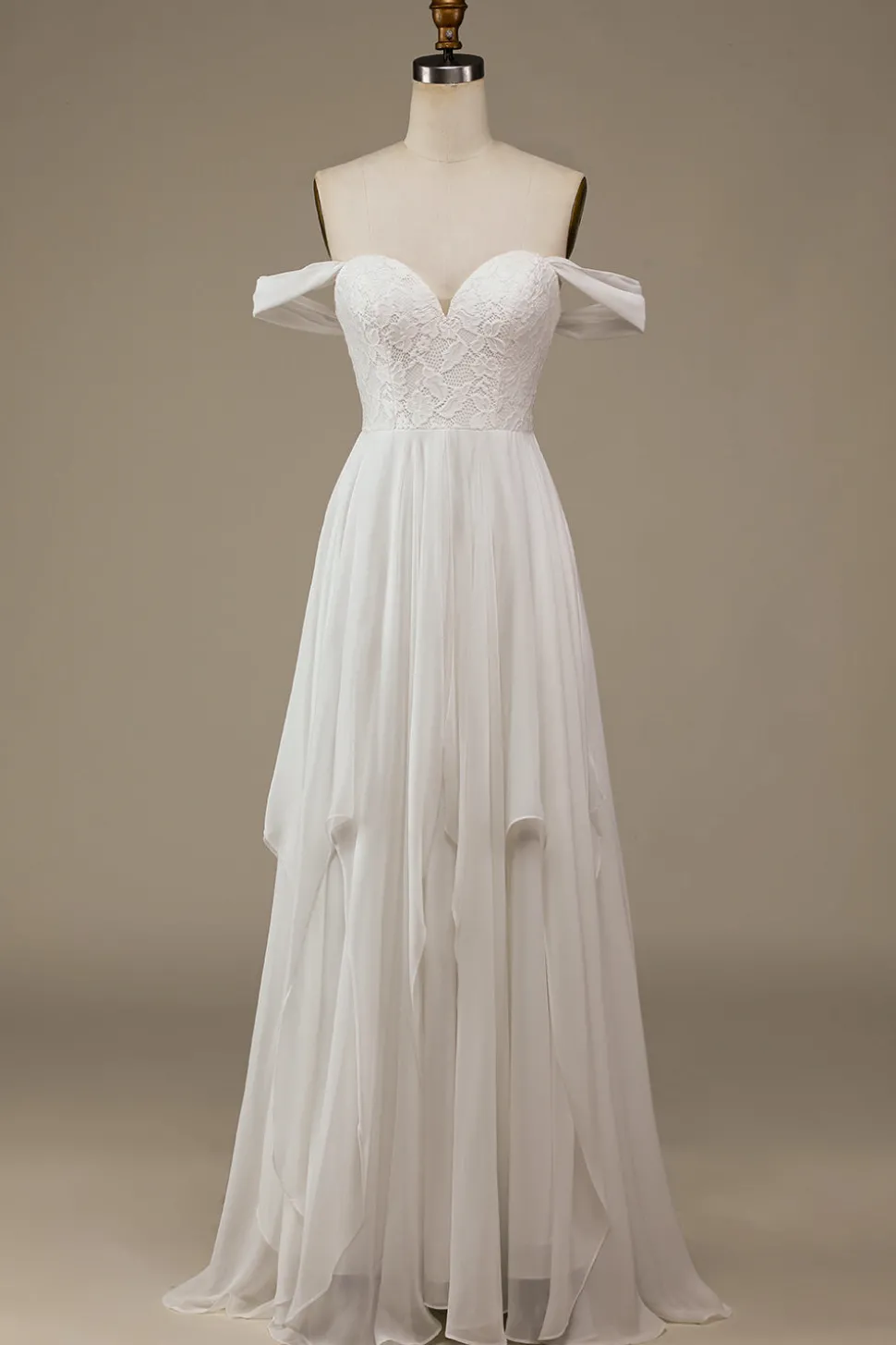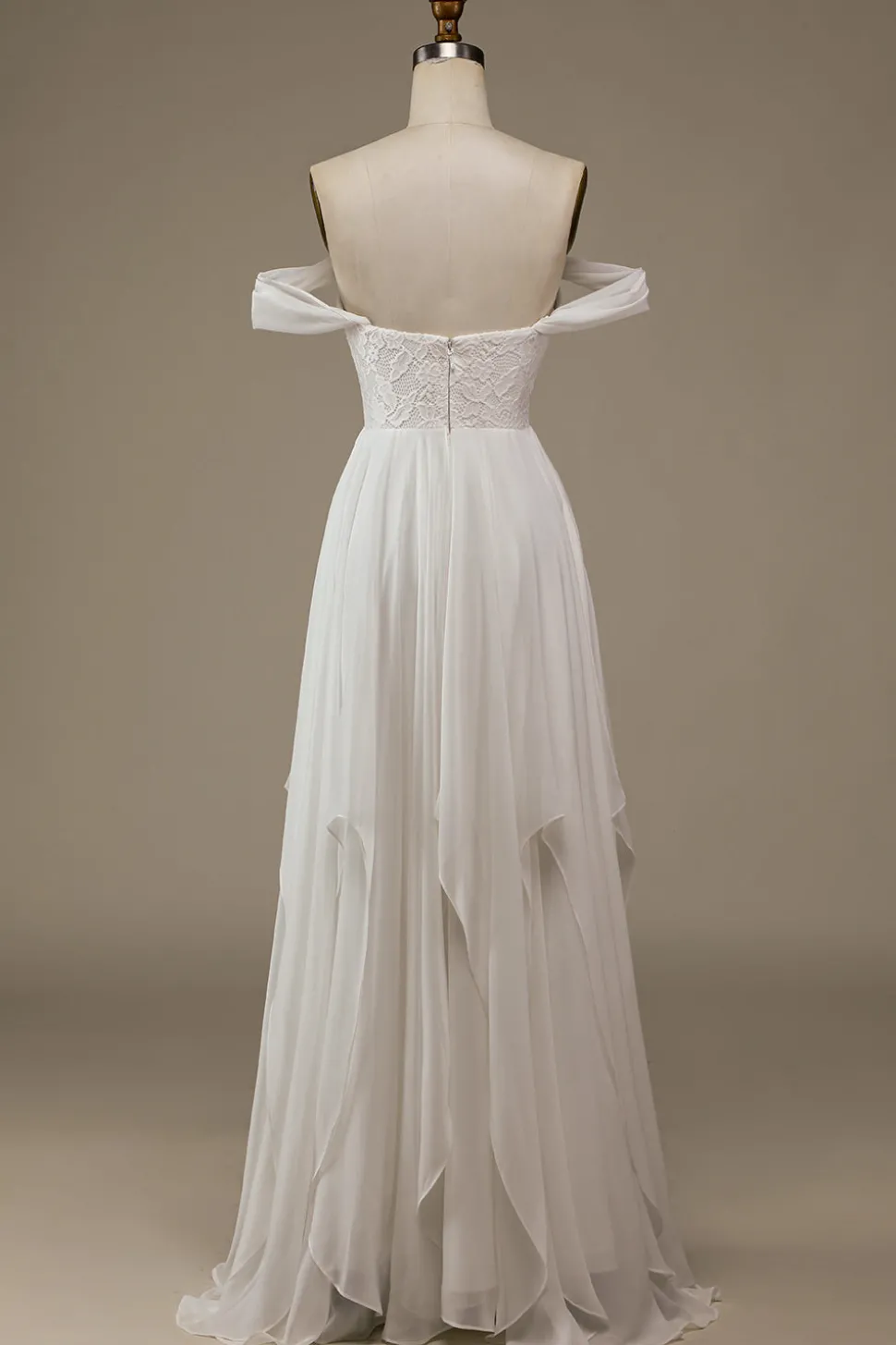 A Line Off the Shoulder Royal Blue Prom Dress with Split Front