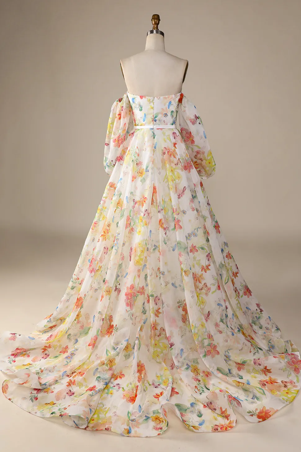 A Line Off the Shoulder Royal Blue Prom Dress with Split Front