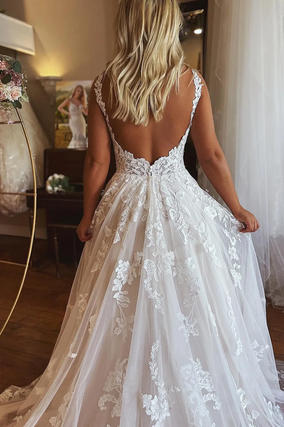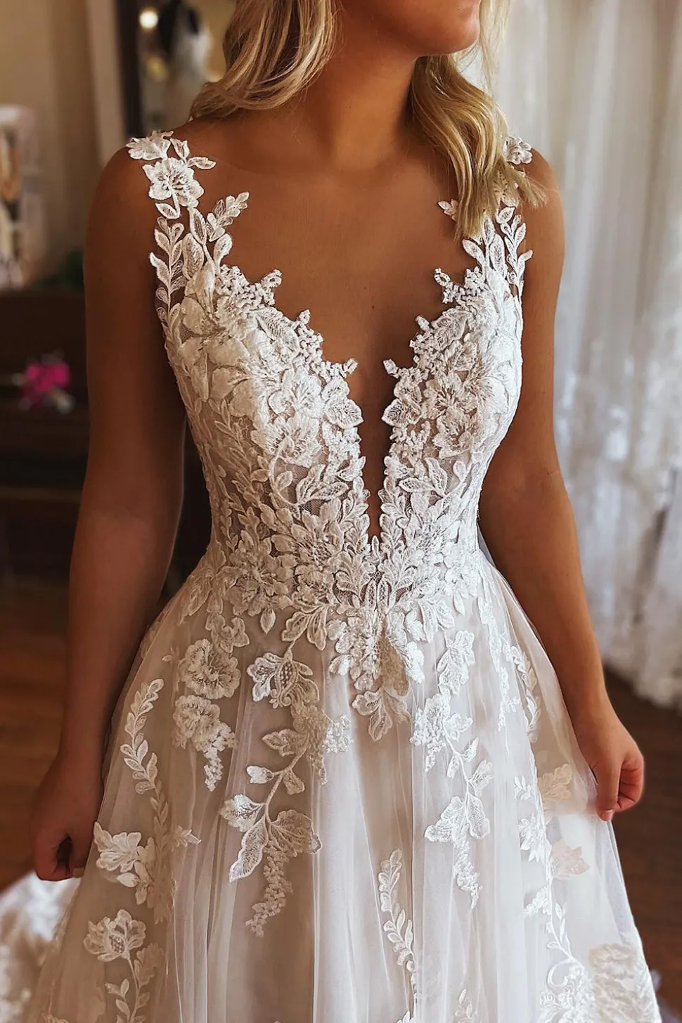 Be the first to review “Ivory V-Neck A-Line Tulle Wedding Dress with Pockets” Cancel reply