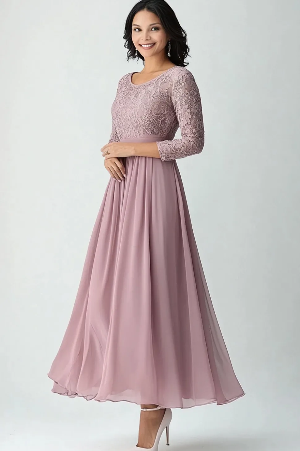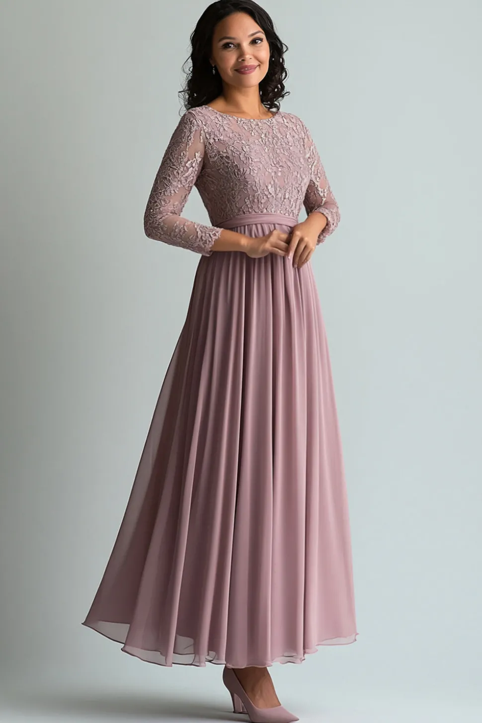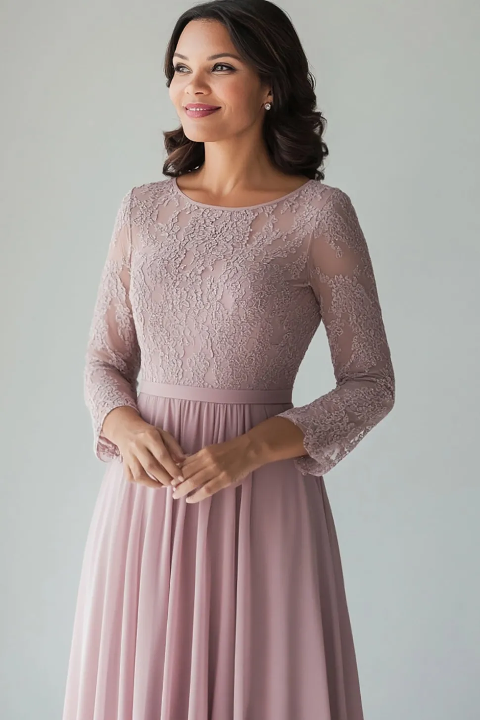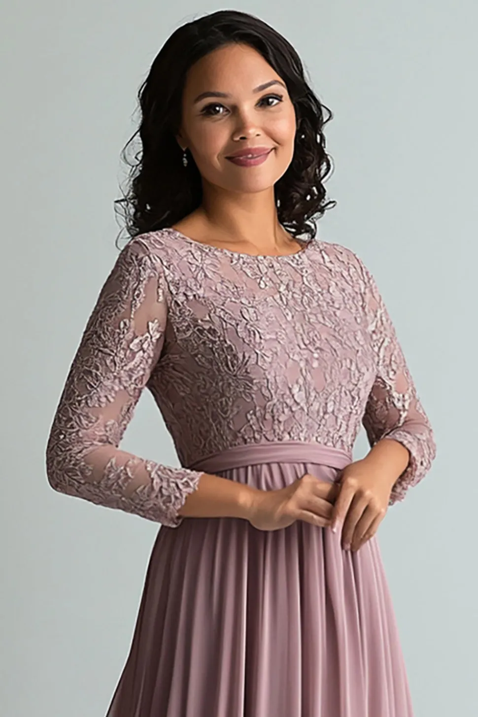 Lace Blush Chiffon Scoop Neck A Line Mother of The Bride Dress