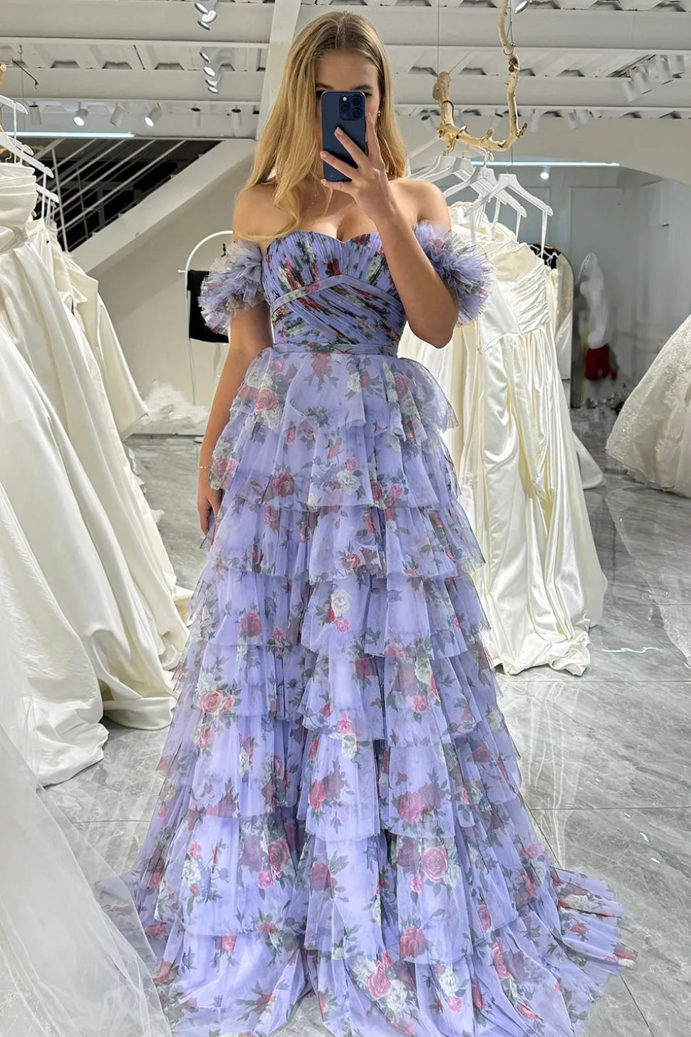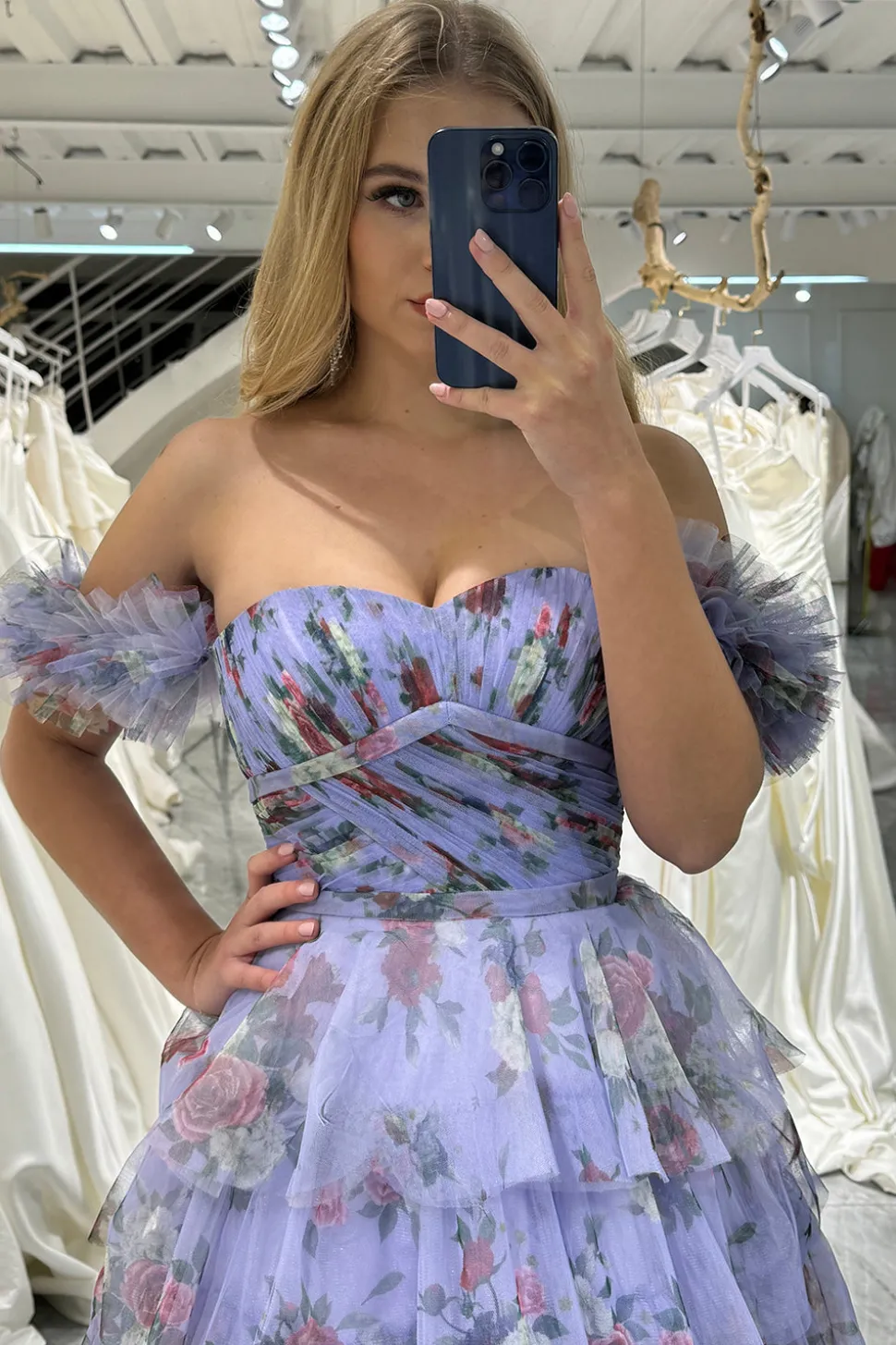 A Line Off the Shoulder Royal Blue Prom Dress with Split Front