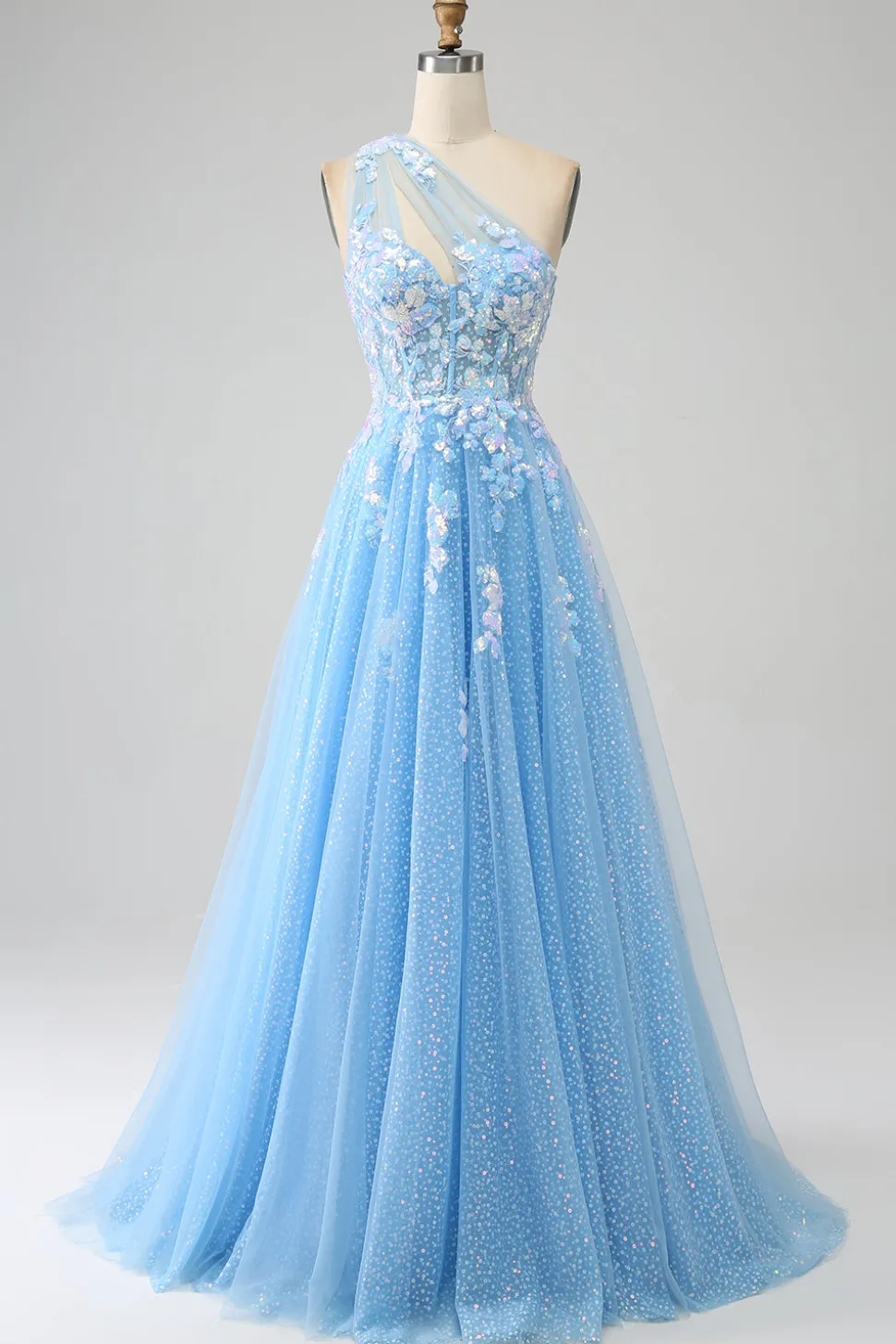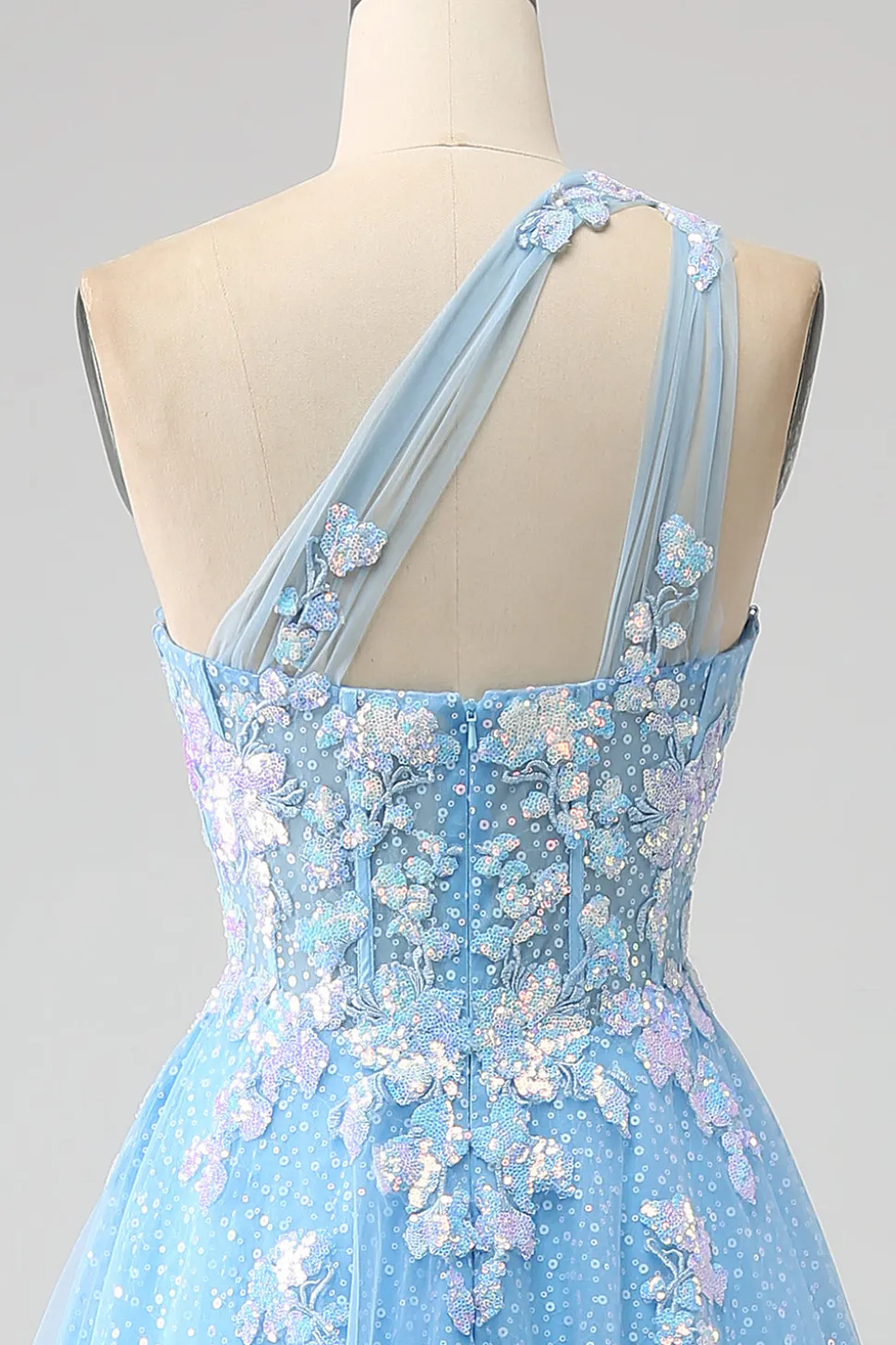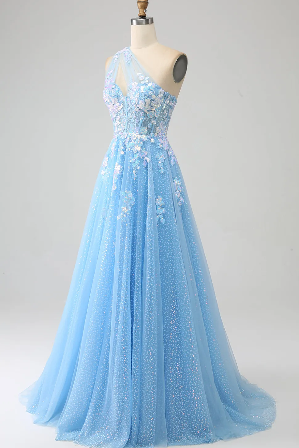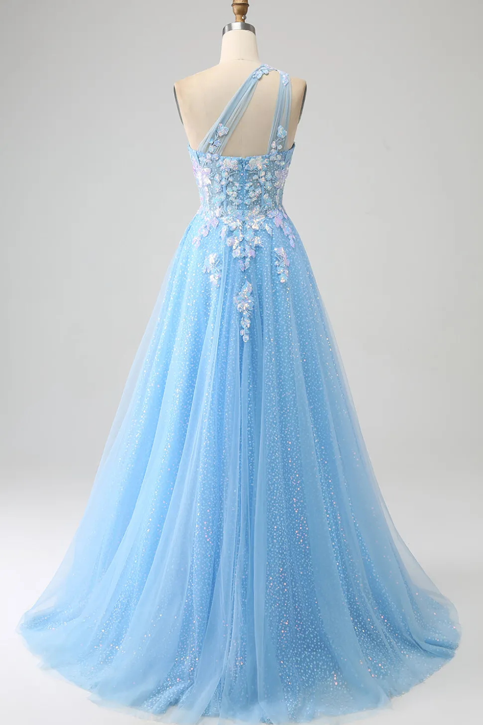 A Line Off the Shoulder Royal Blue Prom Dress with Split Front