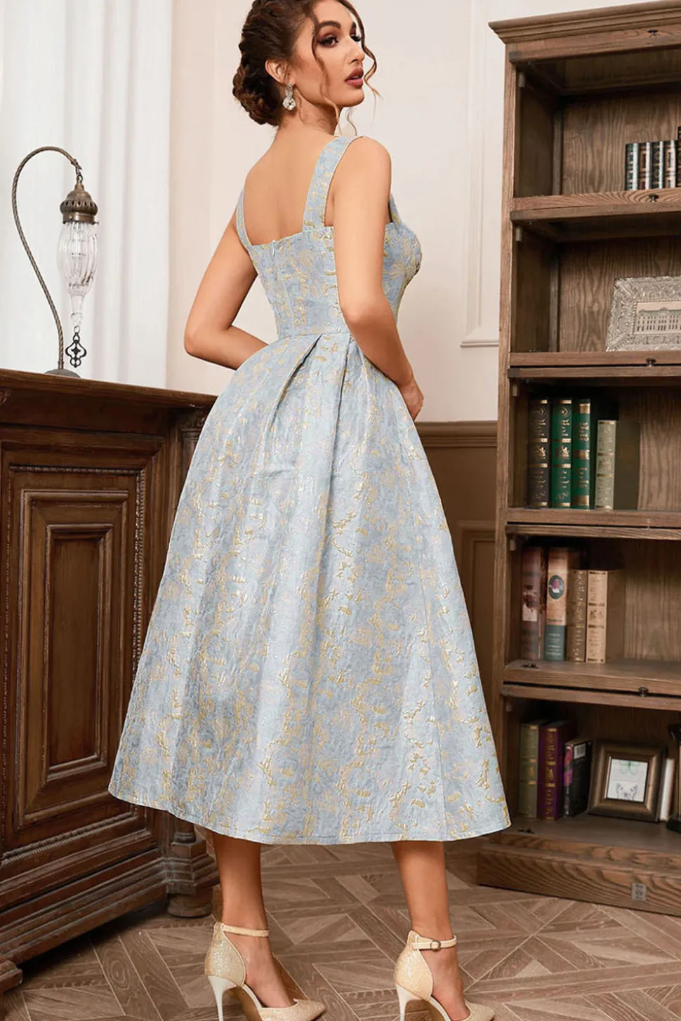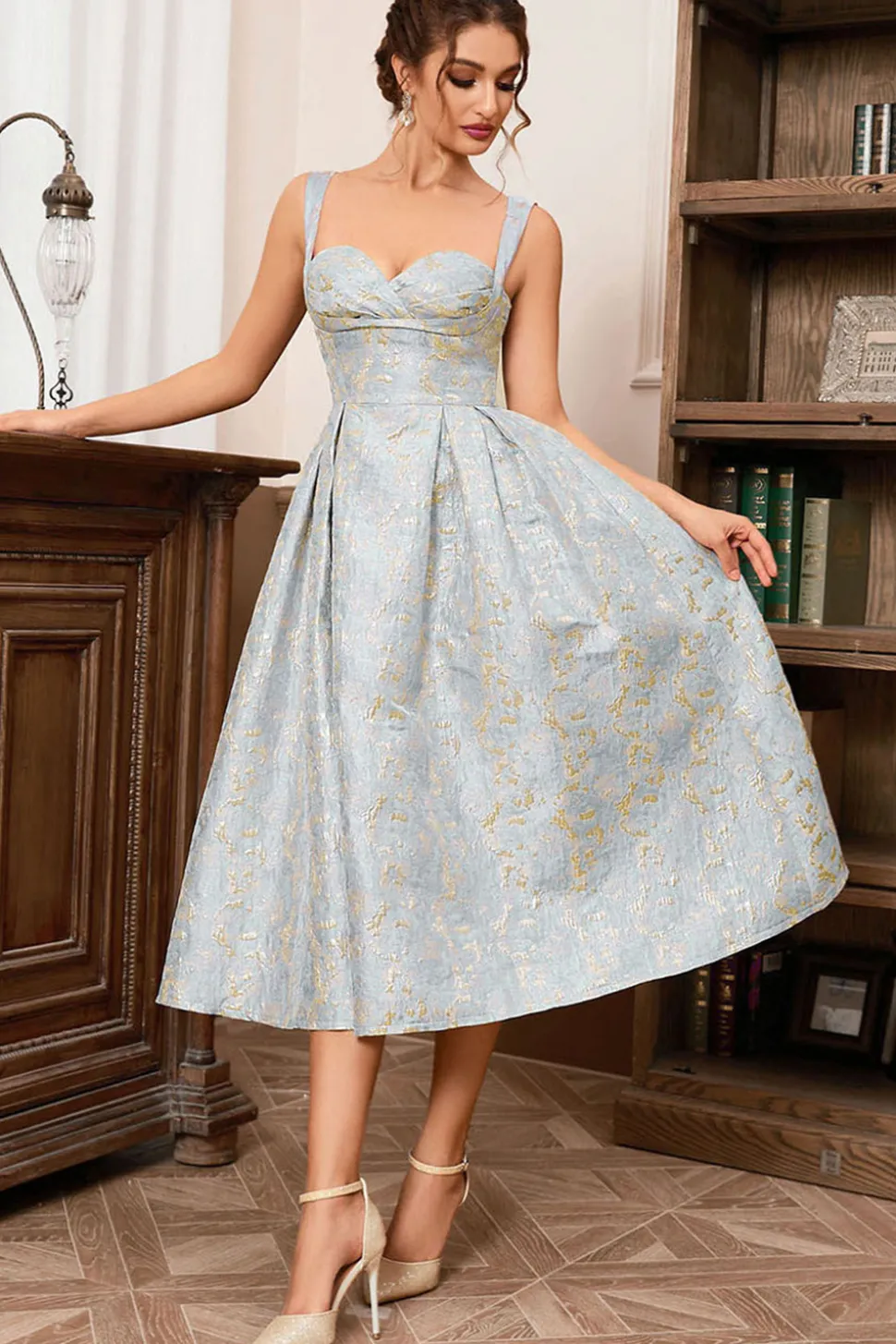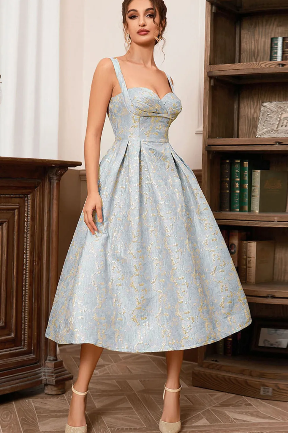 Light Blue A Line Sweetheart Spaghetti Straps Long Formal Dress