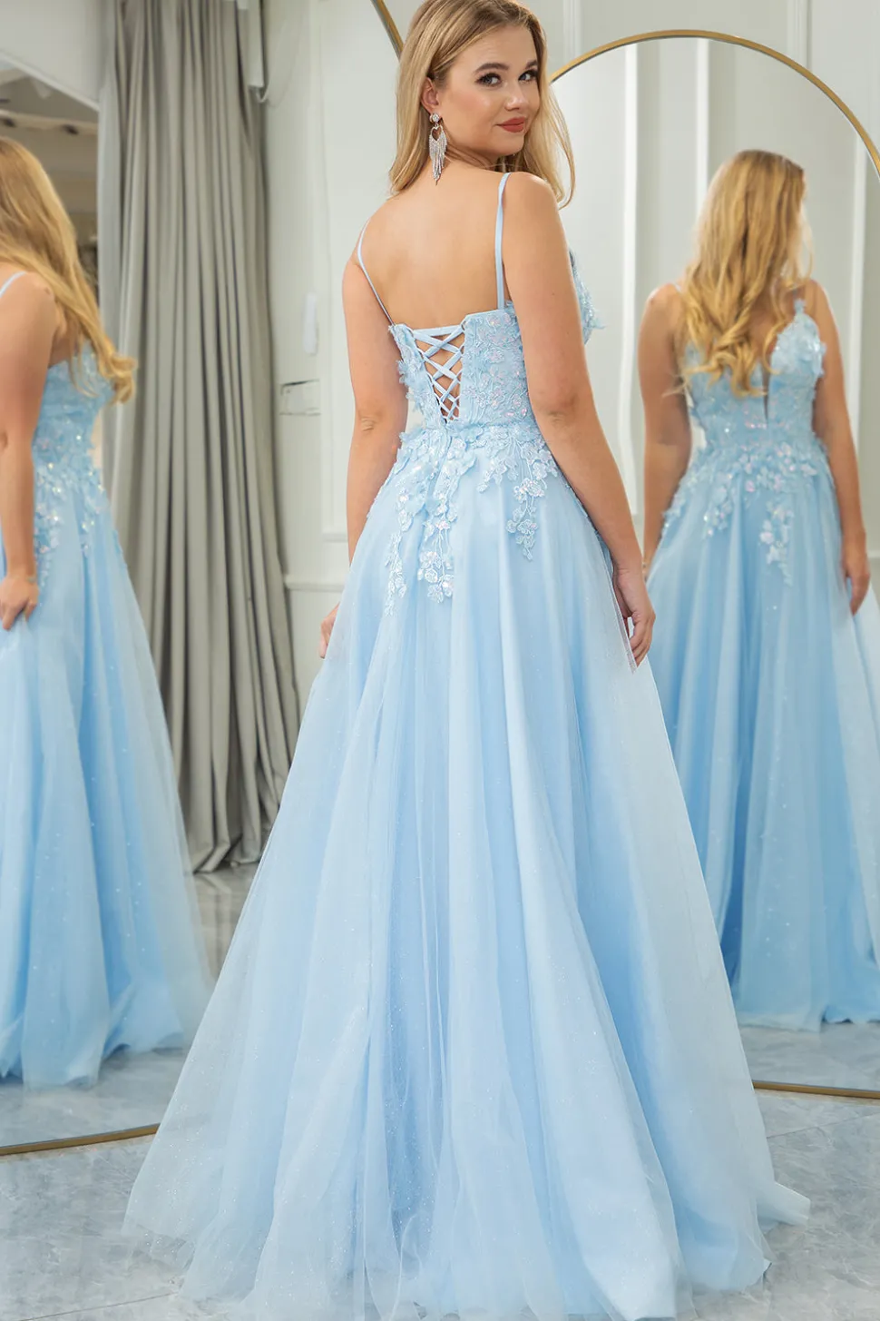 A Line Off the Shoulder Royal Blue Prom Dress with Split Front