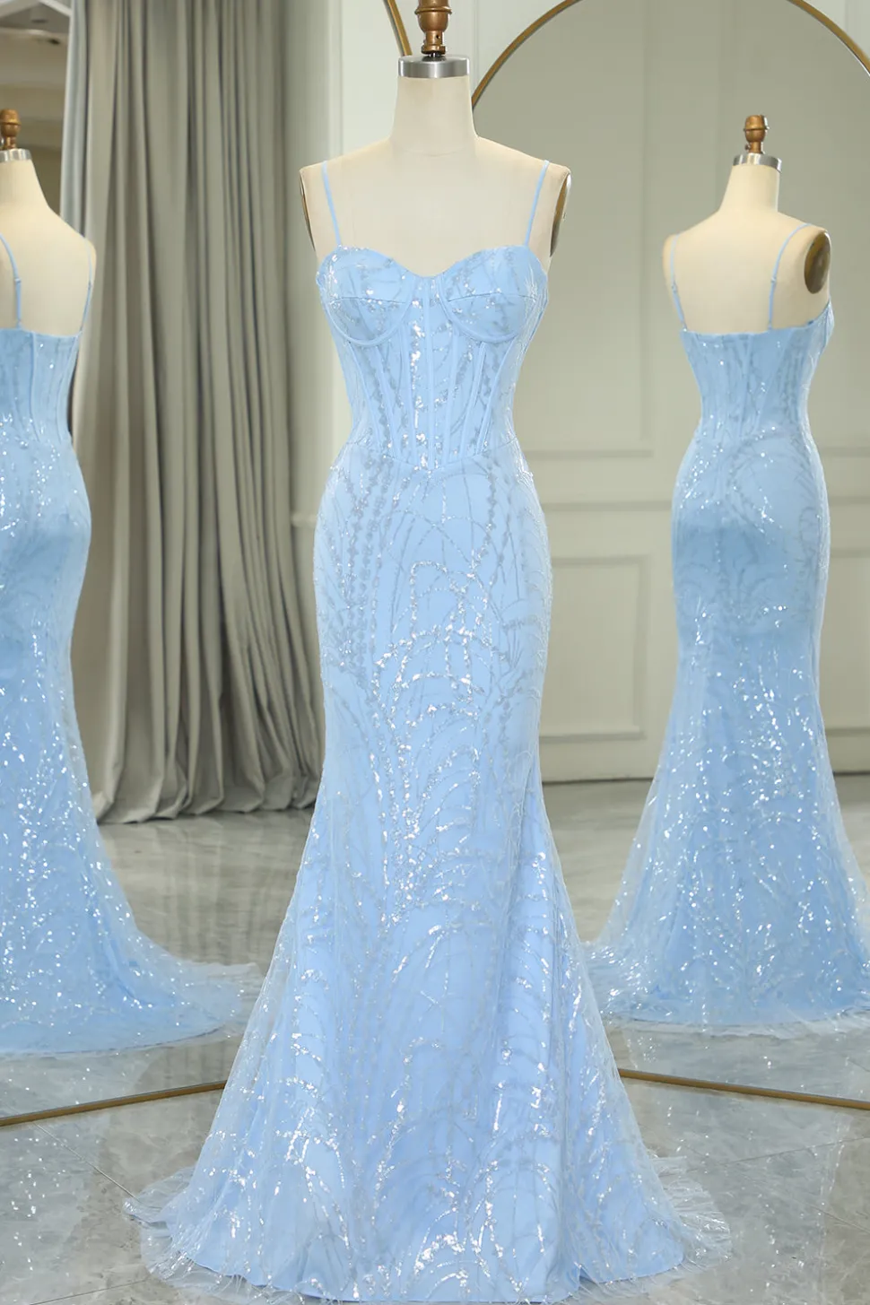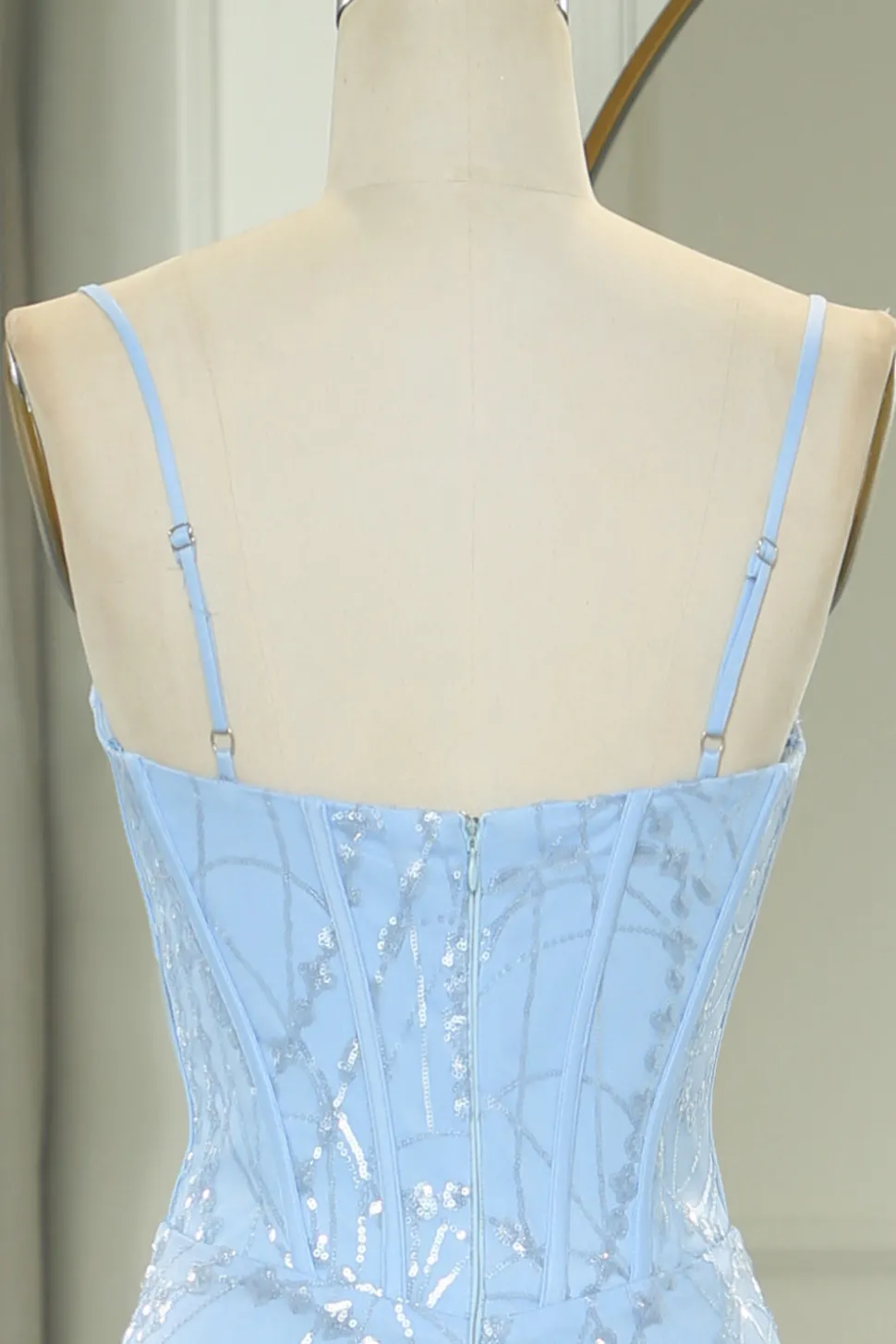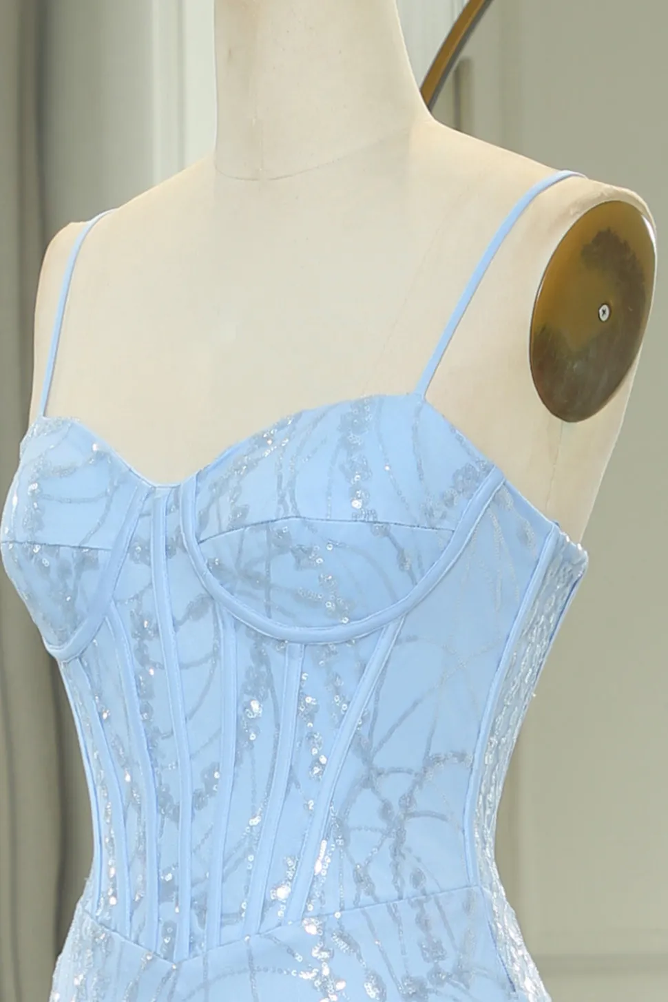 Fabric: Sequin. The fabric is comfortable for skin.