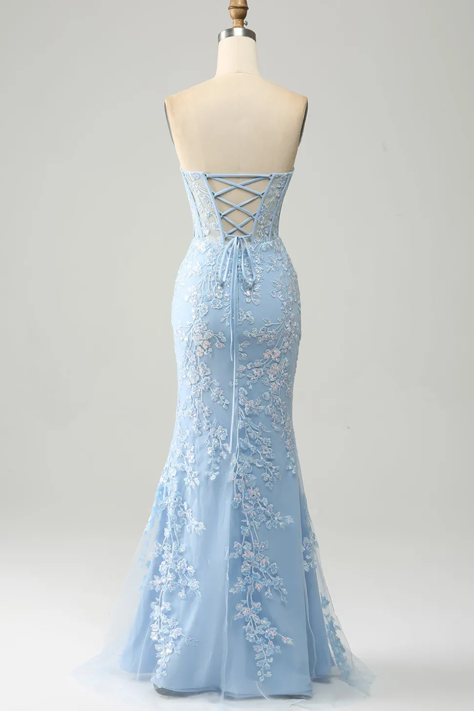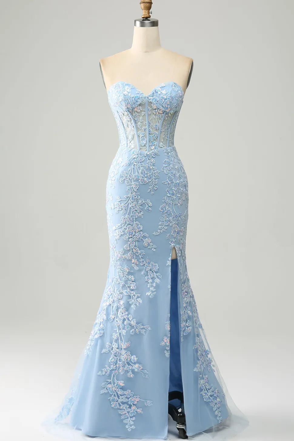 A Line Off the Shoulder Royal Blue Prom Dress with Split Front