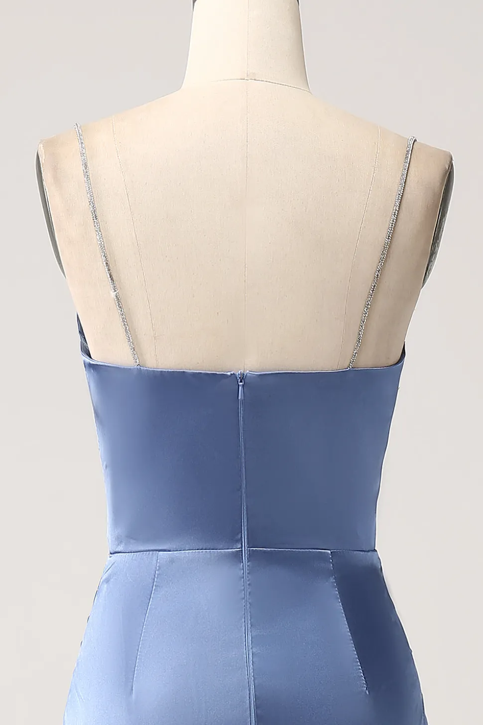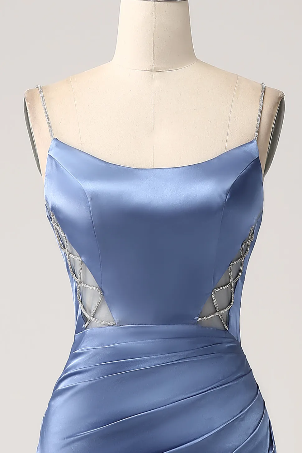 A Line Off the Shoulder Royal Blue Prom Dress with Split Front