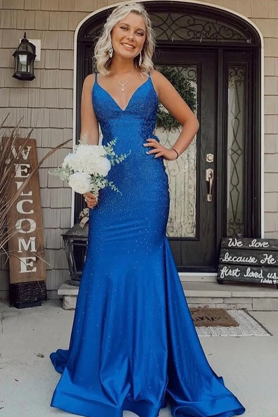 A Line Off the Shoulder Royal Blue Prom Dress with Split Front