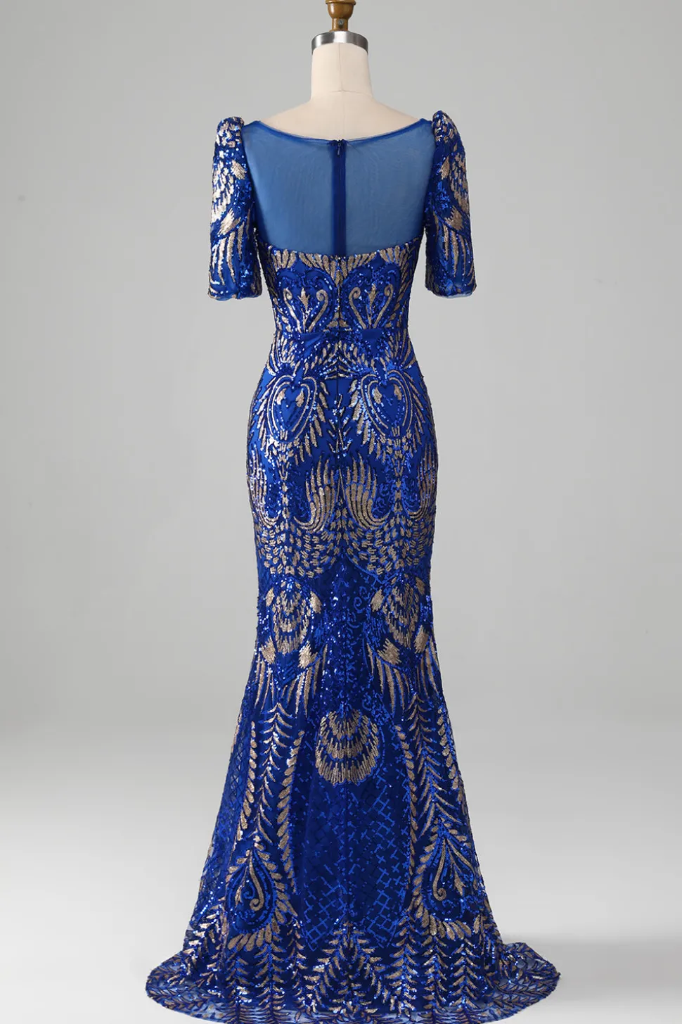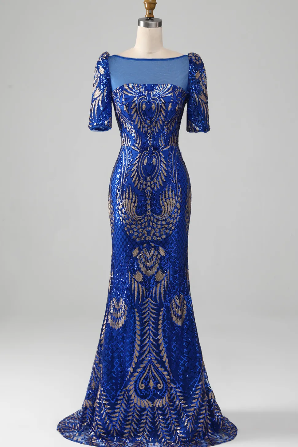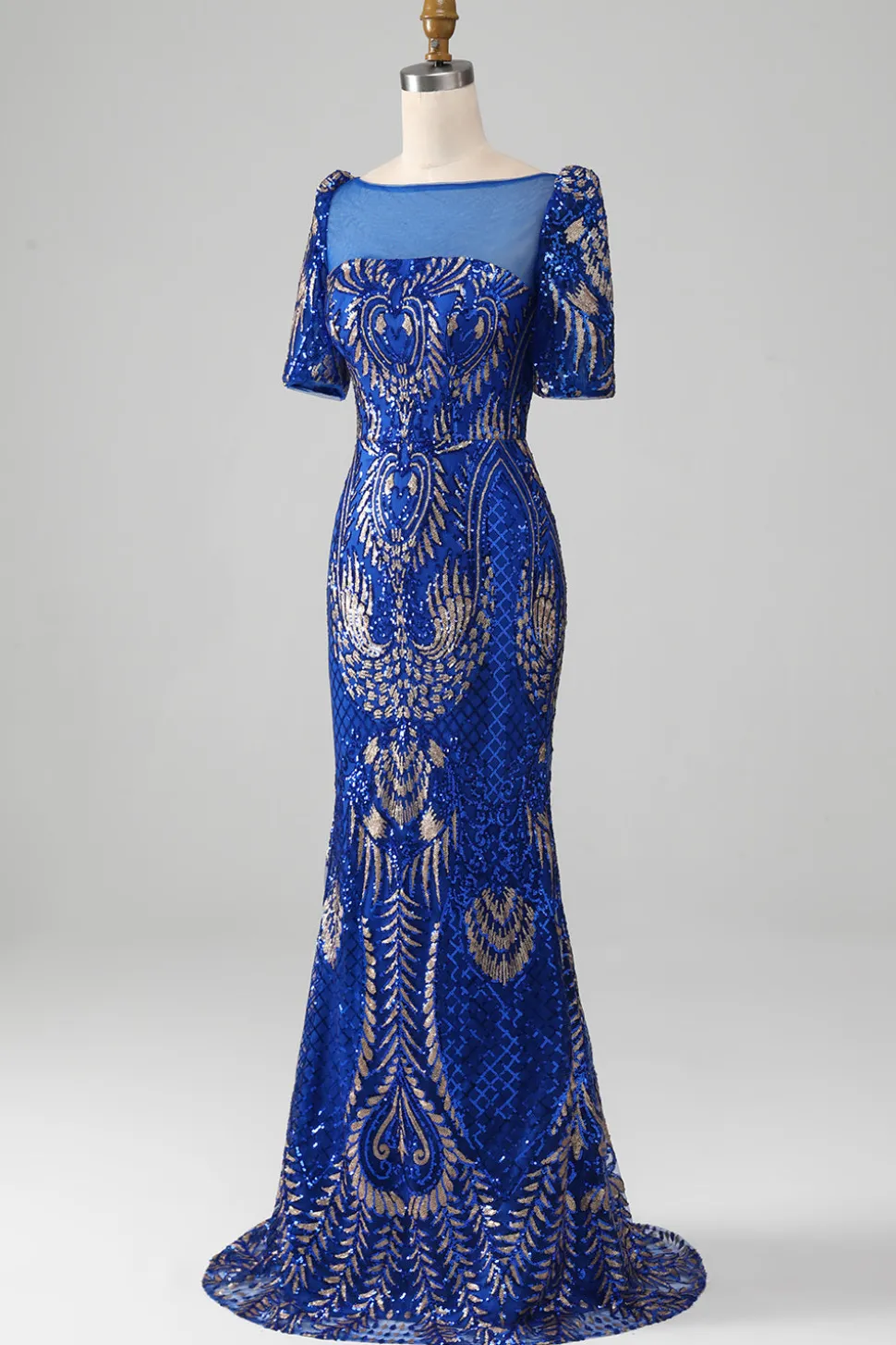 Mermaid Royal Blue Sparkly Prom Dress with Short Sleeves