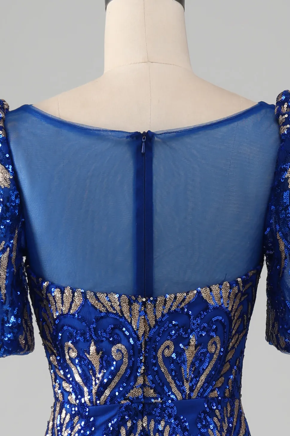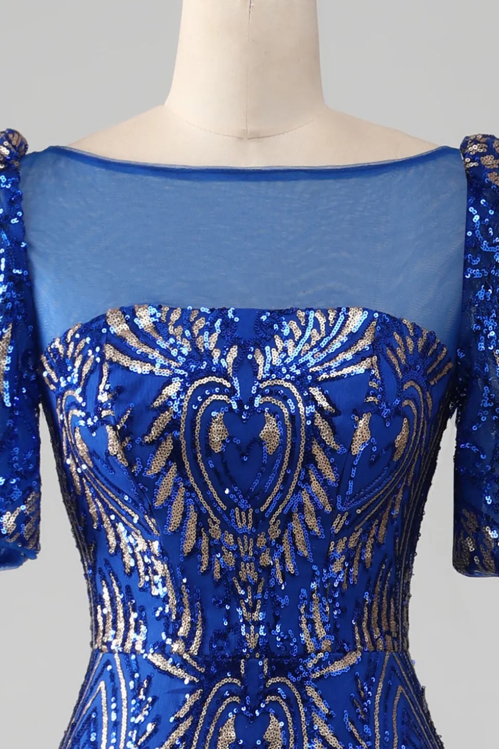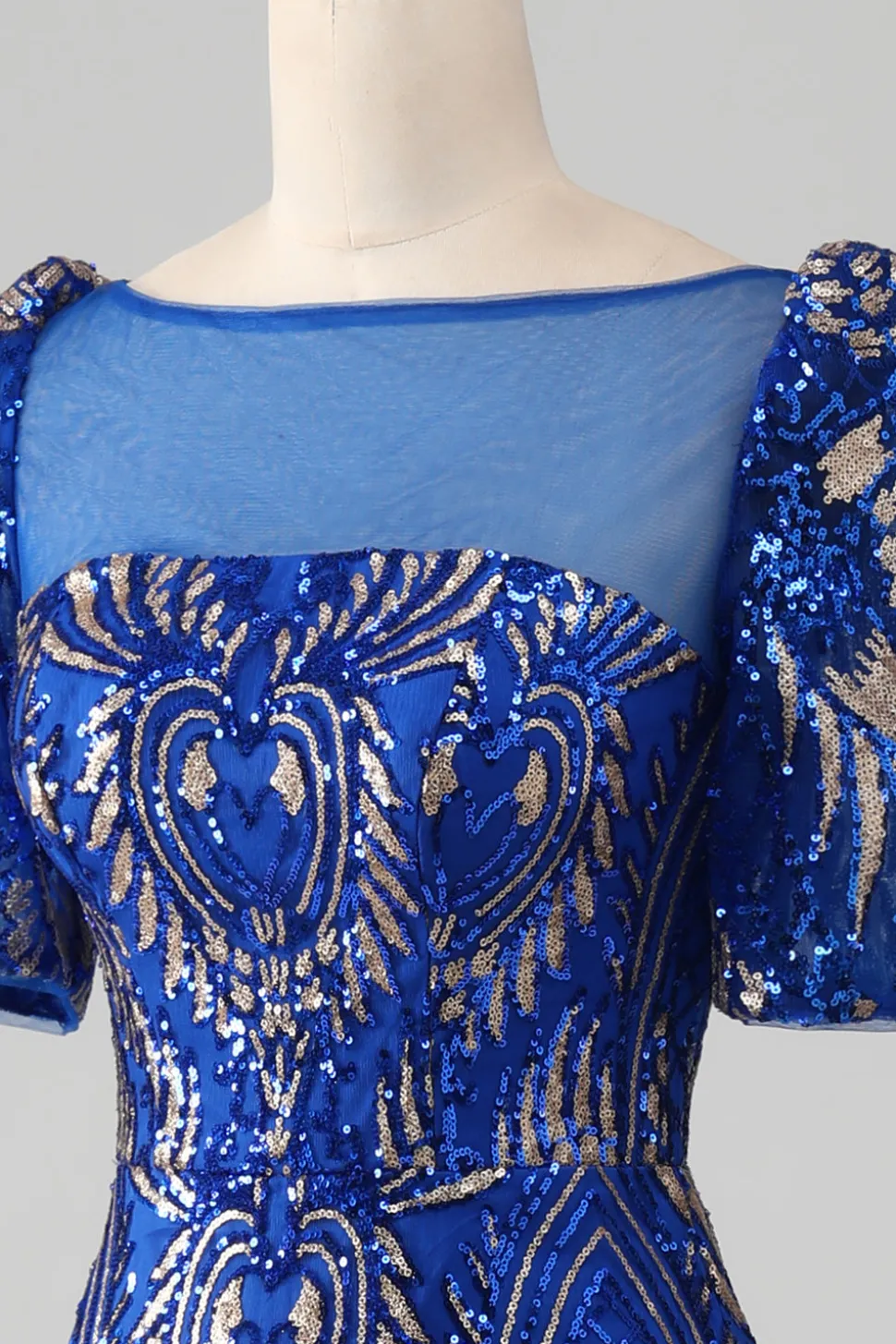 Mermaid Royal Blue Sparkly Prom Dress with Short Sleeves