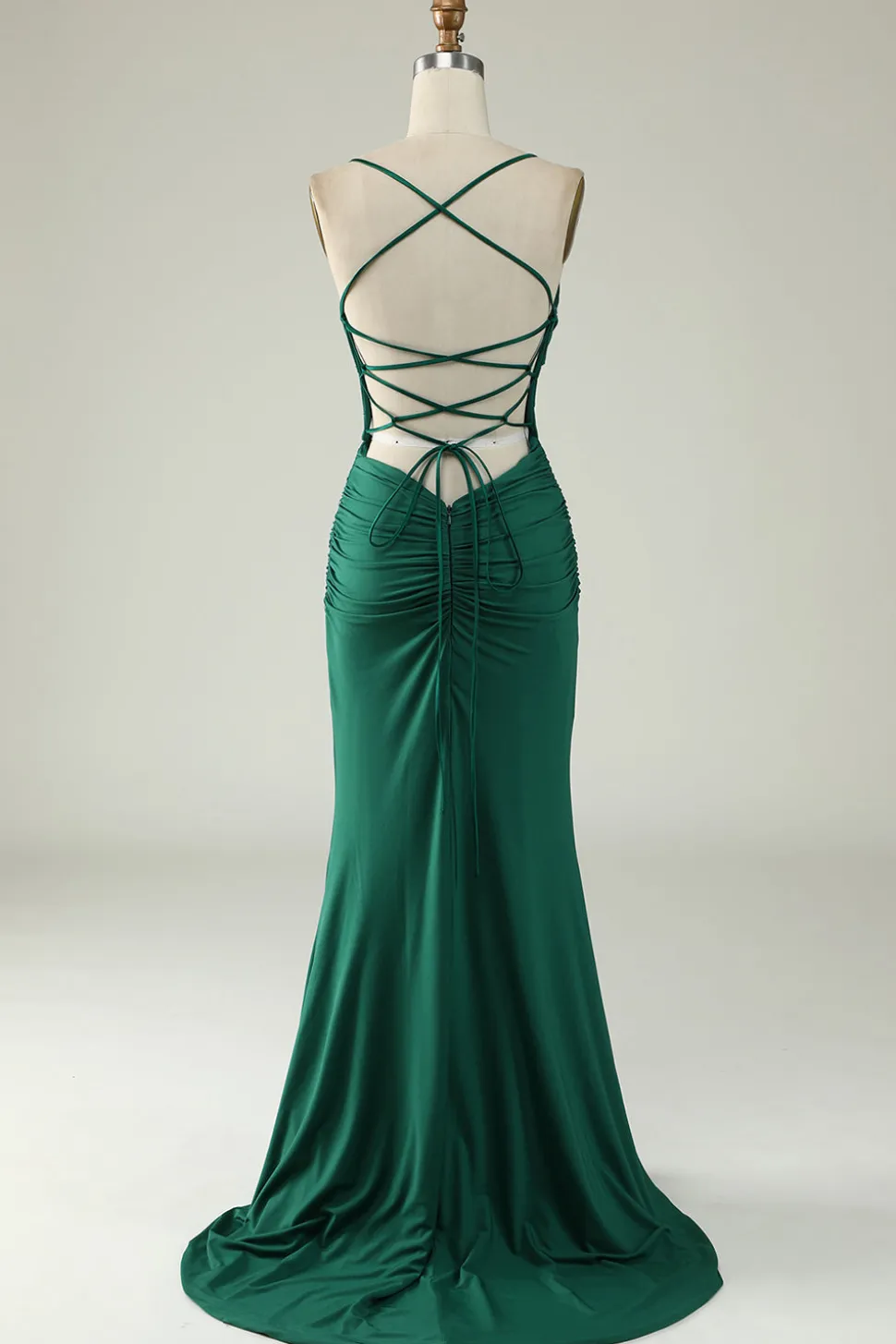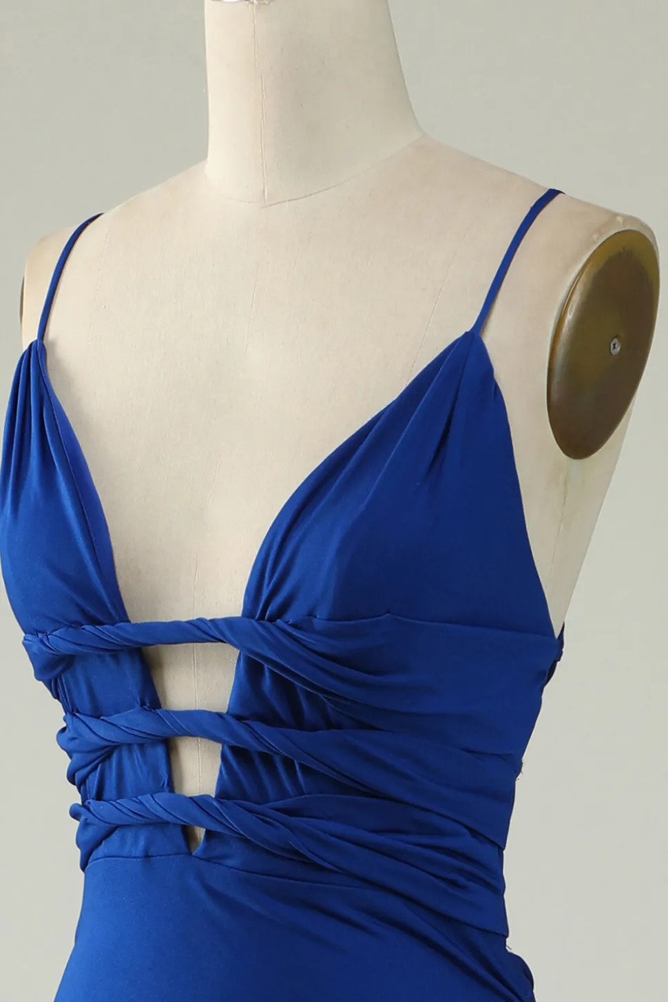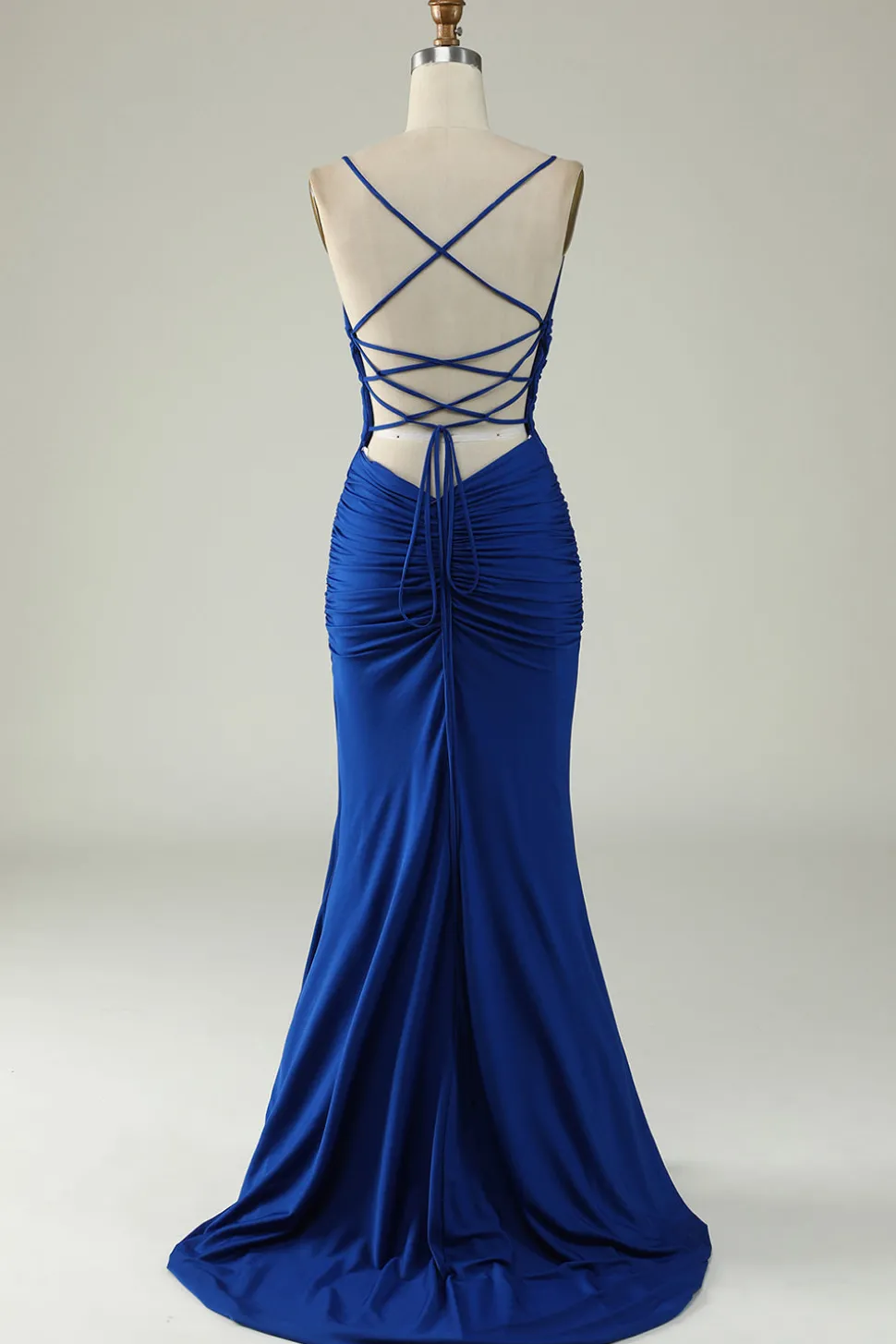 Mermaid Spaghetti Straps Royal Blue Plus Size Prom Dress with Criss Cross Back