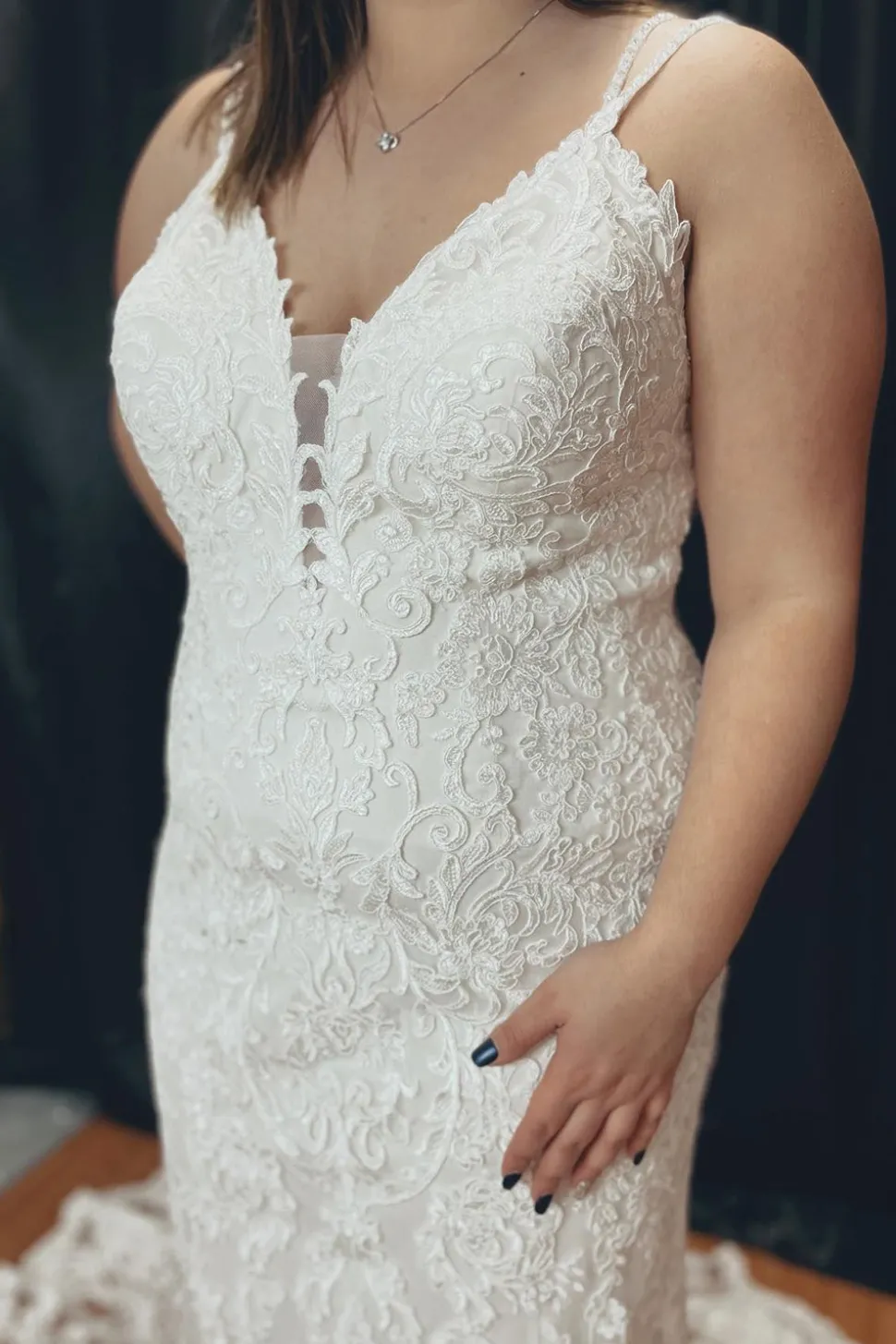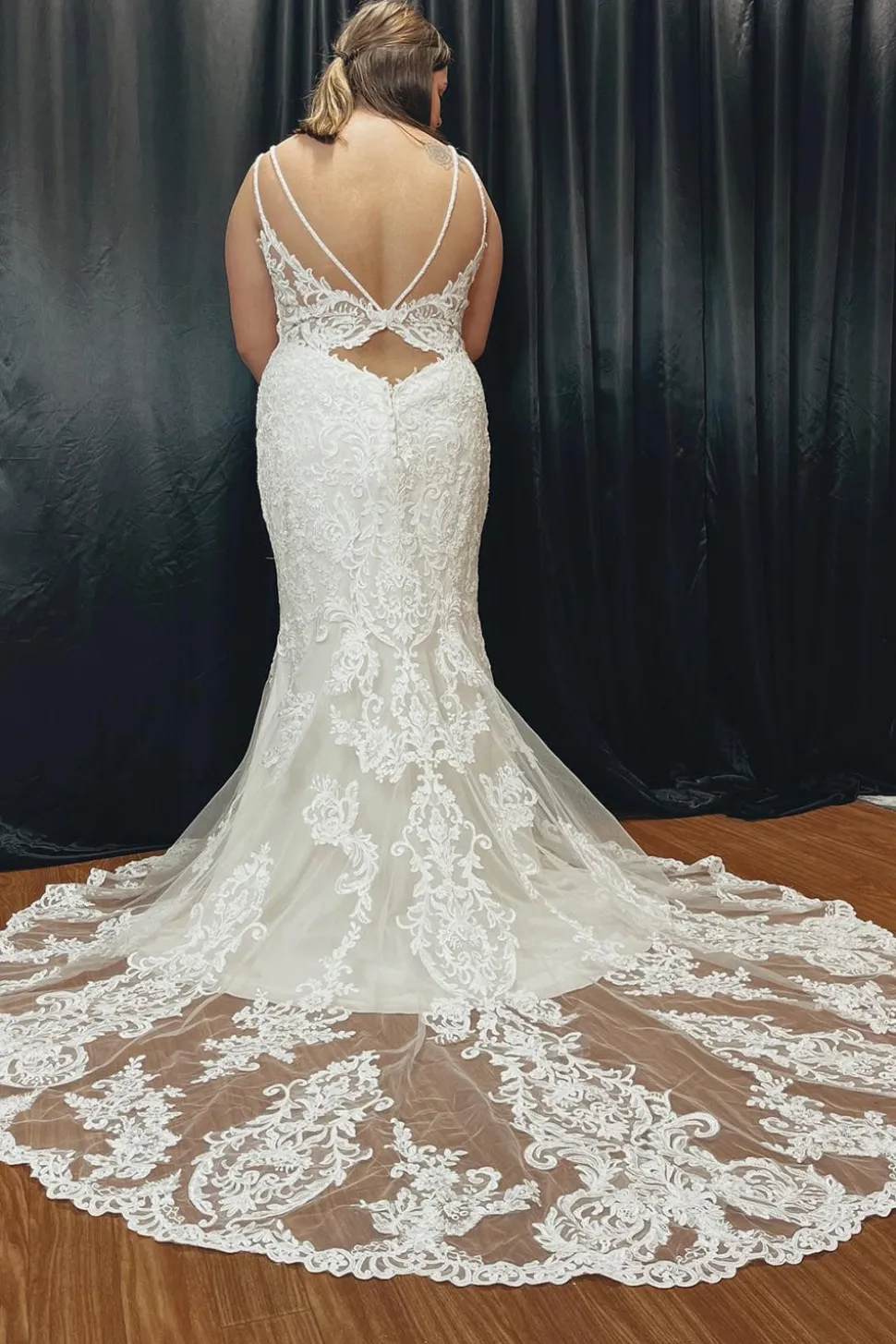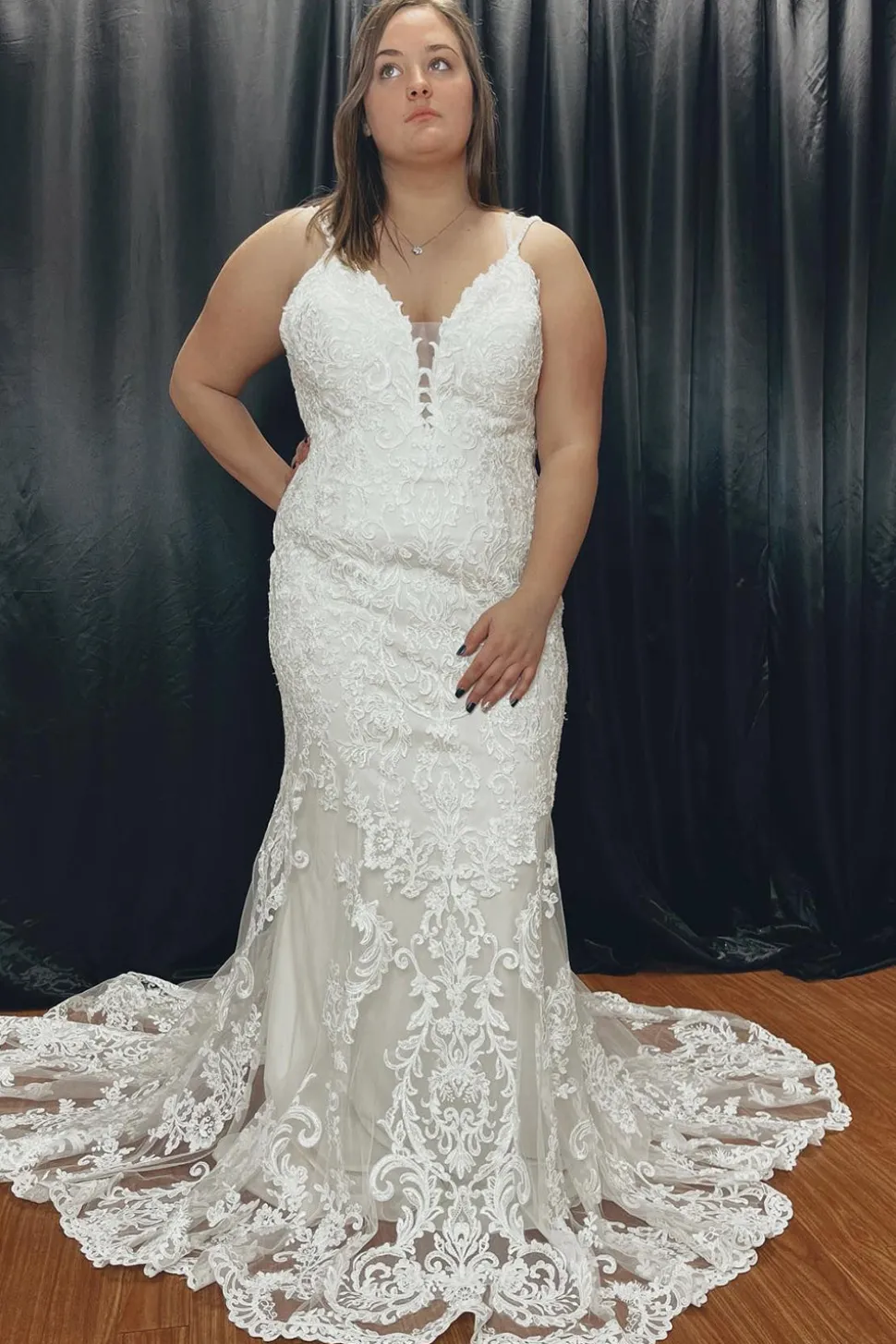Mermaid V-Neck White Plus Size Lace Wedding Dress