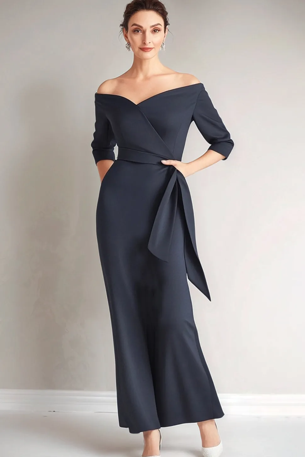 A Line Off the Shoulder Royal Blue Prom Dress with Split Front