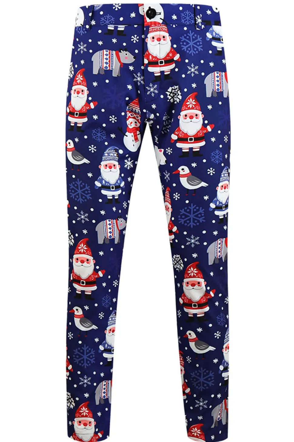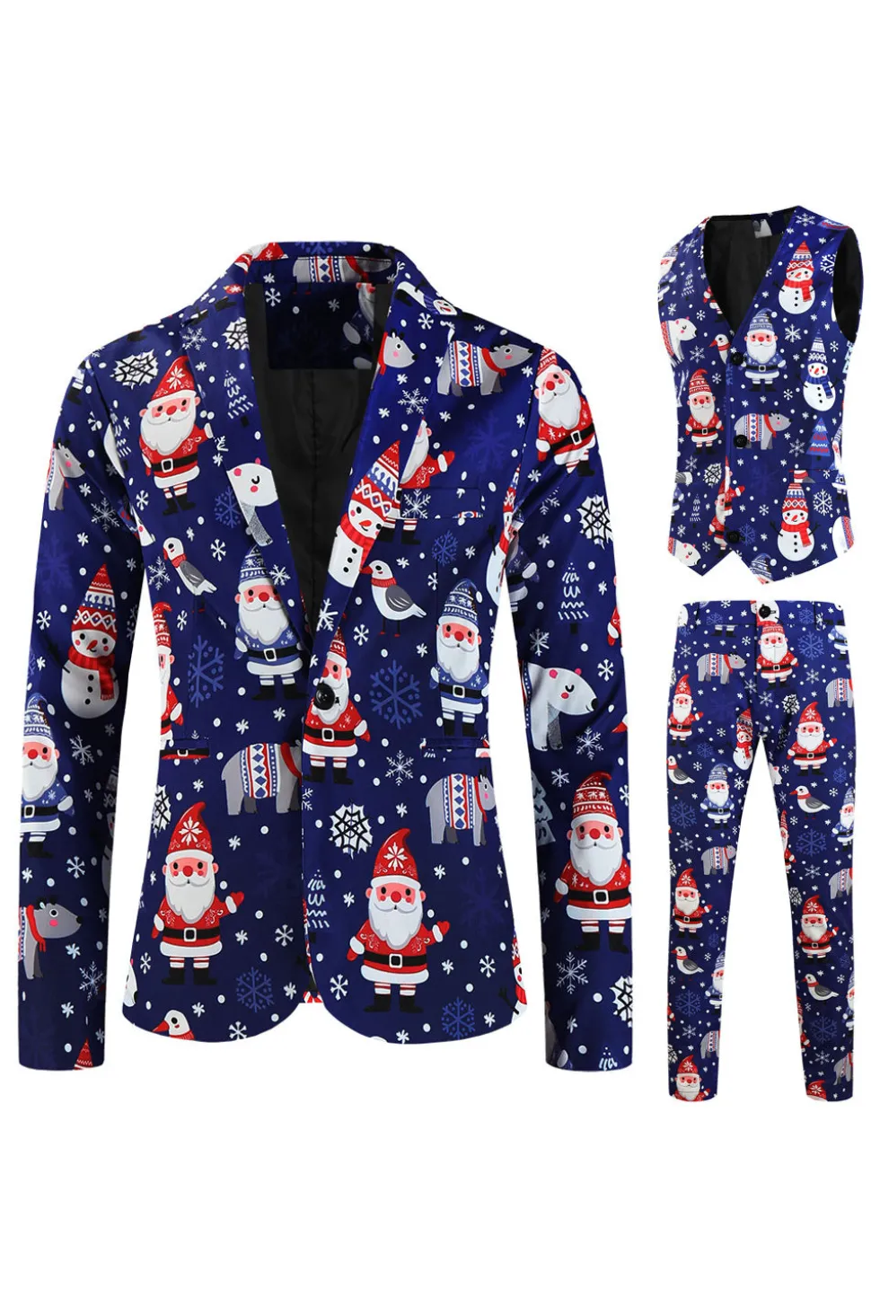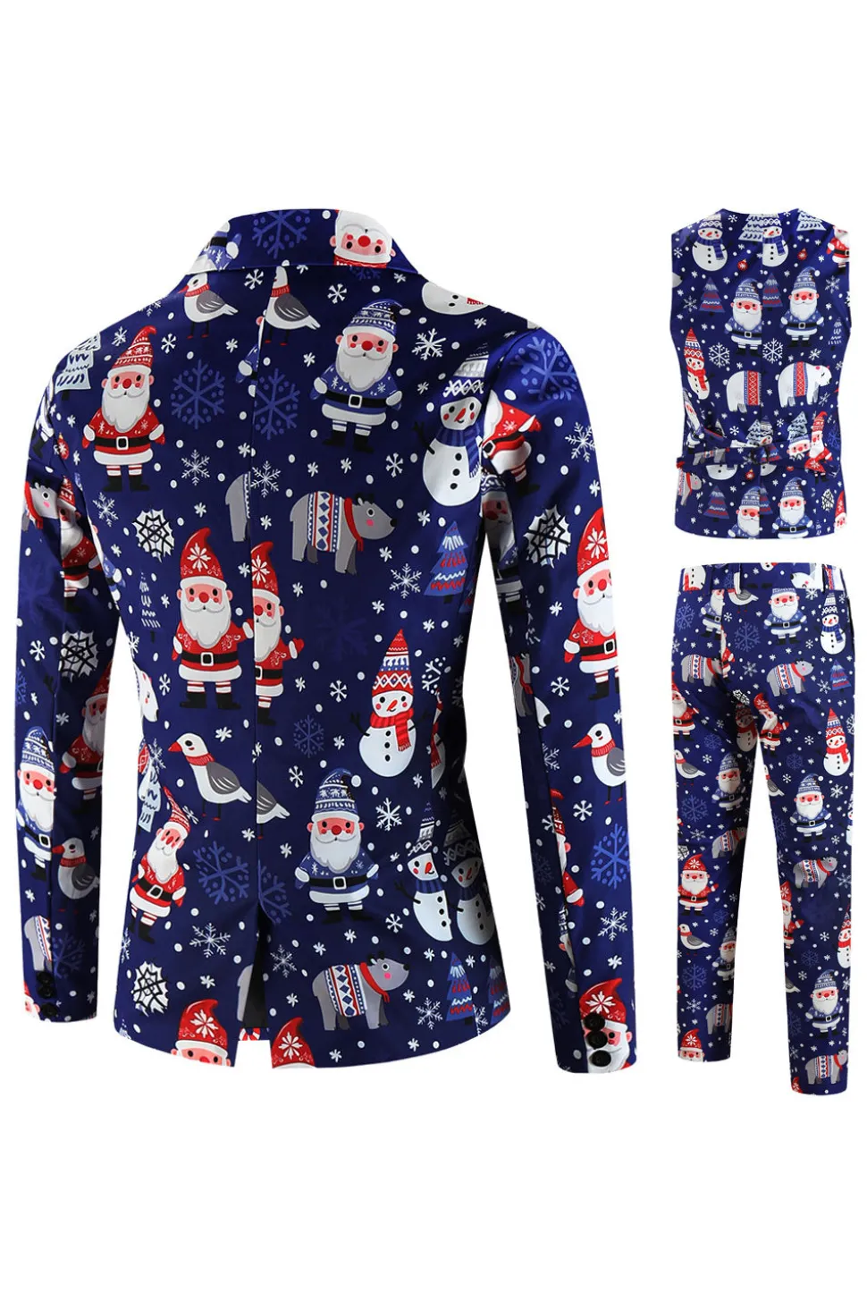 Navy Snowman Santa Claus Print Three-piece Men's Christmas Party Suit