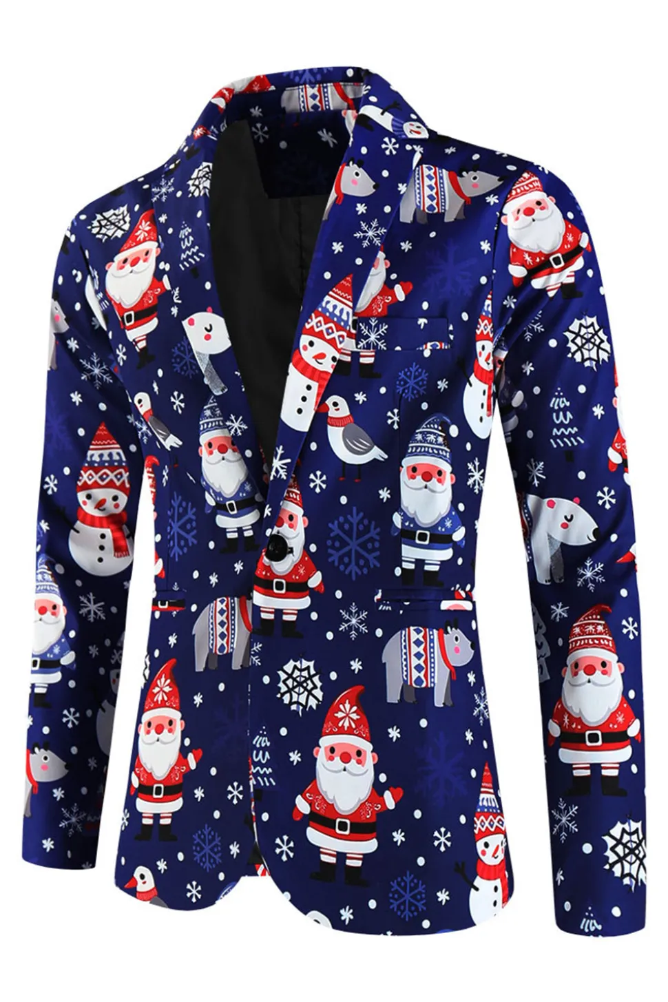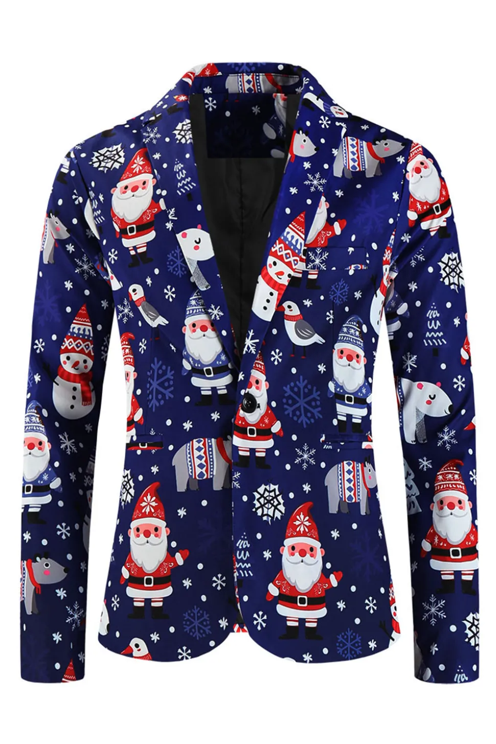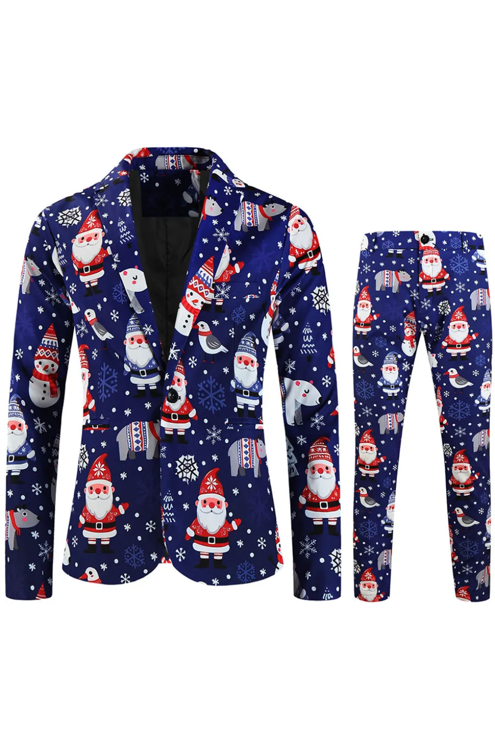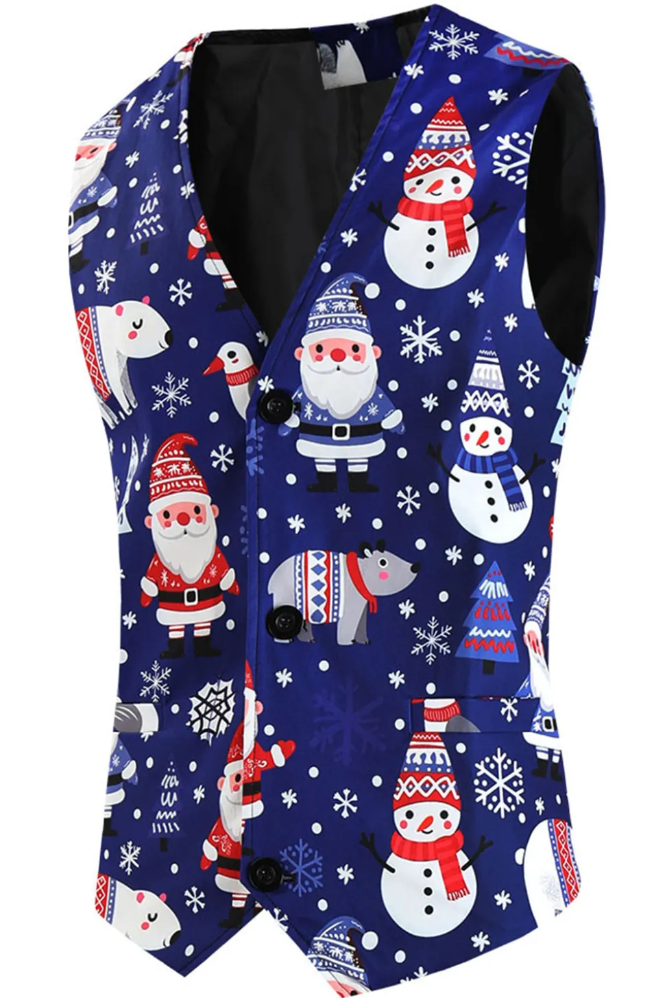 Navy Snowman Santa Claus Print Three-piece Men's Christmas Party Suit