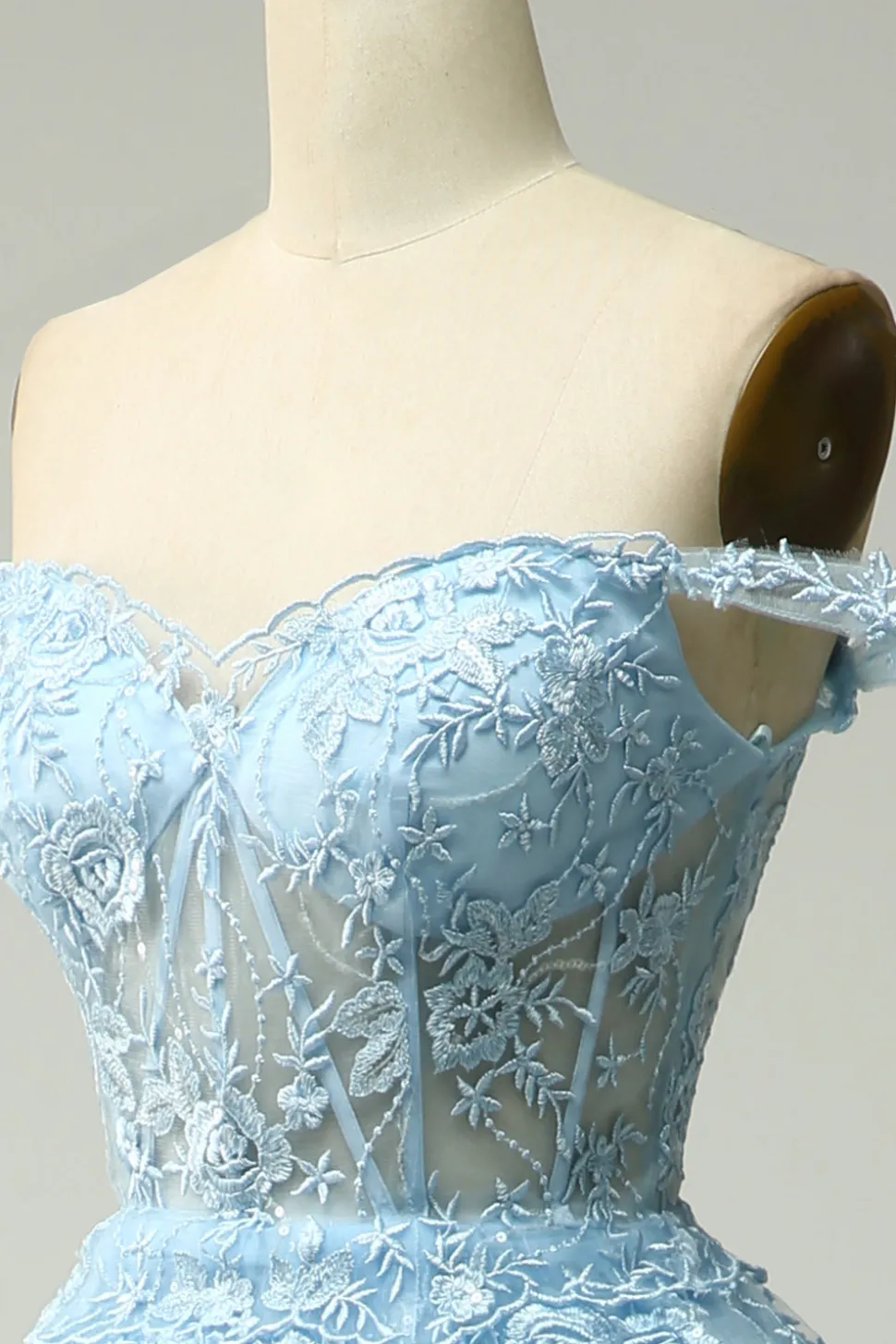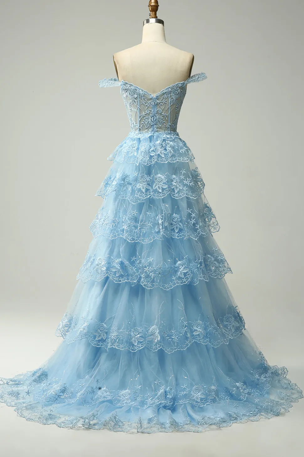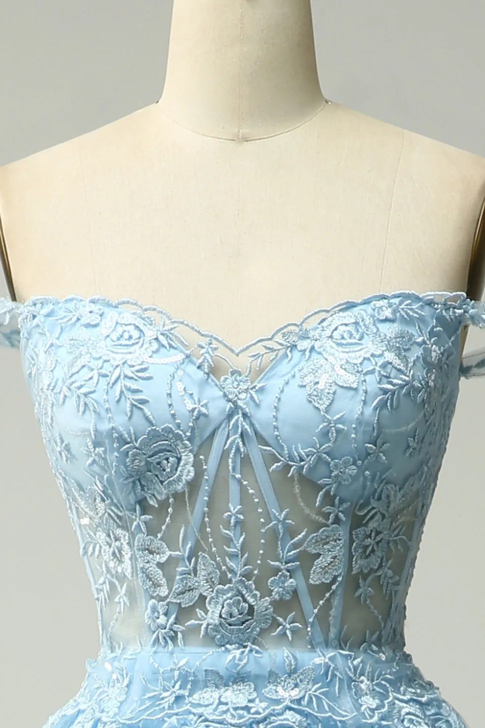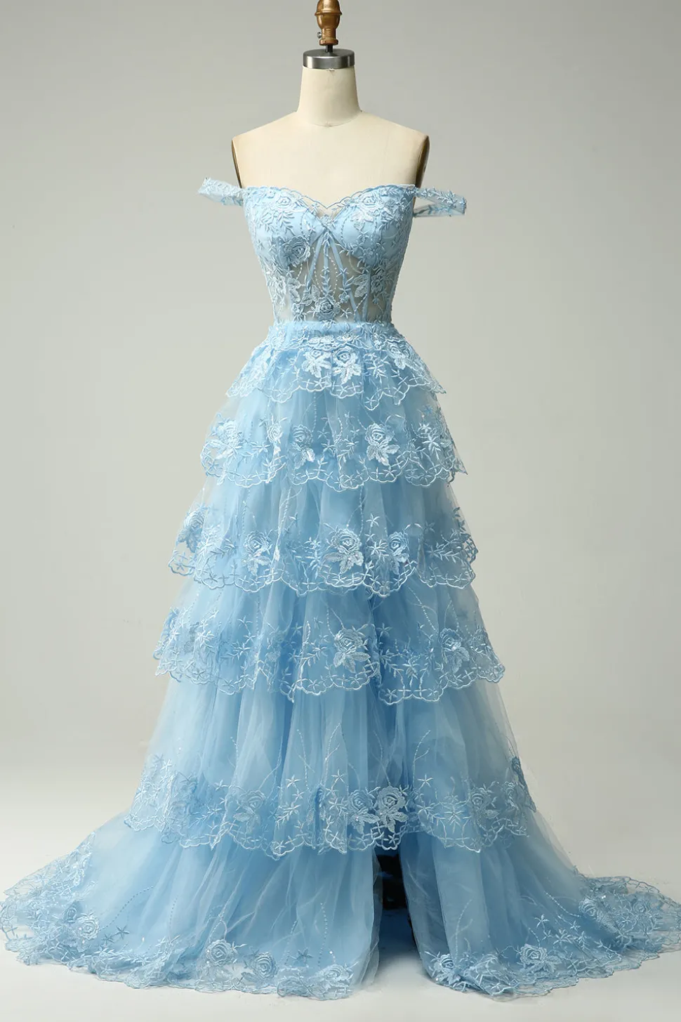 A Line Off the Shoulder Royal Blue Prom Dress with Split Front