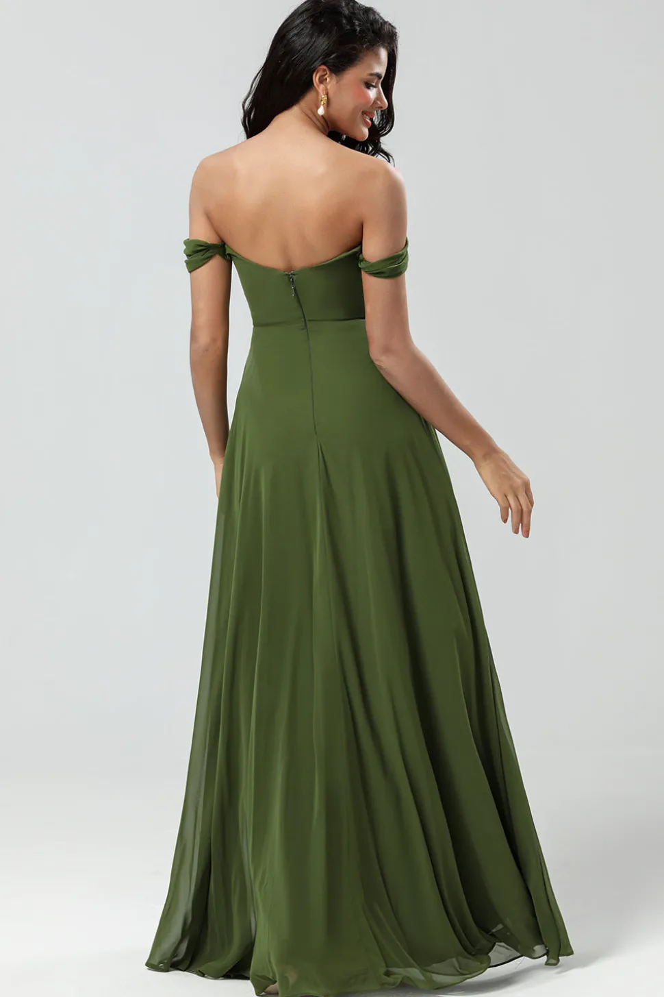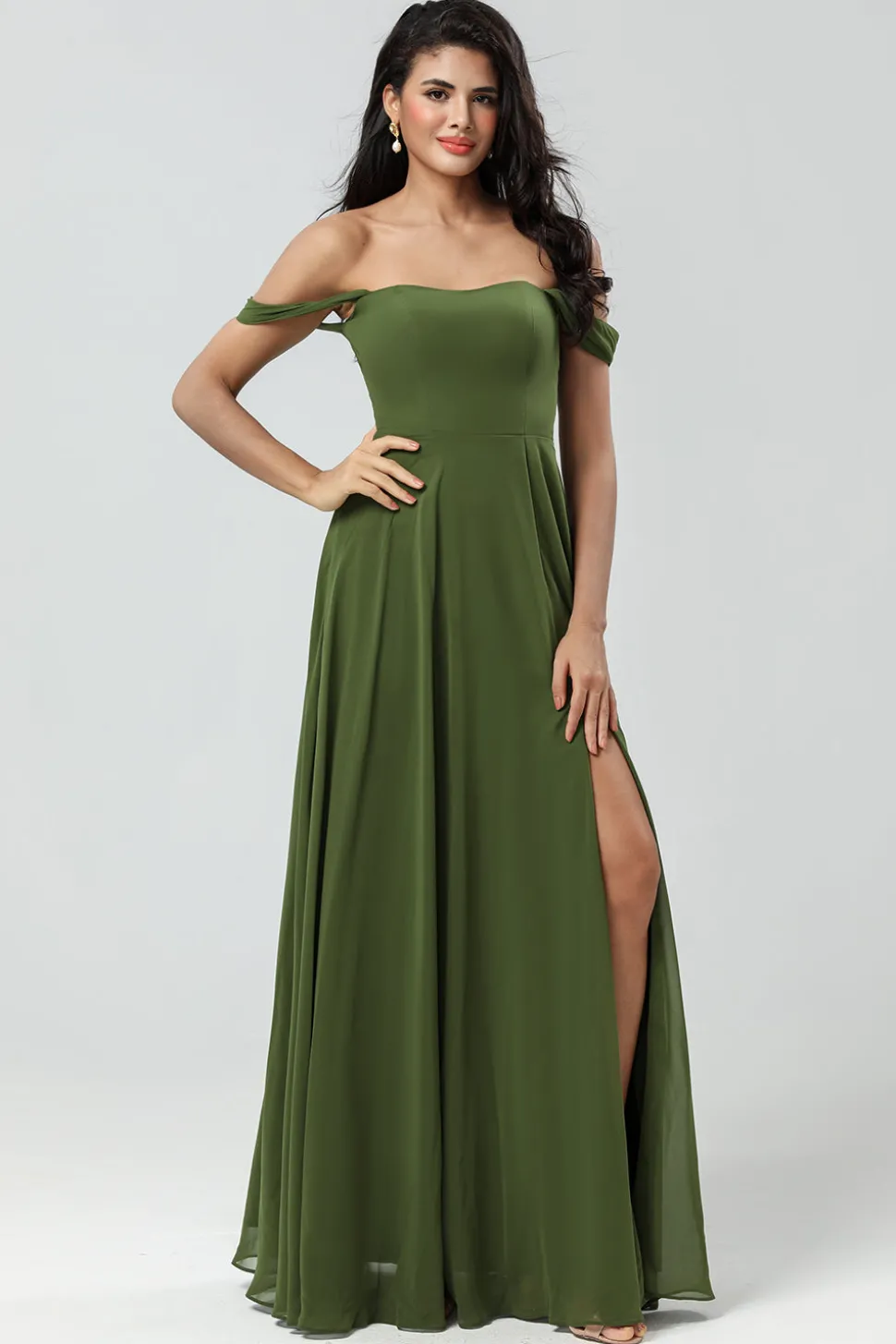 A Line Off the Shoulder Royal Blue Prom Dress with Split Front