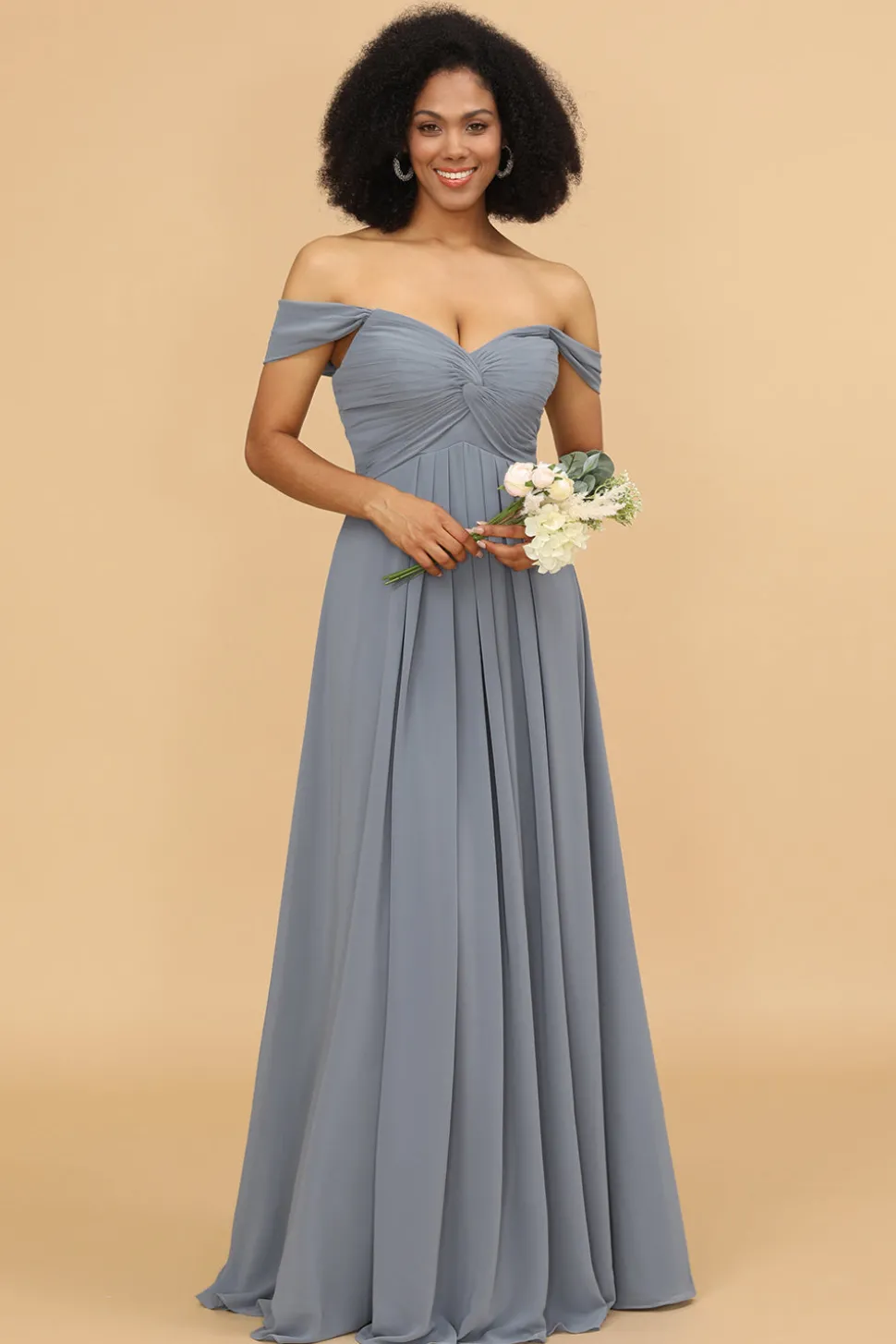 A Line Off the Shoulder Royal Blue Prom Dress with Split Front