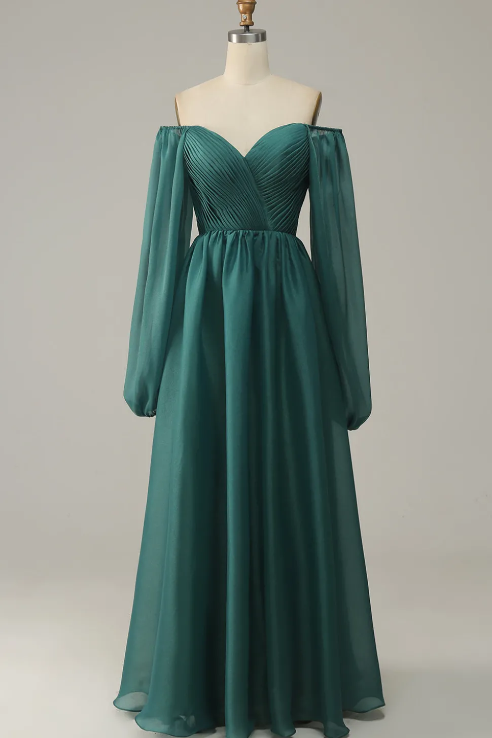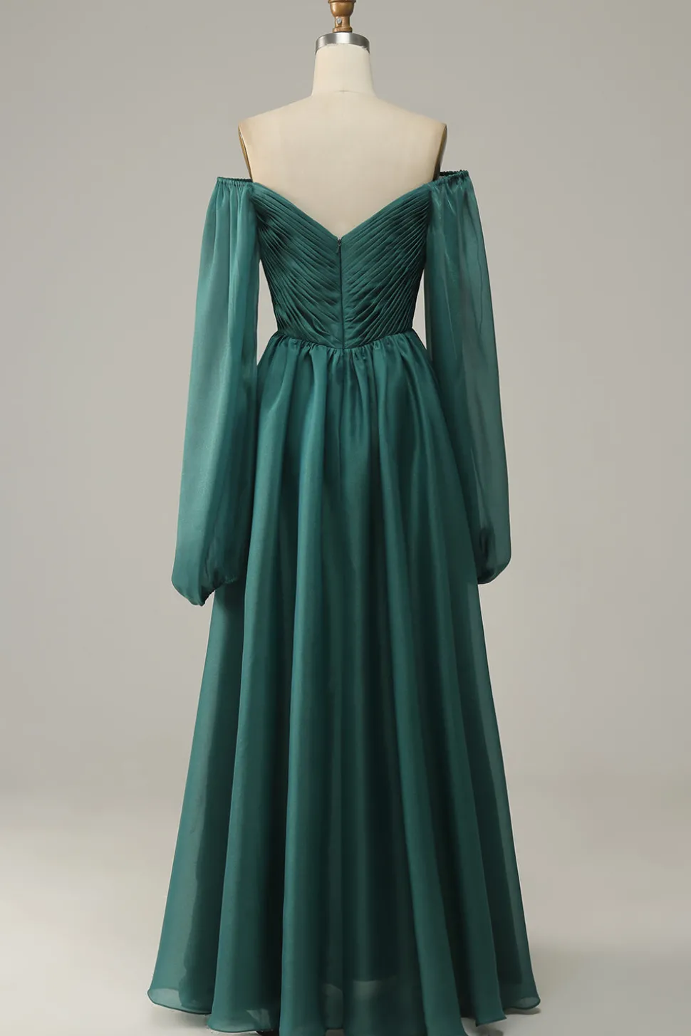 A Line Off the Shoulder Royal Blue Prom Dress with Split Front