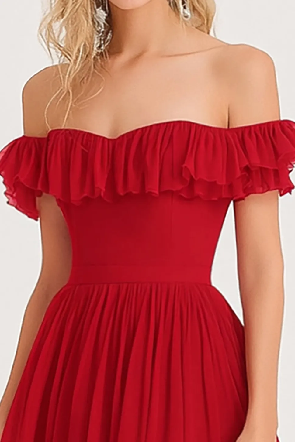 A Line Off the Shoulder Royal Blue Prom Dress with Split Front