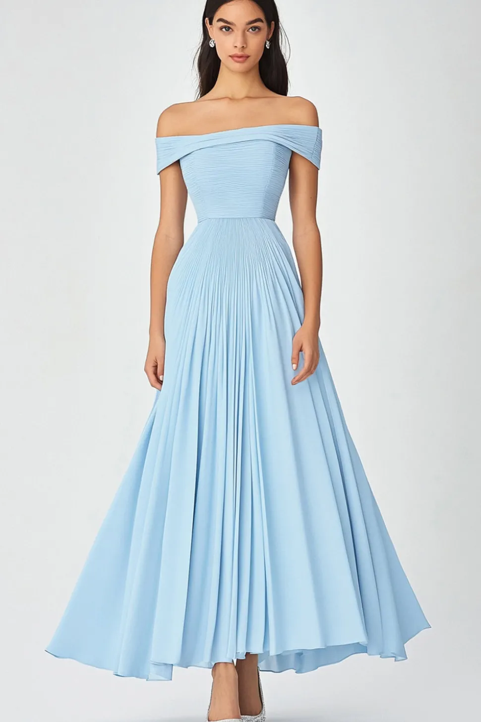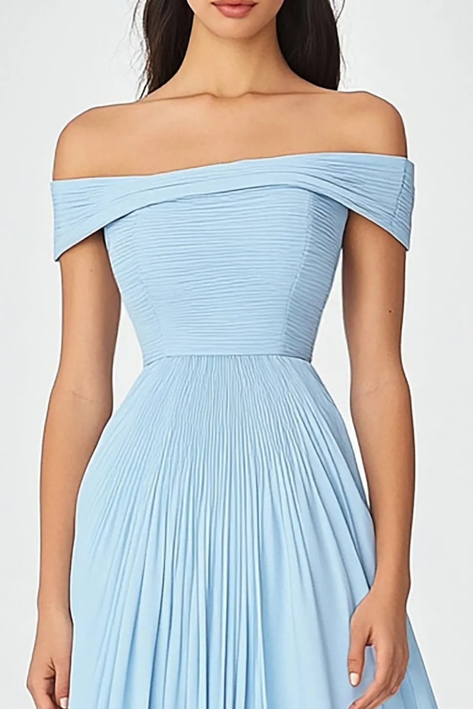 A Line Off the Shoulder Royal Blue Prom Dress with Split Front